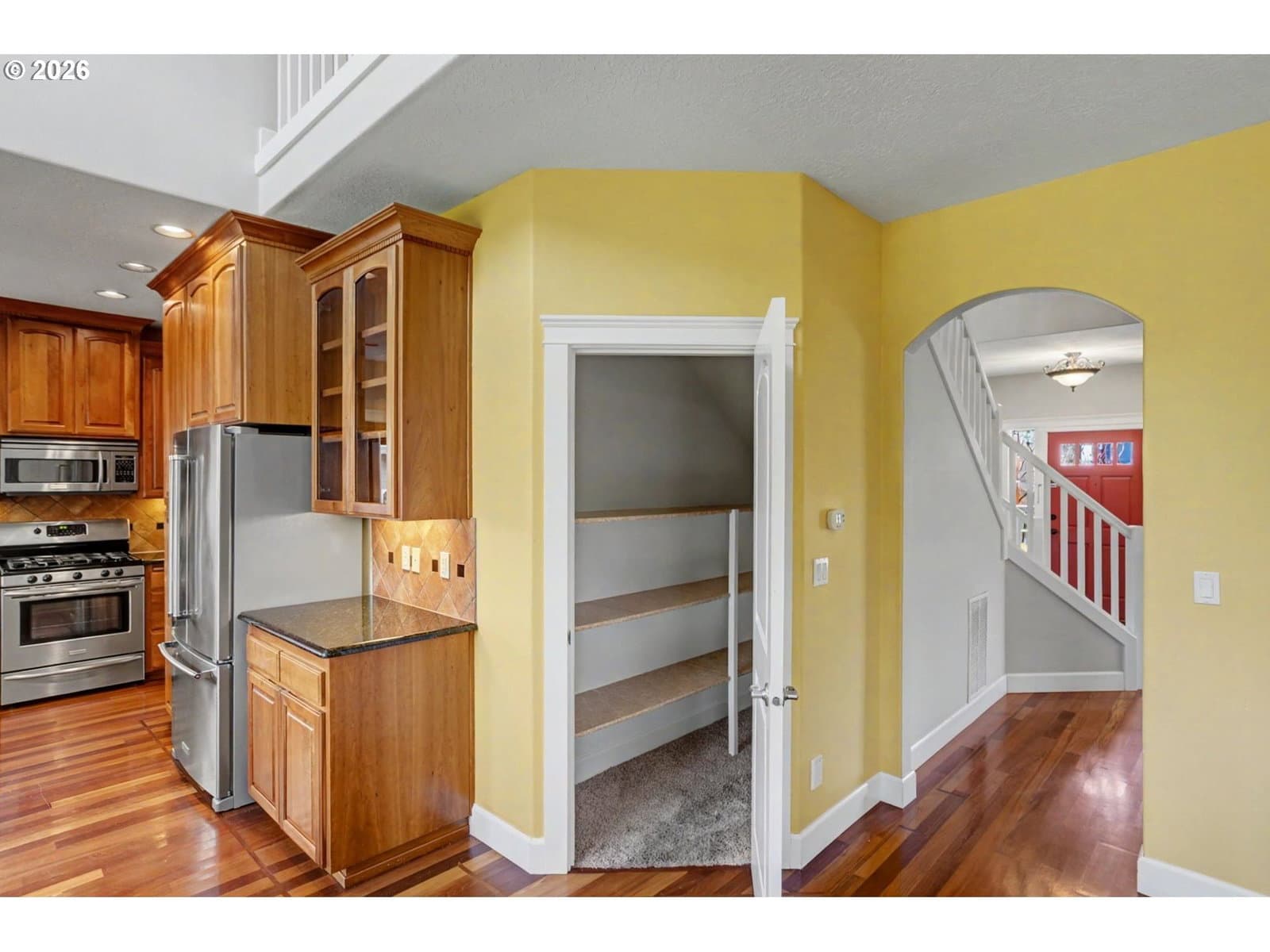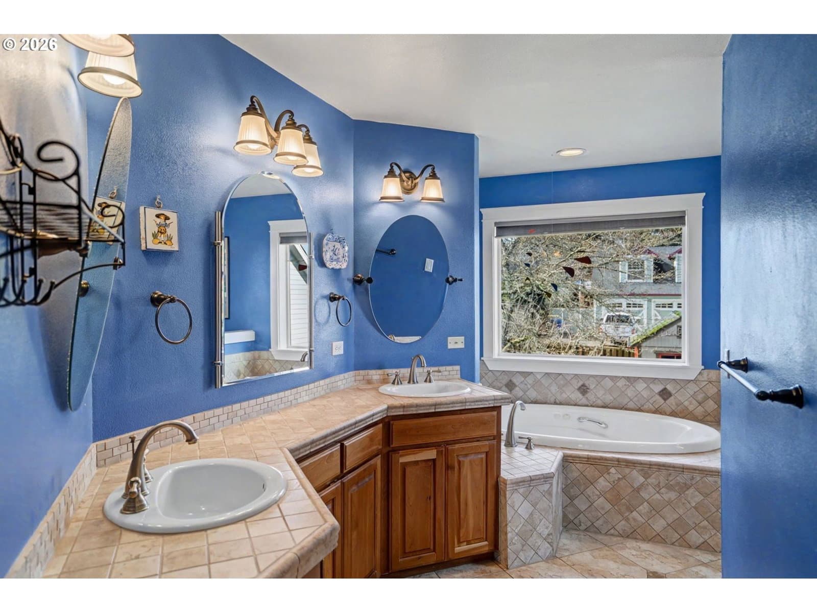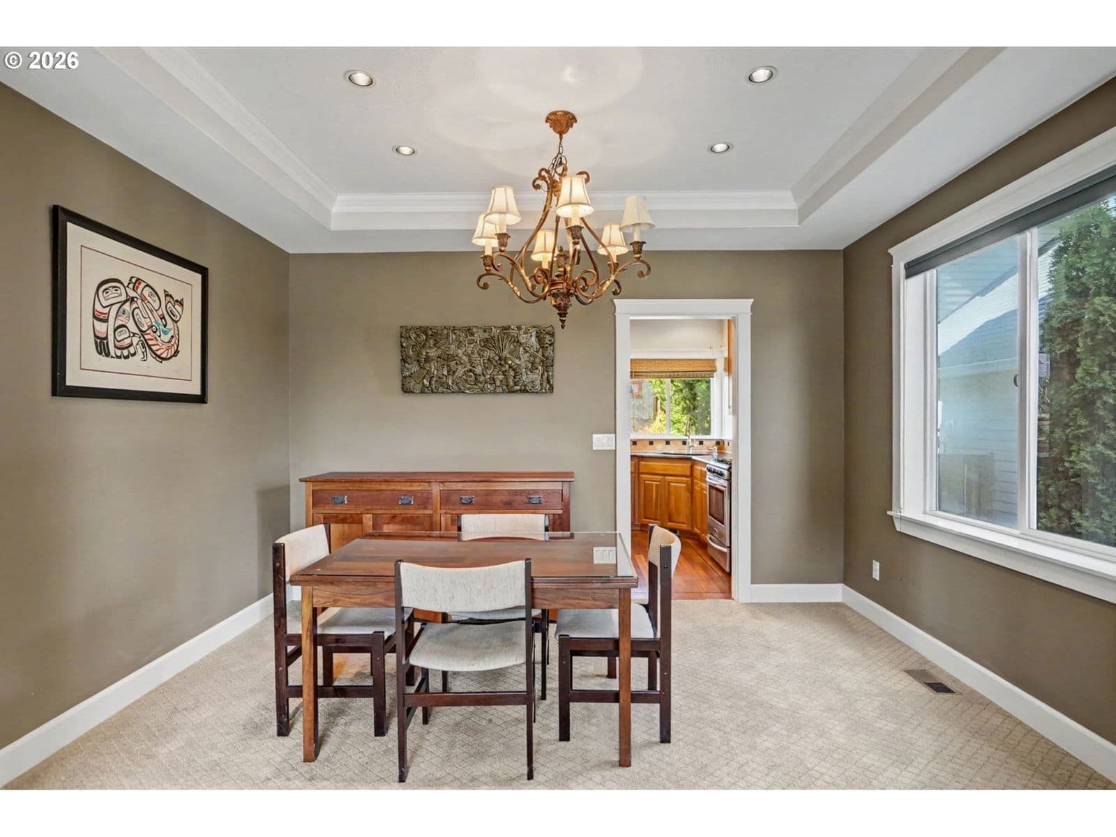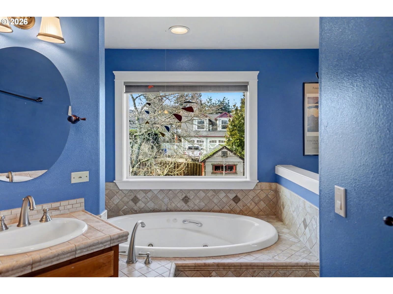 Well-maintained and very energy efficient 4 bed, 2.5 bath home offering 2,627 SF on a quiet cul-de-sac. Flexible layout includes a main floor bedroom, formal living & dining rooms, and both living and family rooms, each with gas fireplaces. Light-filled nook off the gourmet kitchen featuring granite countertops, cherry cabinetry, stainless Frigidaire appliances, and a walk-in pantry. Cherry cabinets continue throughout the bathrooms and laundry room for a cohesive, high-quality finish. Hardwood flooring on the main level. Spacious bonus room provides ideal space for media, office, or playroom. Primary suite features a walk-in closet, jetted tub, walk-in shower, and vaulted sitting/retreat area. Dual heating and cooling systems provide efficient comfort year-round. Central vacuum and central speakers included. The backyard is a true highlight with seven raised garden beds, fruit trees, grapevines, and abundant flowering plants, all within a fully fenced and beautifully landscaped setting. Covered patio, sprinklers, garden shed, and plenty of space to relax or entertain.