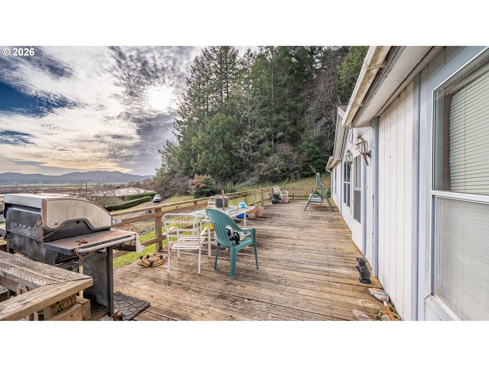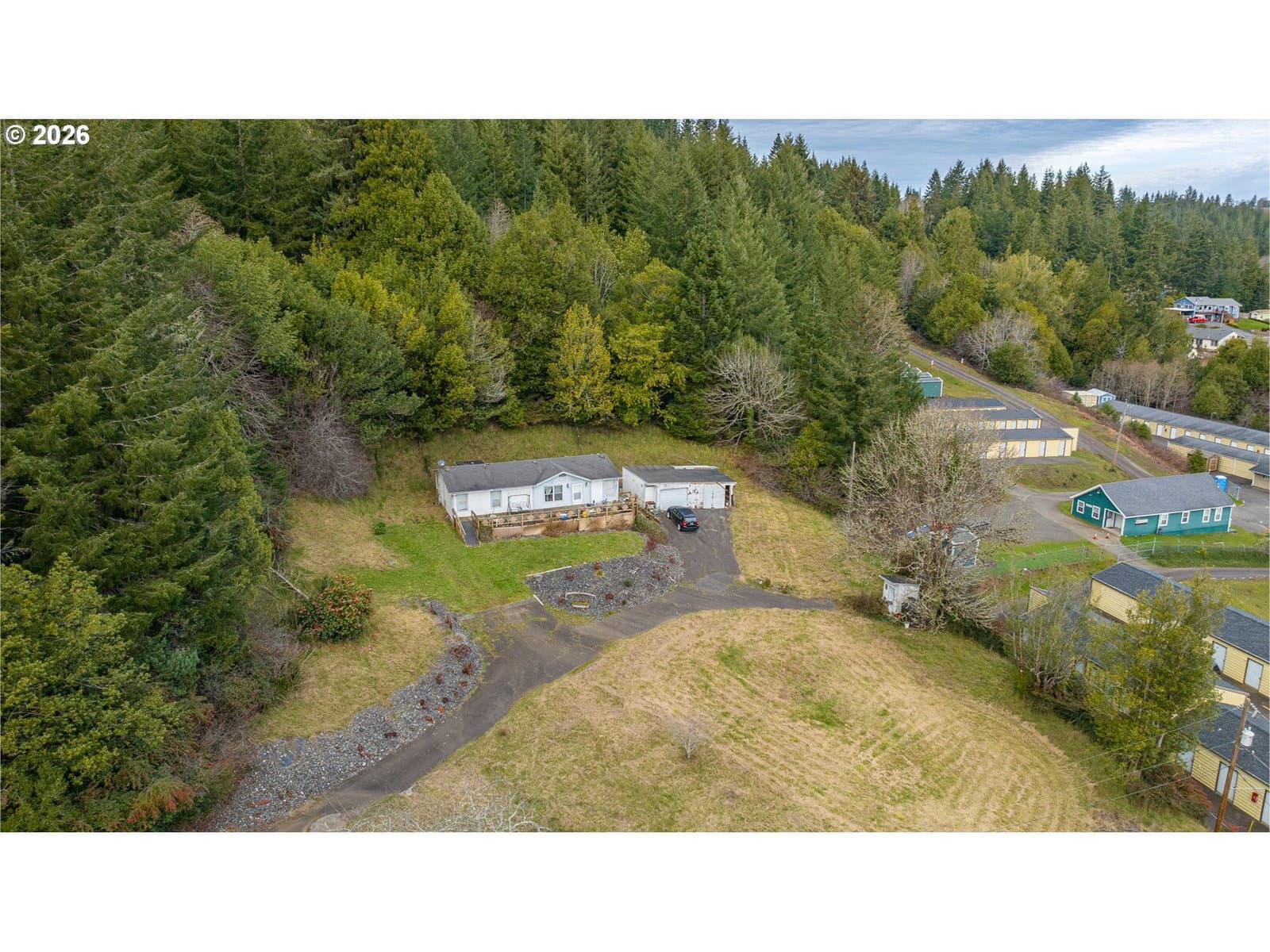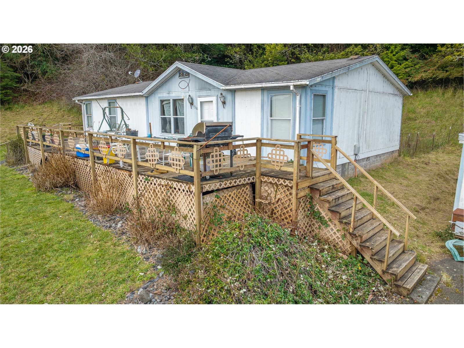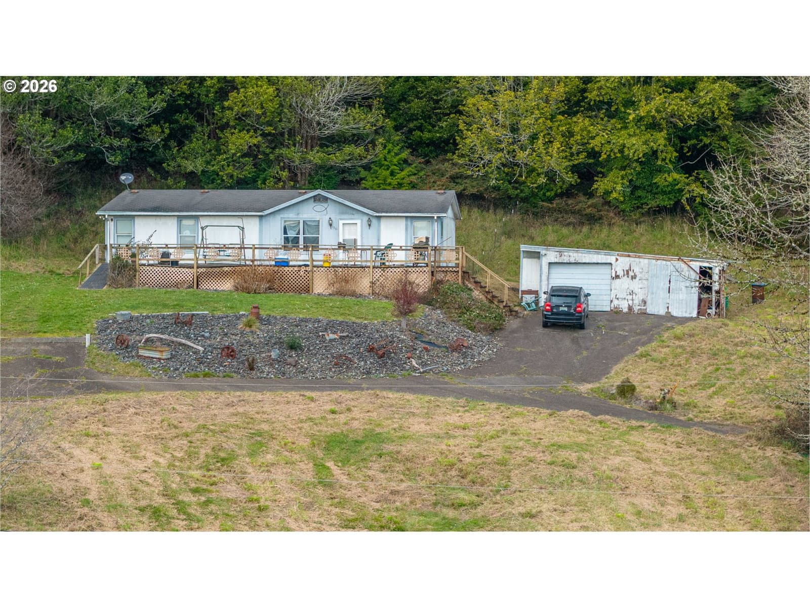 Scenic Retreat with Endless Potential. Don't miss this incredible opportunity to own a charming double-wide manufactured home perfectly situated on a spacious 1-acre lot on the scenic edge of Coquille. Boasting breathtaking valley views from the front deck, this property offers the perfect blend of rural tranquility and town convenience. The interior features a thoughtful, open-concept floor plan that seamlessly connects the kitchen, dining, and living areas—ideal for entertaining or quiet evenings taking in the vista. With 2 bedrooms and 2 full baths, the layout is both functional and inviting. Outside, you’ll find a detached garage providing ample storage or workspace. While this home needs a little TLC to truly shine, it is brimming with potential for an investor or a buyer looking to build sweat equity in a prime location.