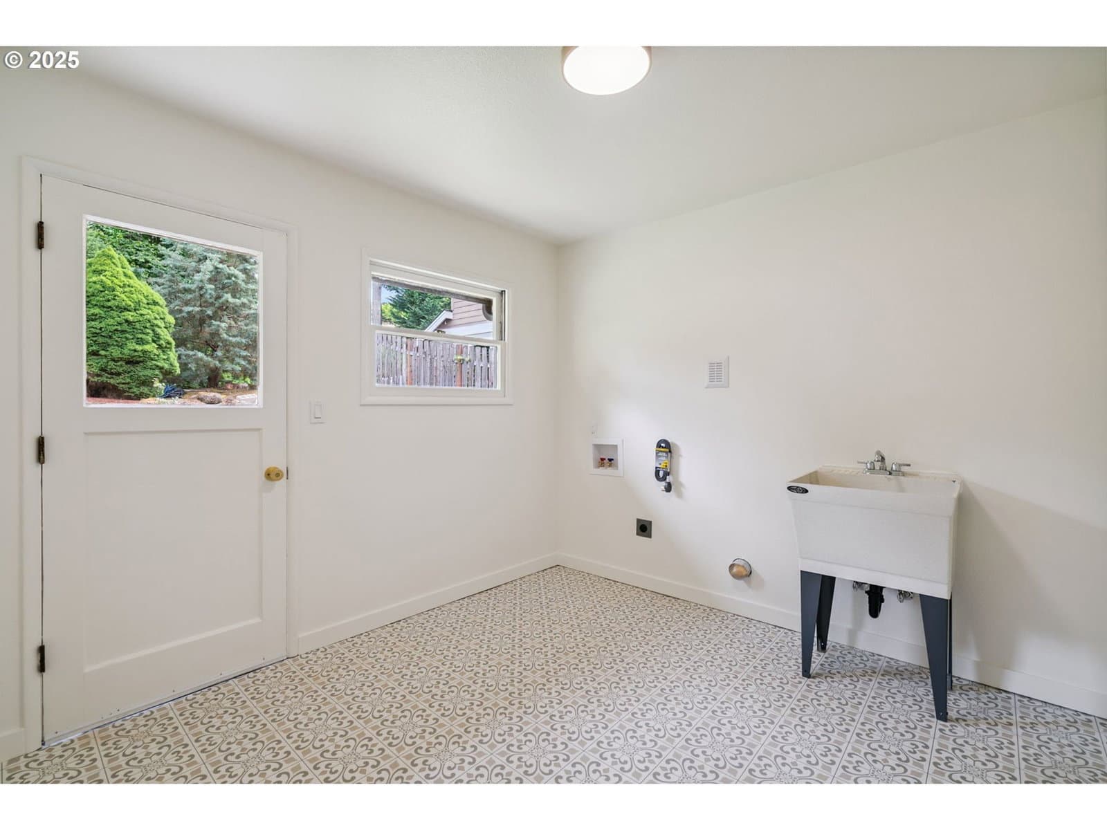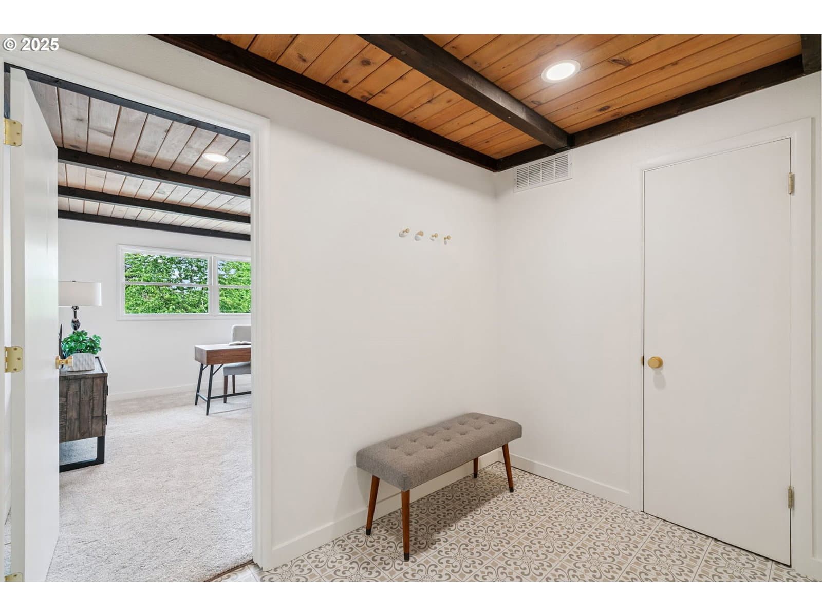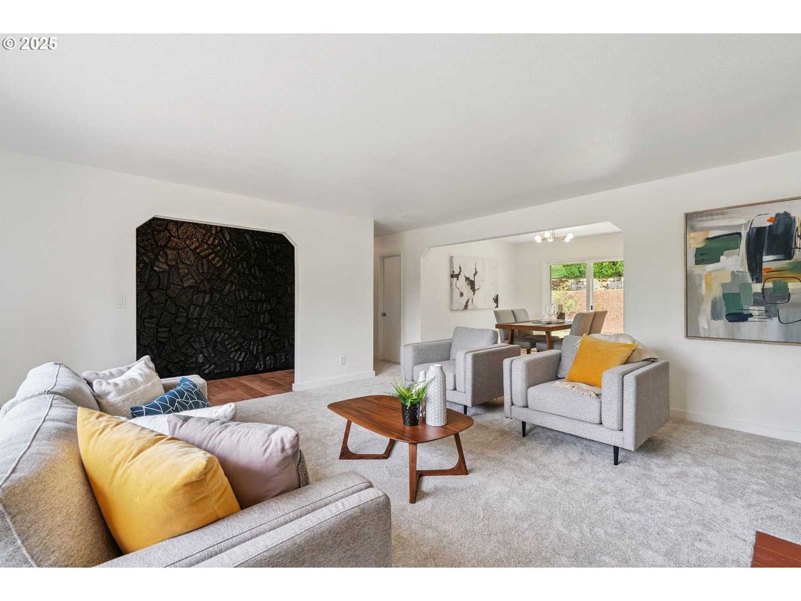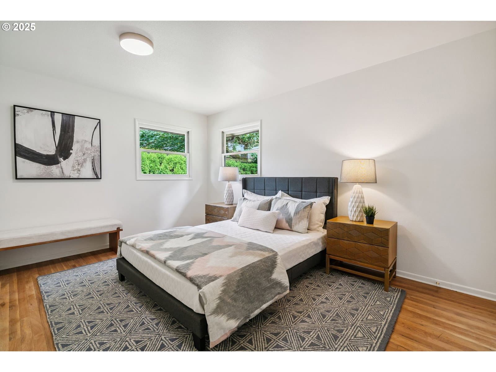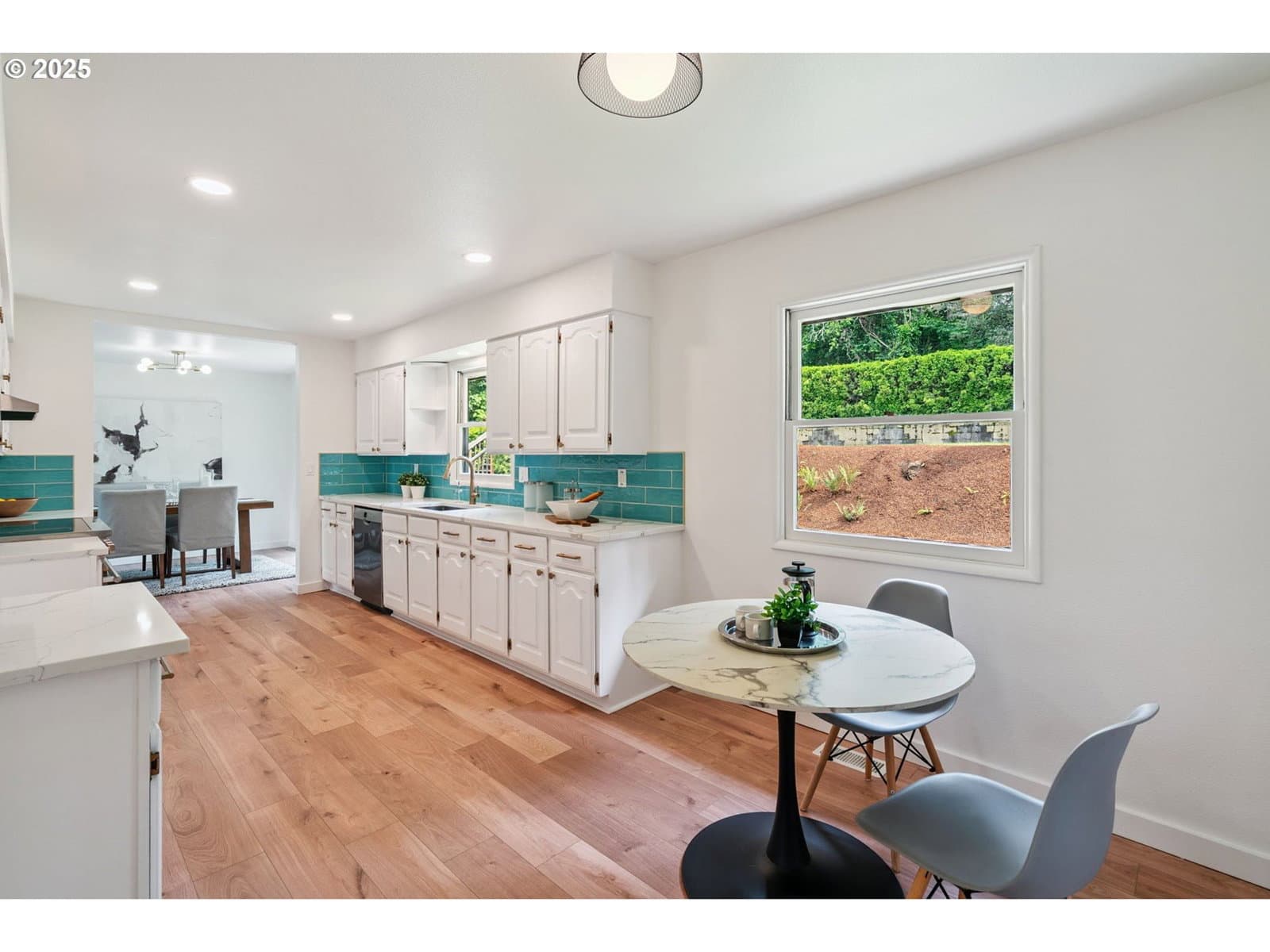 Completely updated pristine one-level ranch with serene surroundings and an unbeatable location. A brand new sparkling remodel highlights the home’s original mid-century character. Sophisticated entryway features a custom stone wall that leads into the bright living room centered by a large picture window and welcoming white fireplace. Formal dining room just off the updated eat-in kitchen with new gleaming quartz counters, tile back splash, and stainless steel appliances, including a 36" Forno induction range. Work from home or write your novel in the nice-sized office/den with beautiful natural wood beamed ceiling. All three comfortable bedrooms on one floor. Both bathrooms fully redone and include stunning tiled showers. Keep the gorgeous wood floors clean and kick off your shoes in one of two tidy mudrooms. Enjoy languid summer evenings in the huge tiered backyard with patio and lovely landscaping. All of this just a block from highly-rated Stephenson Elementary School, near multiple natural areas, Lake Oswego, with easy proximity to I-5. [Home Energy Score = 4. HES Report at https://rpt.greenbuildingregistry.com/hes/OR10239124]