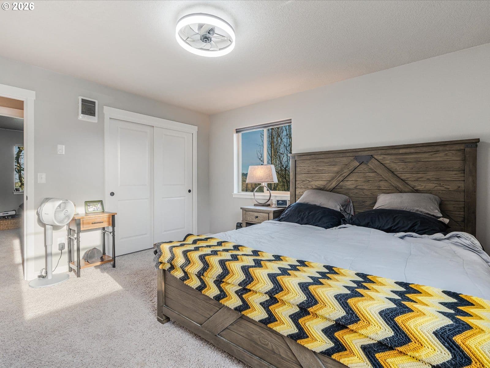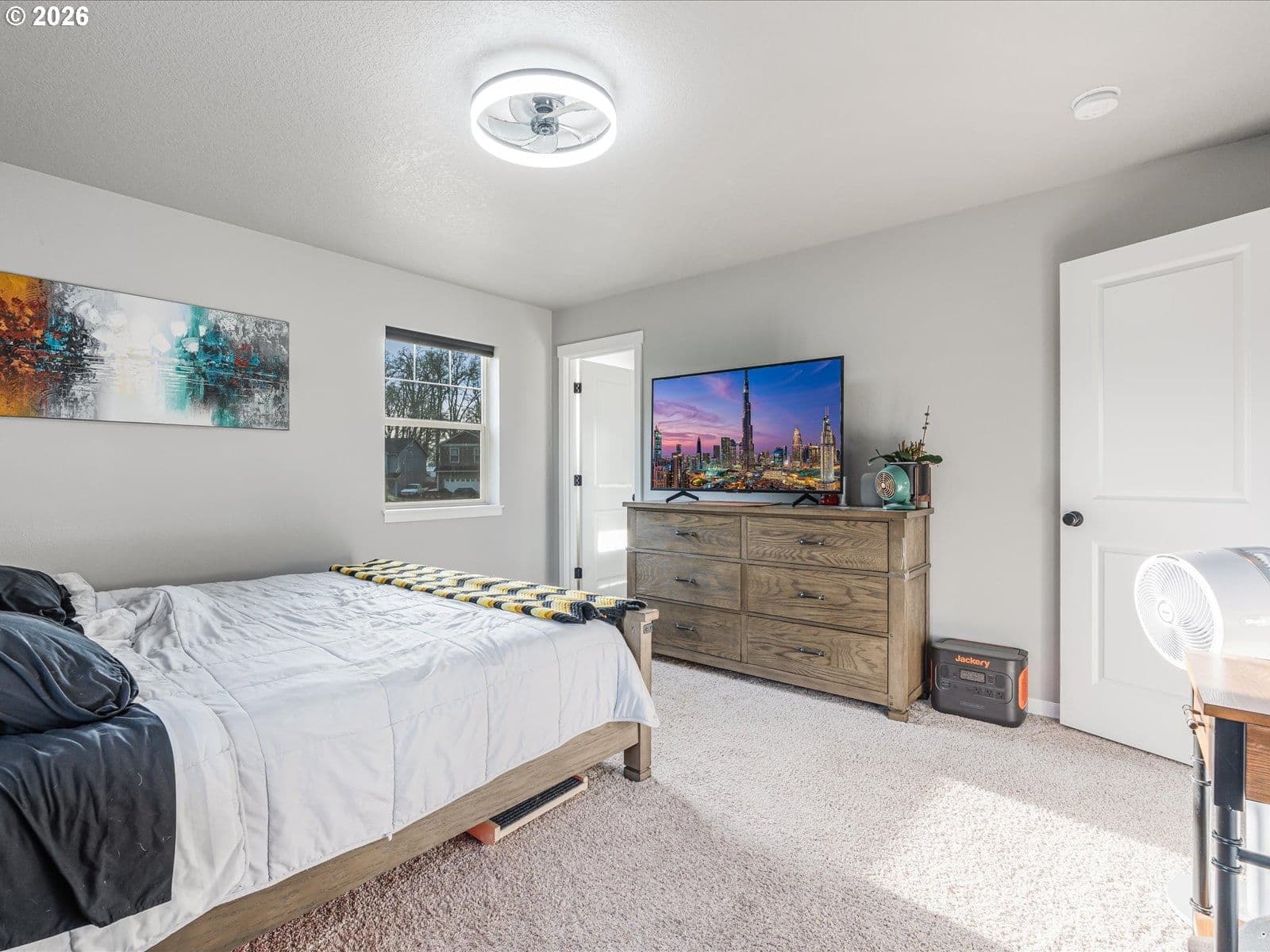 Situated in a quiet cul-de-sac abutting a park, this recently built two story home boasts an open layout and a wonderful view of the creek and countryside from the kitchen and back deck. The solar power system (only 3 years old) and the power-out generator plug-in are great plusses! Living room, dining area and kitchen flow together nicely on the ground floor. A pantry/laundry walk-in space off the kitchen is very practical, as is the storage space under the stairs and the half bathroom. On the upper floor the 3 bedrooms and 2 full bathrooms are well laid out, with some offering the countryside and creek view as well. The detached one-car garage connected by a breezeway and the fully fenced backyard complete this must-see property.