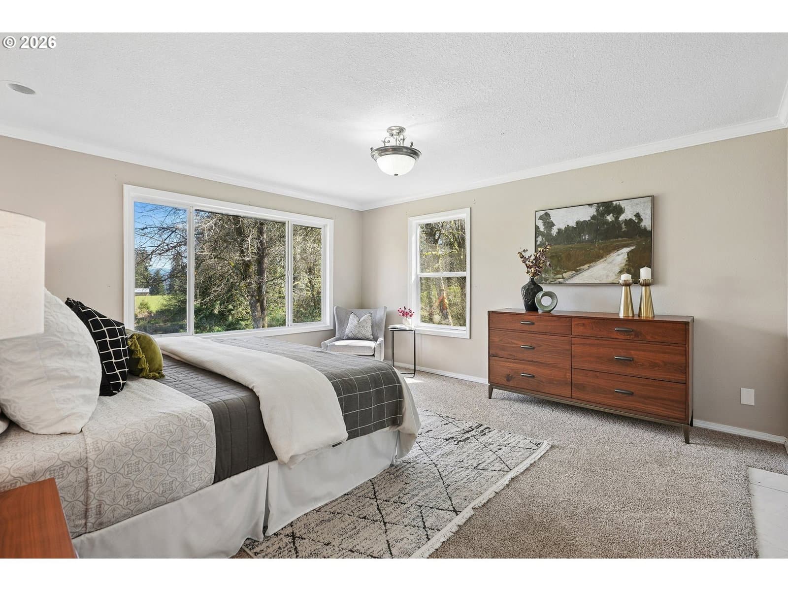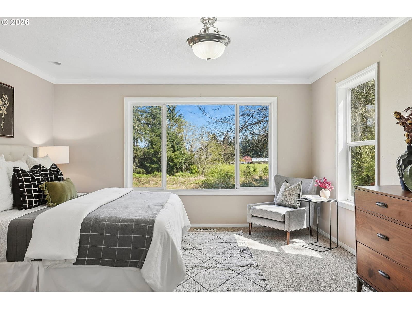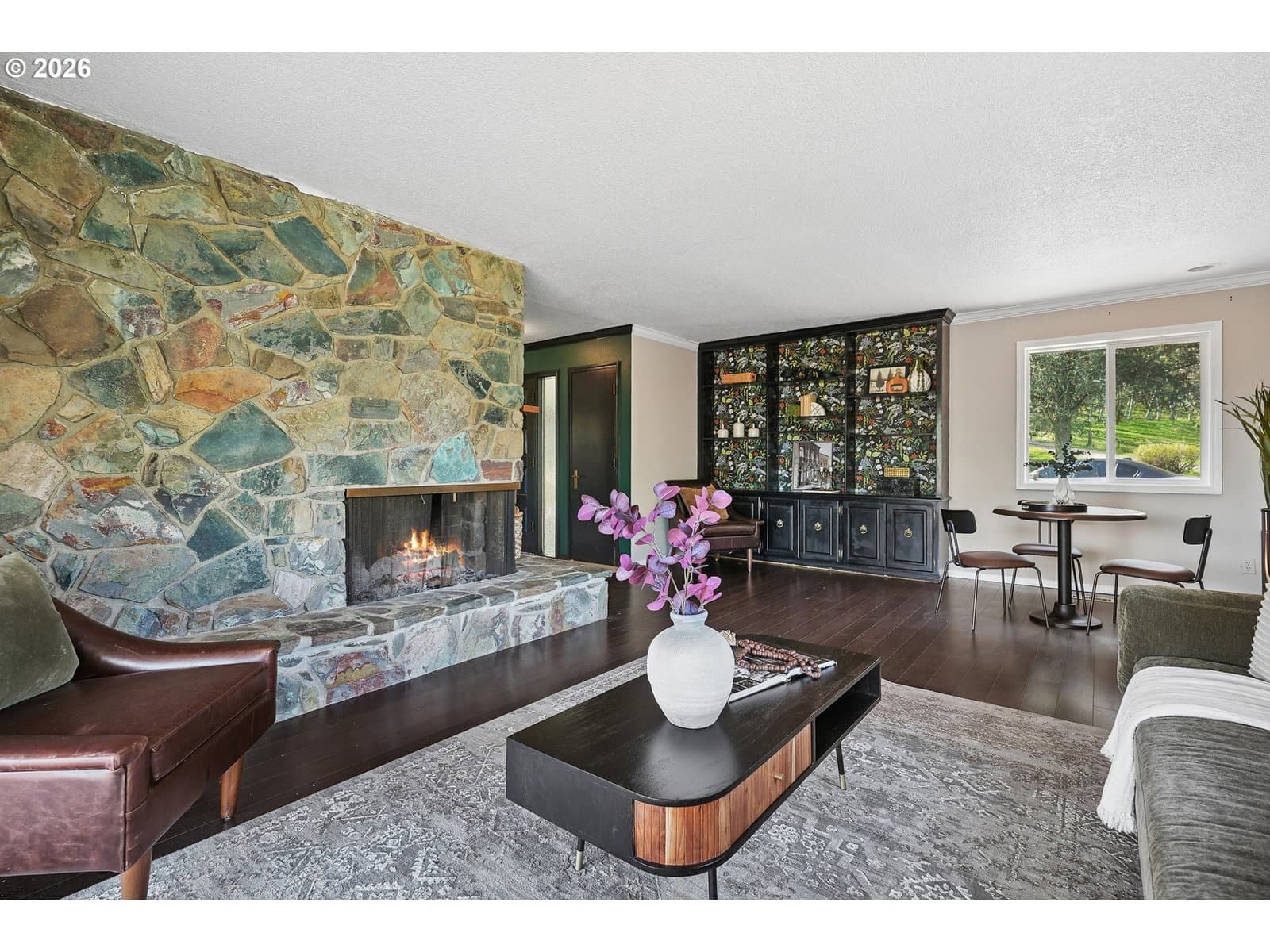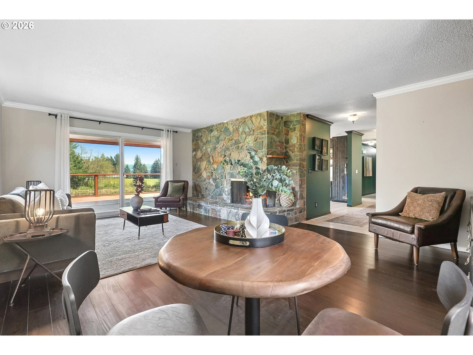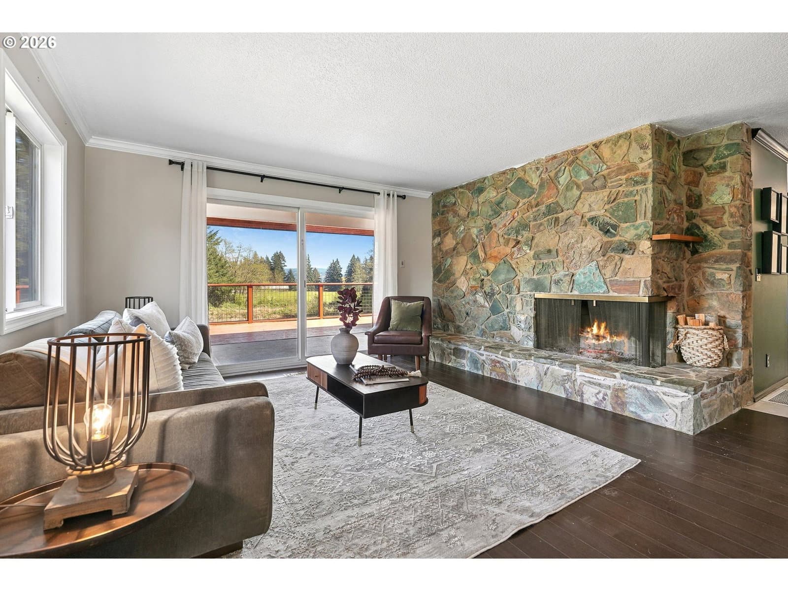 10 private acres, a pond, year round creek, and a home designed to connect with its surroundings, this Amboy property is the definition of rural living done right.As you step inside, you’re welcomed into a warm, moody interior where natural light pours through large windows and sliding glass doors, creating a seamless connection to the outdoors. The main living space centers around a natural stone wood burning fireplace, adding texture and character while anchoring the room.The layout flows easily into the dining area and kitchen, where brand new stainless steel appliances, generous counter space, and bar seating make it ideal for everyday living and gathering. Expansive windows continue to frame the surrounding landscape, bringing the outside in.The primary suite is located on the main level, offering comfort and convenience with peaceful views of the property. The ensuite features double vanities, a soaking tub, and a separate shower, creating a private retreat within the home.Additional bedrooms and flexible spaces provide room for guests, work from home needs, or creative use. Downstairs, a spacious second living area with its own fireplace expands the home’s functionality, with direct access to the outdoors and strong potential for multi generational living or ADU use.Recent updates include fresh exterior paint, new interior paint, new carpet, a newer deck, and an updated main water line, making the home feel move in ready.Step outside to an expansive deck that captures territorial views and overlooks the surrounding landscape, offering space to relax and entertain. The land is truly special, featuring a year round creek, two peaceful ponds, and three fenced horse pastures, along with a shed and chicken coop. A large 36x40 shop with RV sized roll up doors and a carport provide excellent space for storage, projects, or recreational use. Usable acreage, privacy, and natural beauty come together to create a setting that is both functional and peaceful.