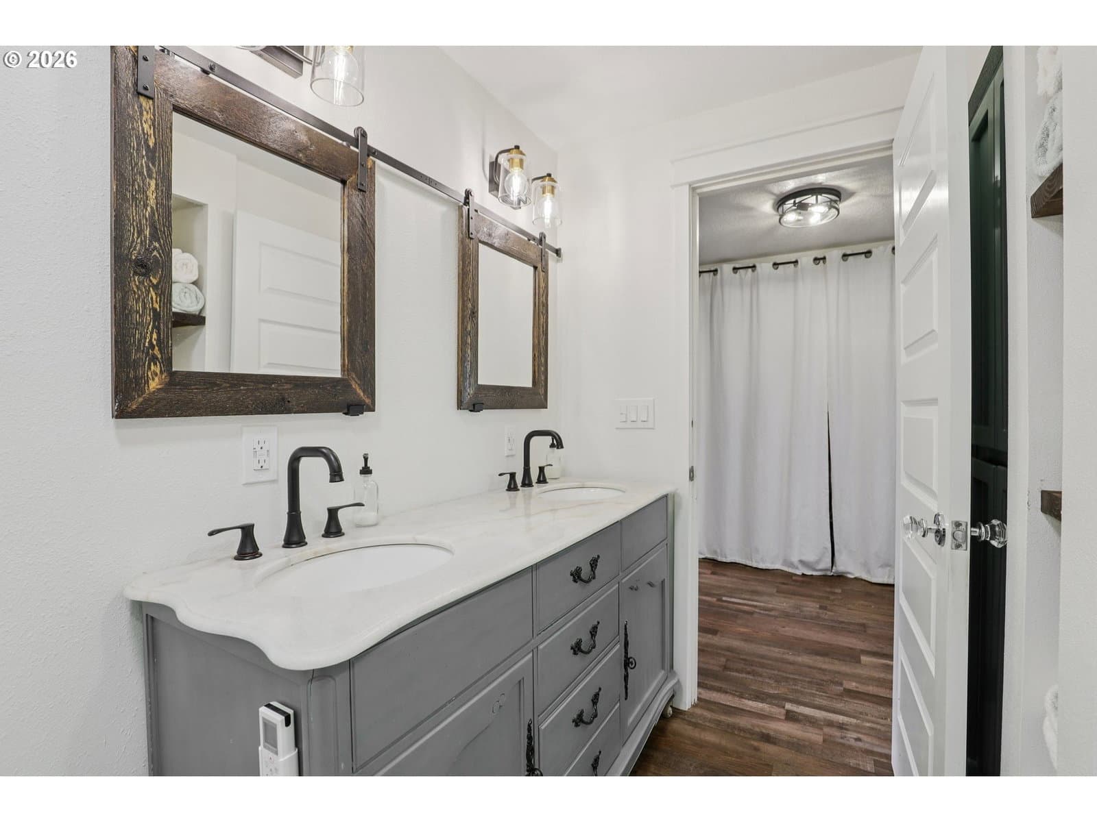 Fully fenced and cross-fenced property featuring LVP flooring throughout ~90% of the home. Triple-pane windows installed in 2023 with transferable lifetime warranty. New A/C (2025), tankless water heater, triple water filtration system at main line, and updated water lines (2020). Beautiful covered pergola and newly installed backyard fence (2025). Fenced side garden with greenhouse and raised beds. Stunning 2022 kitchen remodel with built-in oven, hidden dishwasher, and concealed garbage. Luxurious primary bath remodel with oversized double walk-in shower with three shower heads and heated towel bar. Second bath offers an 18-inch deep soaking tub. Built-in bookcase with cabinetry in family room.