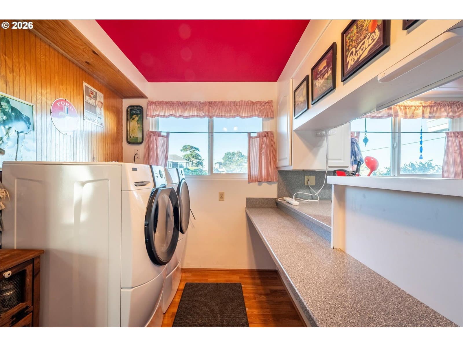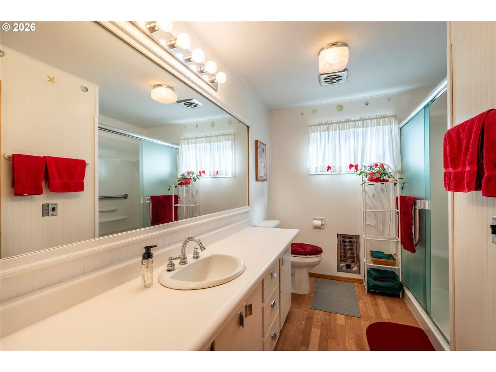 OCEAN WAVES ROLLING ON IN to the Jetty at the mouth of the Coquille River is the view from this single level 1960 Ranch Home on large, fenced lot features 3 Bedroom/2 Baths, 1962 sq. ft., decorative brick siding, picture windows, a spacious family room with 6 skylights in addition to the large Living Room/Dining Room with Pellet Stove with Brick & Myrtlewood Mantle, new Daikin Heat Pump, front loading Kenmore Elite Washer/Dryer, vinyl windows, small sheltered, private deck, 2 car attached garage with built in workbench & shelving plus an extra fridge. Sold mostly furnished if you would like. The .22-acre yard is fenced into 3 sections. One area, 55 x 60 ft. might be just right for an ADU, studio or shop or just an enviable garden. Quick walk to all the fun: beach, park, library, pickleball, disc golf, senior center, Old Town shops & dining! Great Bandon Beach House in a prime sweet spot!
