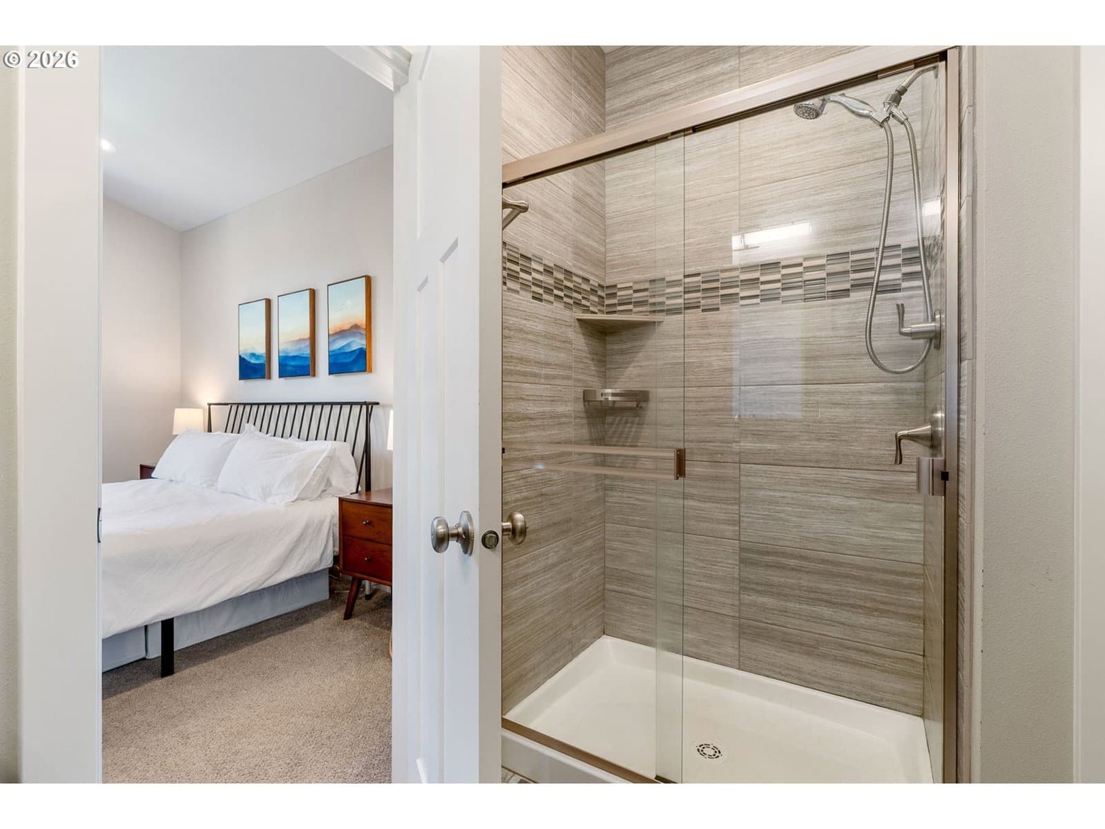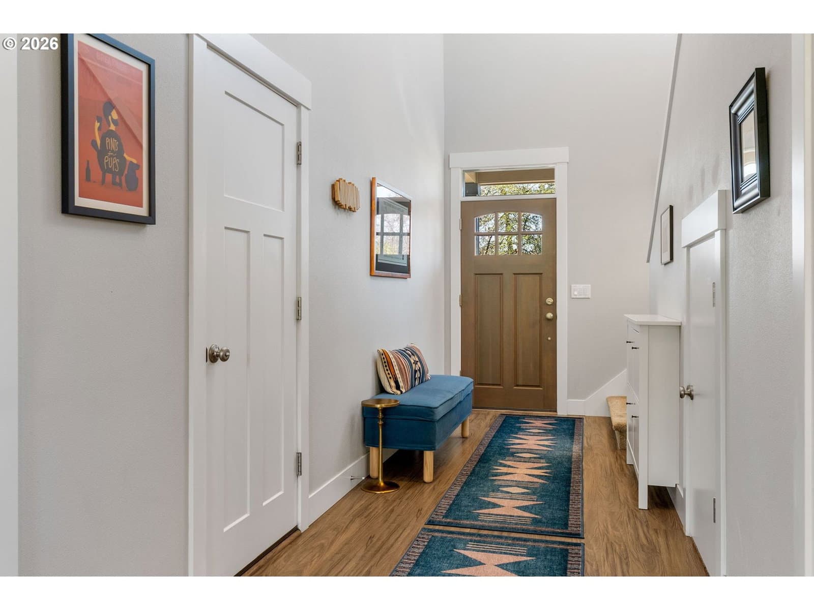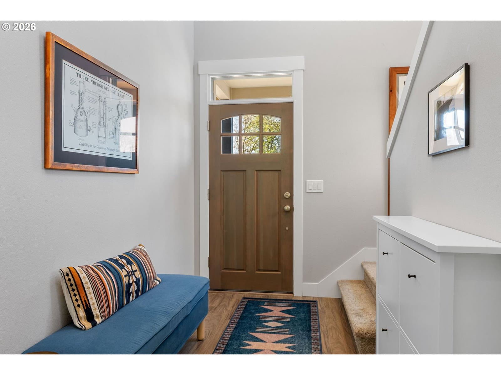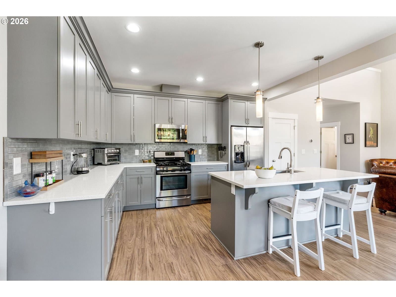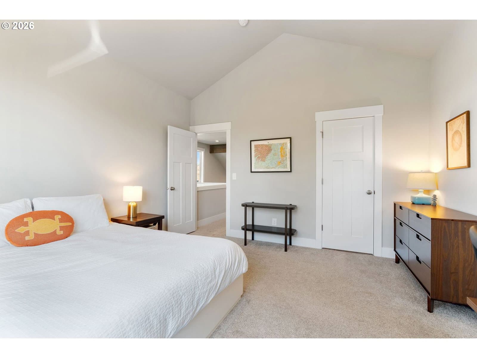 Thoughtfully designed and impeccably cared for, this light-filled attached home offers a comfortable blend of style and livability. Dramatic ceilings and expansive windows bring in natural light throughout the home, with a vaulted living room that opens to the dining room and kitchen. The adjacent loft, open to the living room below, includes a small nook for a desk or display, while the two-story entry with stairwell windows adds another layer of brightness as you move through the home. Anchoring the main living area, the kitchen features a generous island, stainless steel apron-front sink, quartz countertops, gas range, and stainless steel appliances. There is ample cabinet and counter space throughout, along with a pantry for additional storage. From the kitchen, there is an easy flow to the outdoor spaces, extending the living area beyond the interior. Set apart from the main living areas, the primary suite features vaulted ceilings, a walk-in closet, and a private en-suite bathroom with quality tile finishes and quartz countertops. The guest suite offers the same level of comfort, with vaulted ceilings and a well-appointed en-suite bathroom. The front yard has been recently professionally landscaped with low-maintenance plantings, while the backyard offers a fully usable outdoor space with natural boulders and room to relax or entertain. A covered patio with retractable awning, hot tub, outdoor shower, gas fire pit, and grill hookup add to its functionality. Additional features include a 2-car garage with driveway parking, territorial views of the surrounding Gorge hills, Mt Adams view from the backyard and Mt Hood view from the front. Located just minutes from the Westside Trail, schools, parks, shopping, and downtown Hood River. This home works equally well as a full-time residence or a low-maintenance retreat.