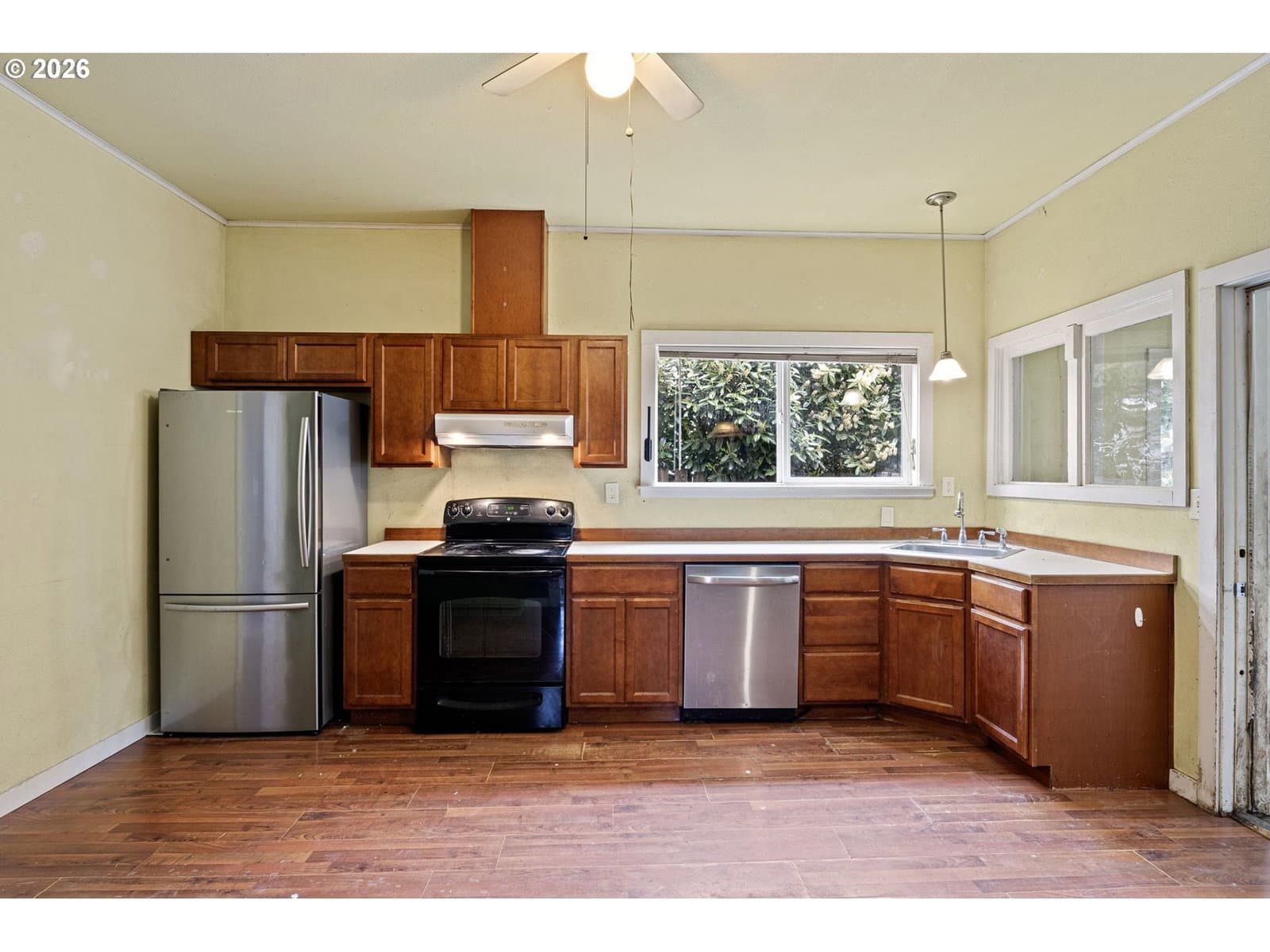 Freshly updated and move-in ready, this home features 3 bedrooms and 1 bathroom, offering comfortable living with thoughtful upgrades throughout. Enjoy peace of mind with a brand-new roof and fresh interior paint. The property includes a detached garage, convenient RV hookup, and a backyard complete with a dedicated garden area—perfect for outdoor living and hobbies. A great opportunity to own a well-maintained home with practical features and charm.