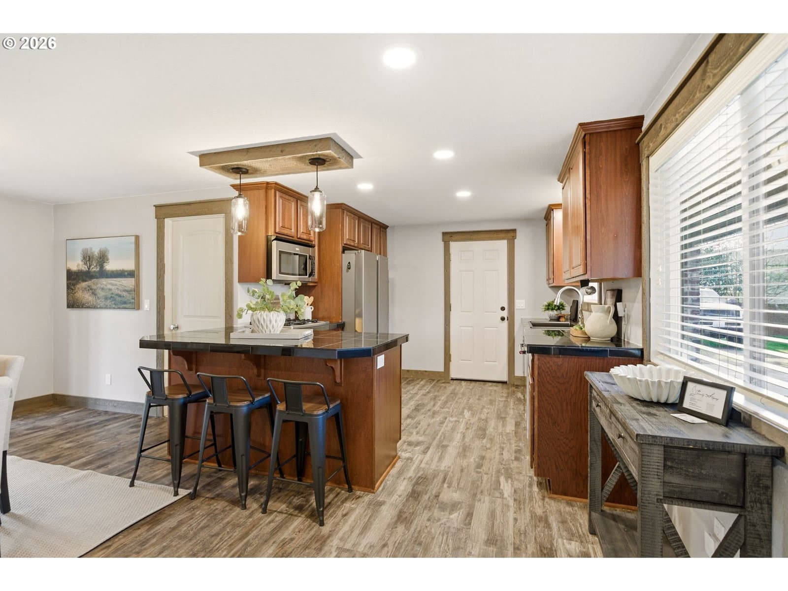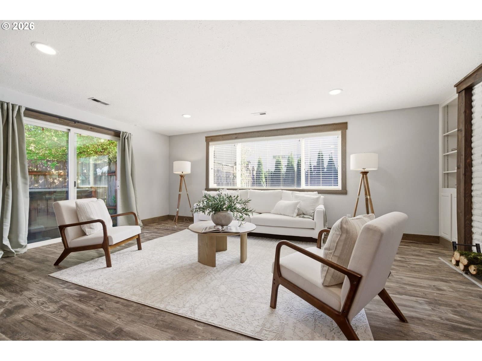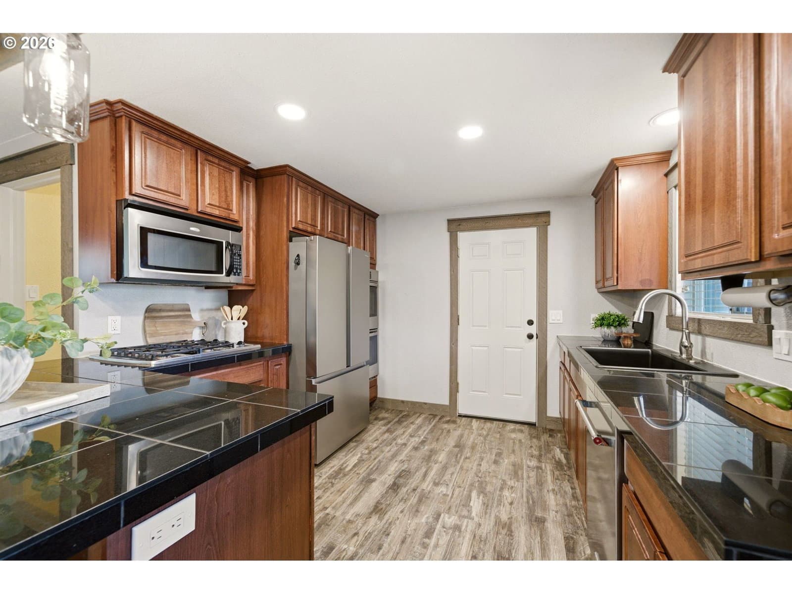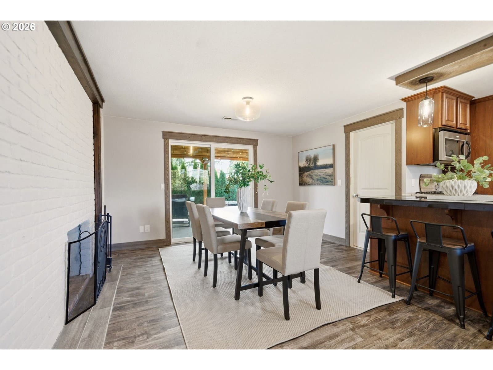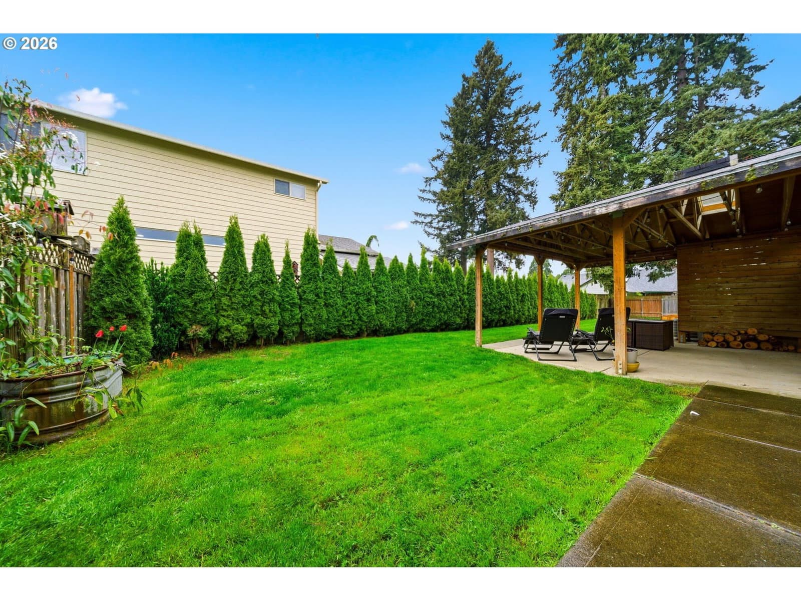 Nestled at the end of a private drive, this established ranch-style home offers unparalleled privacy on an expansive lot. The massive, fully fenced back and front yards are a true outdoor sanctuary with mature landscape, featuring an enormous covered patio designed for year-round comfort. With over 15,000 sq ft lot, enjoy abundant space for pets, gardening or future projects or expansion or potential ADU. The property also includes extensive parking-perfect for an RV w/existing gate, boats, or a dream shop. Experience the ease of single-level living in this thoughtful custom 4-bedroom, 2-bathroom, 1,664 sq ft home. This is no cookie-cutter home! The open-concept interior has many windows & dual sliding glass doors. Durable LVP flooring throughout, offering a completely carpet-free environment. A unique double-sided fireplace anchors the spacious living & dining rooms. Living room provides private access to a secluded hot tub area. The dining room provides access to a huge patio. The kitchen is equipped with a eating bar, granite countertops, gas cooktop & double ovens! Retreat to the primary suite, which features double closets and a tastefully updated bathroom. The garage features overhead storage, a separate workshop/storage room with outlets for power tools & has multiple exterior access doors. Recent professionally serviced HVAC, water heater and roof, & upgraded electrical GFCI outlets. No CC&R's or HOA. A rare find in Battle Ground-schedule your private tour today!