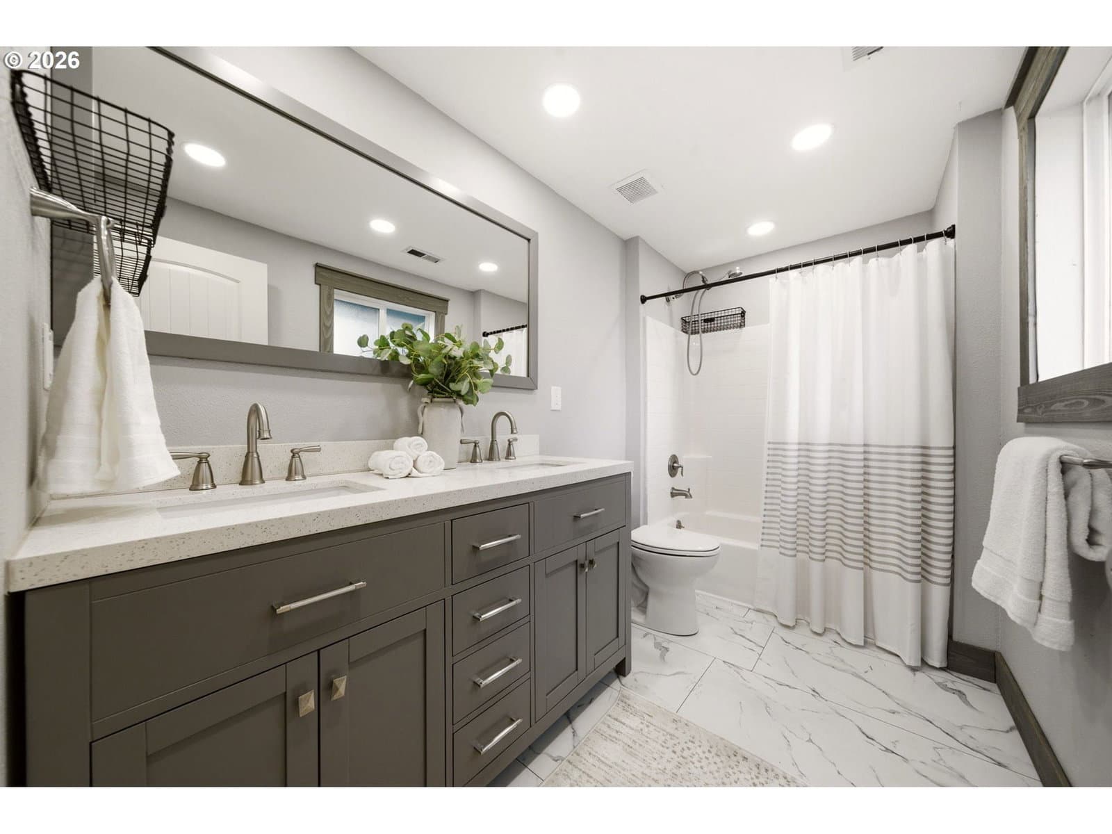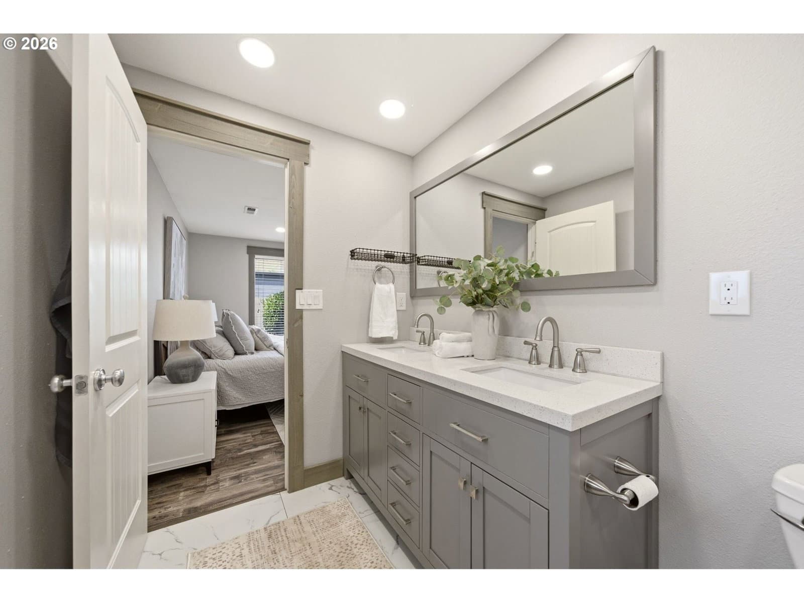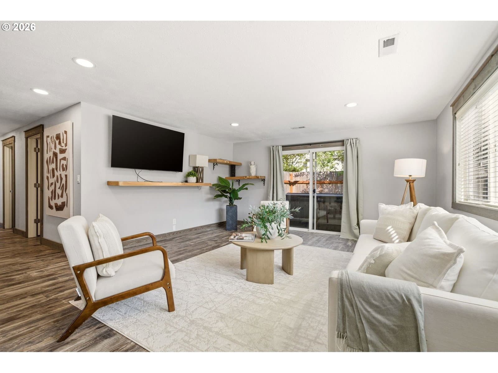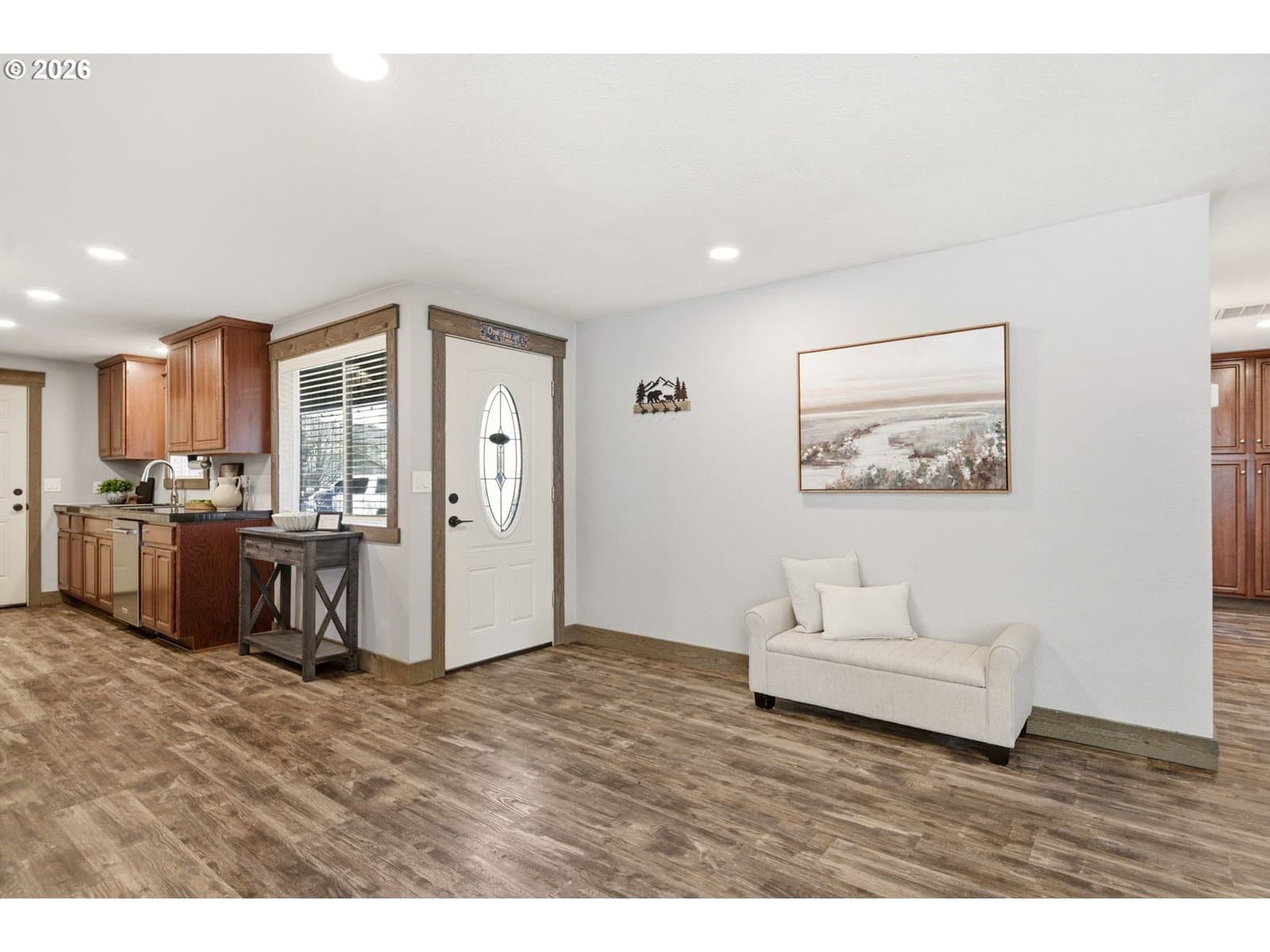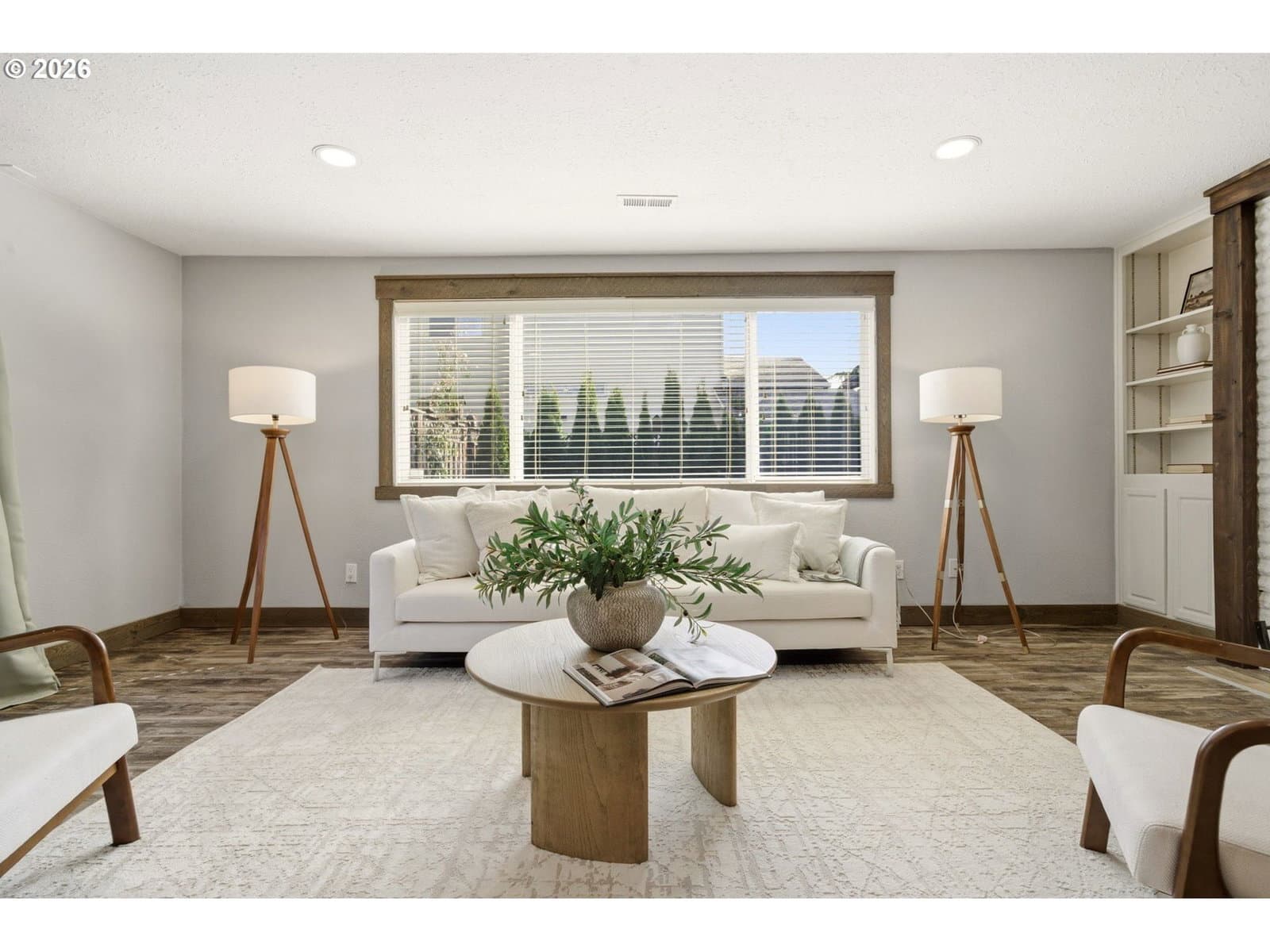 Nestled at the end of a private drive, this established ranch-style home offers unparalleled privacy on an expansive lot. The massive, fully fenced back and front yards are a true outdoor sanctuary with mature landscape, featuring an enormous covered patio designed for year-round comfort. With over 15,000 sq ft lot, enjoy abundant space for pets, gardening or future projects or expansion or potential ADU. The property also includes extensive parking-perfect for an RV w/existing gate, boats, or a dream shop. Experience the ease of single-level living in this thoughtful custom 4-bedroom, 2-bathroom, 1,664 sq ft home. This is no cookie-cutter home! The open-concept interior has many windows & dual sliding glass doors. Durable LVP flooring throughout, offering a completely carpet-free environment. A unique double-sided fireplace anchors the spacious living & dining rooms. Living room provides private access to a secluded hot tub area. The dining room provides access to a huge patio. The kitchen is equipped with a eating bar, granite countertops, gas cooktop & double ovens! Retreat to the primary suite, which features double closets and a tastefully updated bathroom. The garage features overhead storage, a separate workshop/storage room with outlets for power tools & has multiple exterior access doors. Recent professionally serviced HVAC, water heater and roof, & upgraded electrical GFCI outlets. No CC&R's or HOA. A rare find in Battle Ground-schedule your private tour today!