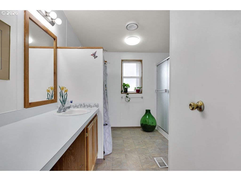 Nice move-in ready 1996 Marlette manufactured home in a quiet park in Creswell. Only $655/mo space rent, noticeably lower than most other parks. This 3 Bedroom, 2 Bath home includes a primary with ensuite bath, and is nicely updated with newer laminate floors, stainless kitchen appliances, unique chalkboard cabinet faces, and a brand new heat pump and furnace installed last year. Includes carport and storage shed, and even has a nice fenced back yard. Come enjoy the peaceful lifestyle of this great park.