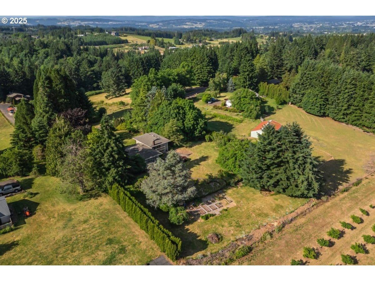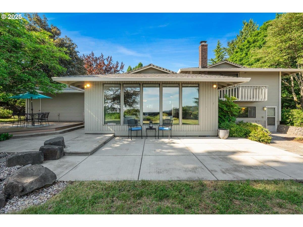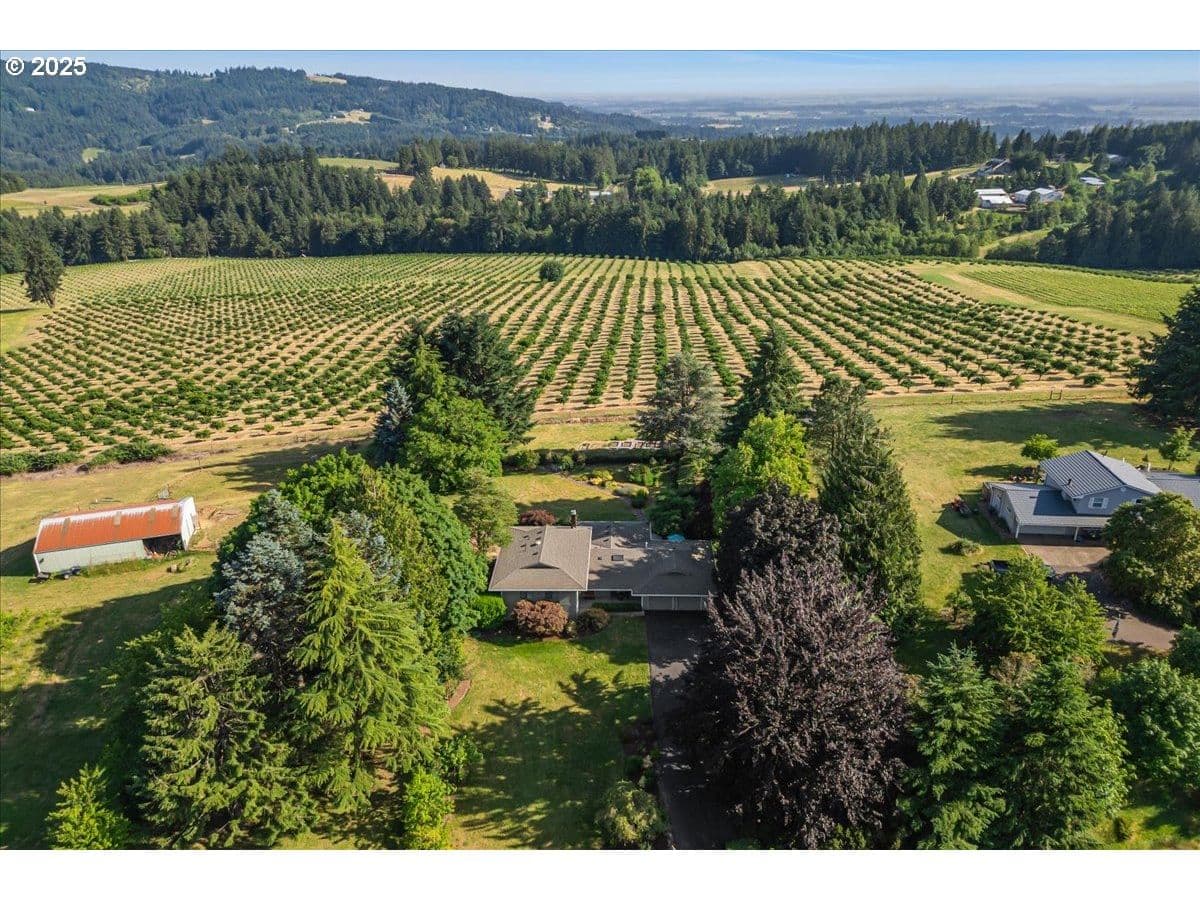 Some homes have a feeling you just can't capture in photos. This is one of those rare finds that surprises you in the best way. From the moment you step inside, the wall of floor-to-ceiling windows floods the interior with natural light and draws your eye to the landscape and sweeping valley views. Tucked into the heart of Oregon wine country, you feel a world away, yet you're just minutes from Sherwood and Newberg's shops, restaurants, wineries, parks and trails. Inside, the layout blends open-concept living with defined spaces for both gathering and retreat. A subtle nod to mid-century design adds character without feeling dated. Thoughtful updates reflect consistent care and pride of ownership. The kitchen was designed for both everyday function and easy entertaining, featuring a gas range, prep sink, oversized Sub-Zero refrigerator and freezer and stainless steel appliances. With a living room, separate family room, three bedrooms, three full bathrooms, and a versatile bonus room that can serve as a fourth bedroom or home office, there's plenty of space to spread out. Outside, the living space continues with an expansive patio, Ipe deck, private balcony off the primary suite, and a dry sauna for year-round relaxation. Situated on a quiet dead-end street, this 1.35-acre property is both private and manageable, offering room to garden, play and unwind without being overwhelmed by upkeep. Garden beds are in place, a tool shed is ready for your gear, and several fruit and nut trees are already established; including apple, pear, plum, quince, walnut, and even kiwi. This is a home that lives well in every season, offering peaceful rural living paired with the convenience of being near everyday amenities. Come experience it for yourself. You'll be captivated by the setting and lifestyle this property has to offer. Significant Price Improvement! Homeowners on Canter Lane share a community well. Chehalem Mountain Sun Ridge HOA was formed to manage the billing and maintenance of the well only.