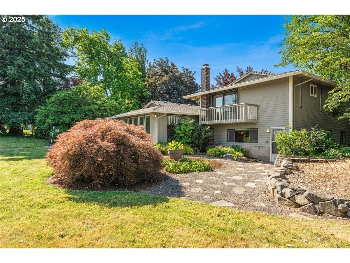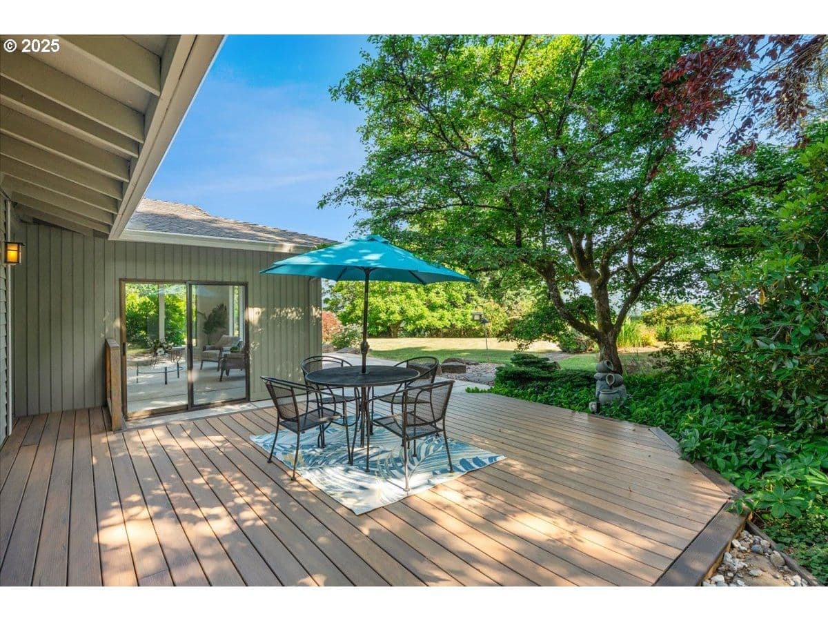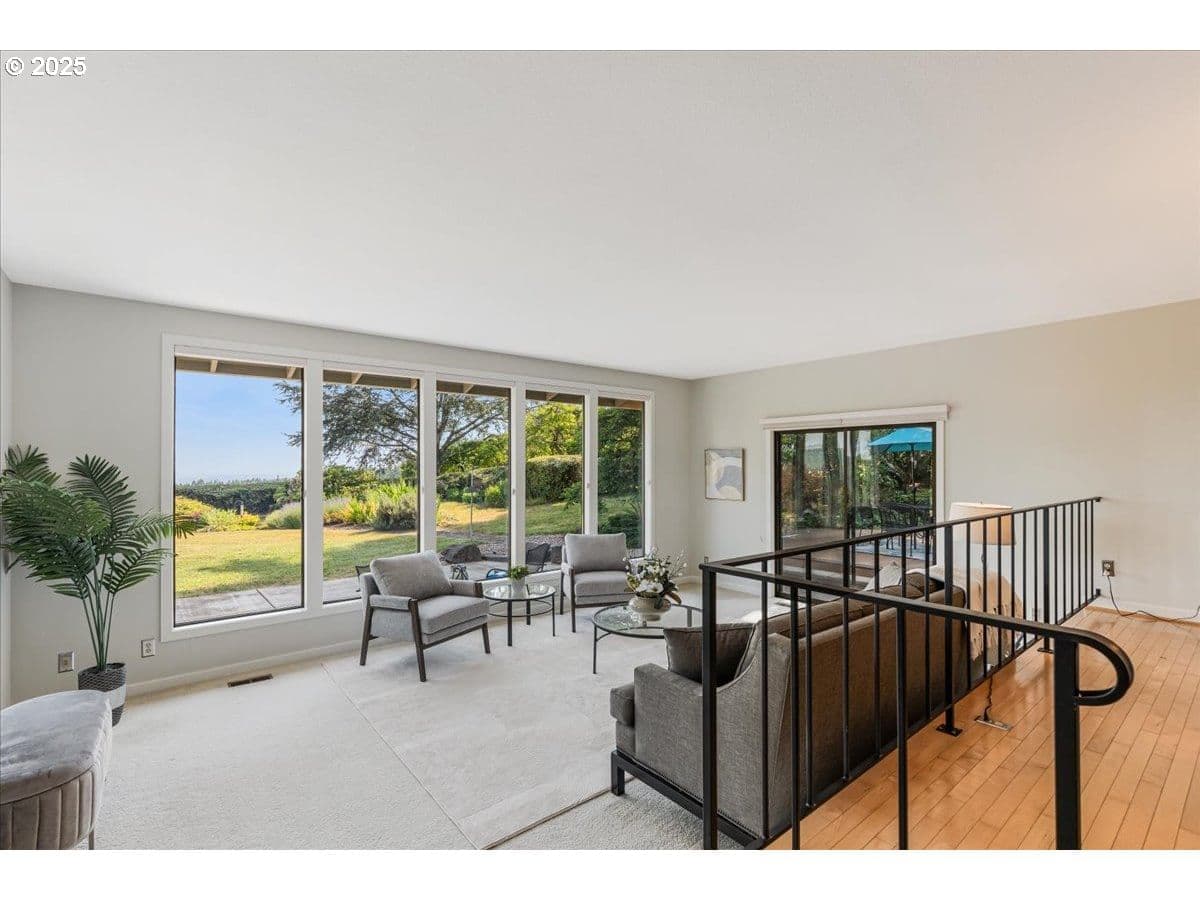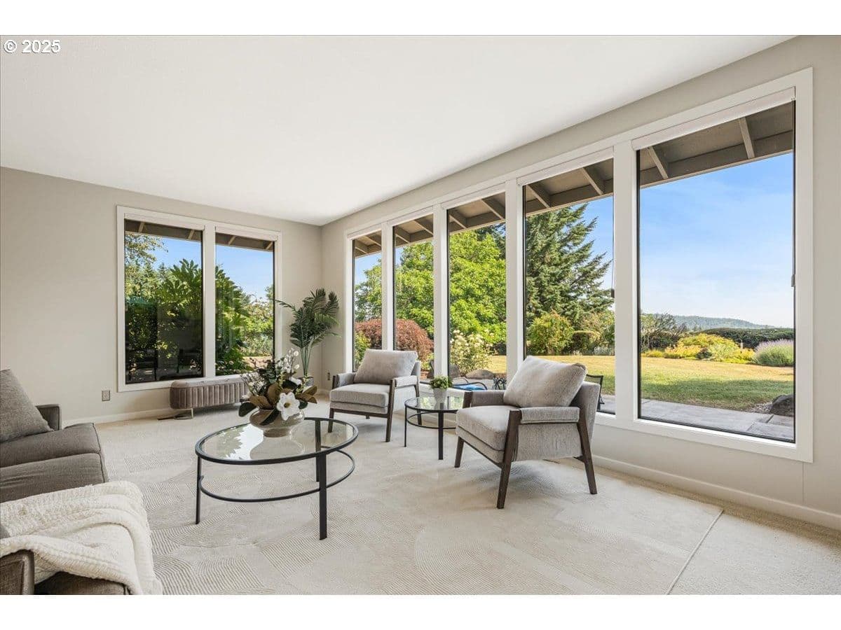 Some homes have a feeling you just can't capture in photos. This is one of those rare finds that surprises you in the best way. From the moment you step inside, the wall of floor-to-ceiling windows floods the interior with natural light and draws your eye to the landscape and sweeping valley views. Tucked into the heart of Oregon wine country, you feel a world away, yet you're just minutes from Sherwood and Newberg's shops, restaurants, wineries, parks and trails. Inside, the layout blends open-concept living with defined spaces for both gathering and retreat. A subtle nod to mid-century design adds character without feeling dated. Thoughtful updates reflect consistent care and pride of ownership. The kitchen was designed for both everyday function and easy entertaining, featuring a gas range, prep sink, oversized Sub-Zero refrigerator and freezer and stainless steel appliances. With a living room, separate family room, three bedrooms, three full bathrooms, and a versatile bonus room that can serve as a fourth bedroom or home office, there's plenty of space to spread out. Outside, the living space continues with an expansive patio, Ipe deck, private balcony off the primary suite, and a dry sauna for year-round relaxation. Situated on a quiet dead-end street, this 1.35-acre property is both private and manageable, offering room to garden, play and unwind without being overwhelmed by upkeep. Garden beds are in place, a tool shed is ready for your gear, and several fruit and nut trees are already established; including apple, pear, plum, quince, walnut, and even kiwi. This is a home that lives well in every season, offering peaceful rural living paired with the convenience of being near everyday amenities. Come experience it for yourself. You'll be captivated by the setting and lifestyle this property has to offer. Significant Price Improvement! Homeowners on Canter Lane share a community well. Chehalem Mountain Sun Ridge HOA was formed to manage the billing and maintenance of the well only.