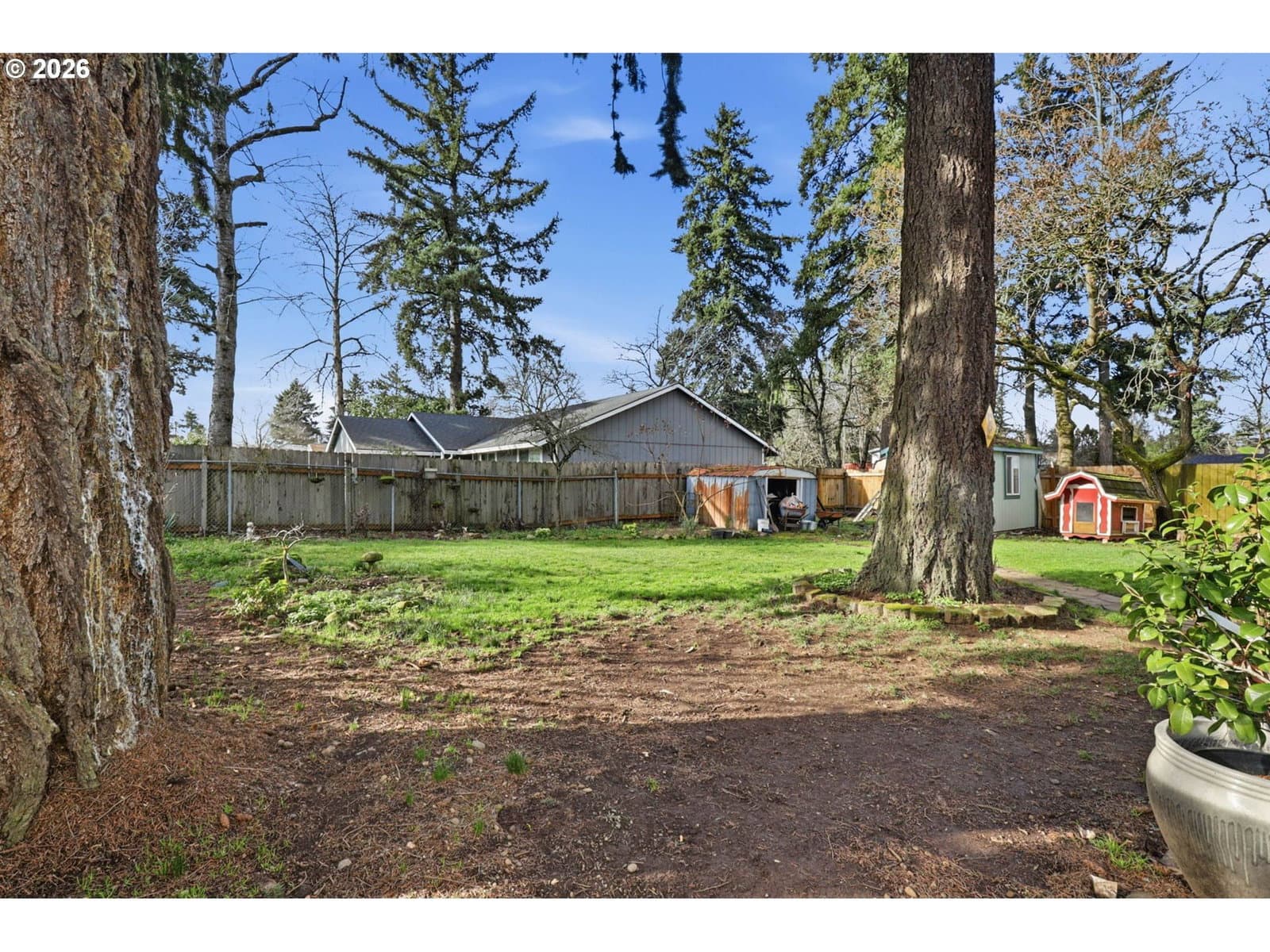 Set on a large, private corner lot, this classic ranch offers a blend of quiet living, flexibility, and access to nature. Fresh interior and exterior paint give the home a refreshed feel, while a newer roof with a transferable warranty adds long-term confidence. The floor plan is functional and inviting, with generous living space, a cozy fireplace, and large windows that bring in natural light and views of the surrounding greenery. Outside, the oversized lot truly sets this property apart with RV parking, multiple storage sheds, a chicken coop, and room for gardening. Just steps from the Furey Community Garden and nearby walking and biking trails, the home is also adjacent to the Johnson Creek Wildlife Corridor, a protected natural habitat known for birdwatching and seasonal wildlife, offering a peaceful, nature-rich backdrop rarely found so close to city amenities. A great option for buyers seeking a home with outdoor space, long-term potential, and value in Southeast Portland.