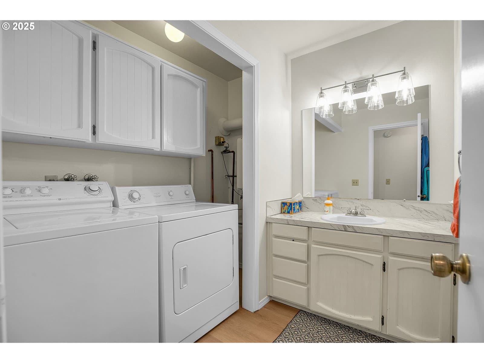 With one of the lowest HOA monthly payments in Mountain Park, this upper level contemporary condo features fresh paint, brand new carpet and LVP! The spacious step-down living room has a vaulted ceiling, tile floor, gas fireplace and tall windows that invite the outdoors in! The kitchen offers hardwood floors, granite counters, a stainless steel dishwasher, gas range with double-ovens, refrigerator and walk-in pantry for additional storage. The dining room has a slider that accesses a deck overlooking a walking path surrounded by forest. The primary bedroom has a deck of its own as well as a walk-in closet. The continental bath features a laundry space (washer and dryer are included), a sink on the hall side as well as double-sinks on the primary bedroom side. This condo offers a tuck-under attached single-car garage plus off-street parking. The entry has a covered access and a storage closet. Landscaping and exterior maintenance is included with the monthly dues. This condo is less than a mile to Mountain Park Clubhouse, which offers a variety of activites and amenities, including a fitness center, tennis and basketball courts, a pool, meeting and party spaces and other recreational facilities. If you want to be on top of the world and close to PCC, I-5, Lake Oswego and Westside amenities all for an affordable price, don’t miss this opportunity to dwell in one of Lake Oswego’s best communities!