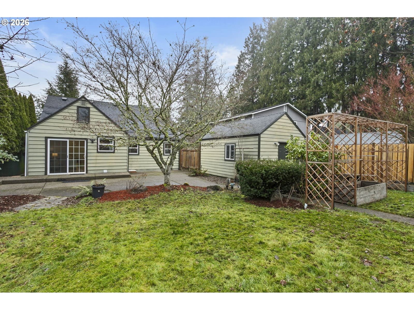 Move-in ready Hillsboro bungalow blending classic charm with modern style. Set on a beautifully landscaped lot, the private and expansive backyard offers an ideal setting for summer gatherings, featuring concrete hardscaping and mature plantings. Inside, enjoy a practical and flexible floor plan with warmly toned flooring, fresh interior paint, and abundant natural light throughout. The main level features an inviting eat-in kitchen with space for everyday meals and casual entertaining, along with two distinct living areas that provide versatility for relaxing, hosting, or working from home. A main-level bedroom and full bath add everyday convenience and flexibility. Upstairs, two additional bedrooms offer comfortable retreats with separation from the main living spaces. Located close to historic downtown Hillsboro, enjoy easy access to shopping, restaurants, the Walters Cultural Arts Center, parks, trails, and recreational facilities. Convenient to major commuter routes and nearby tech employers, this home offers an exceptional blend of lifestyle and location.