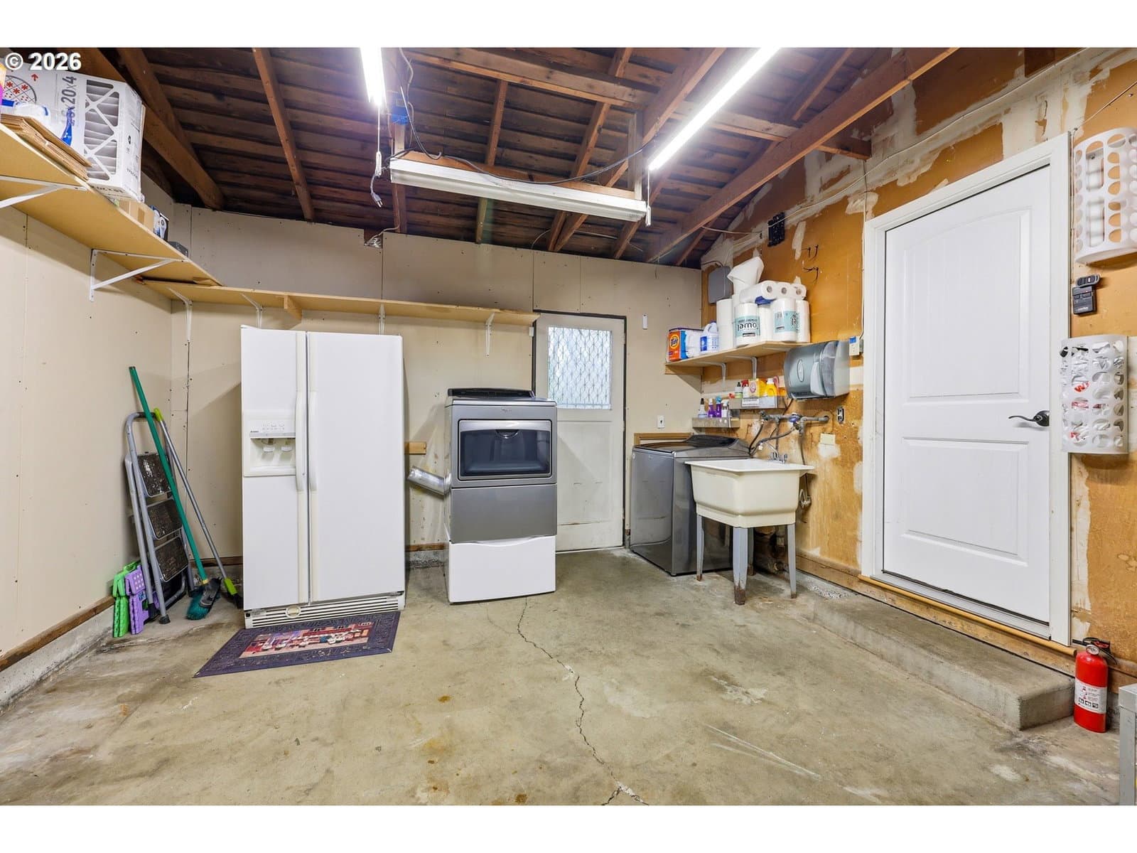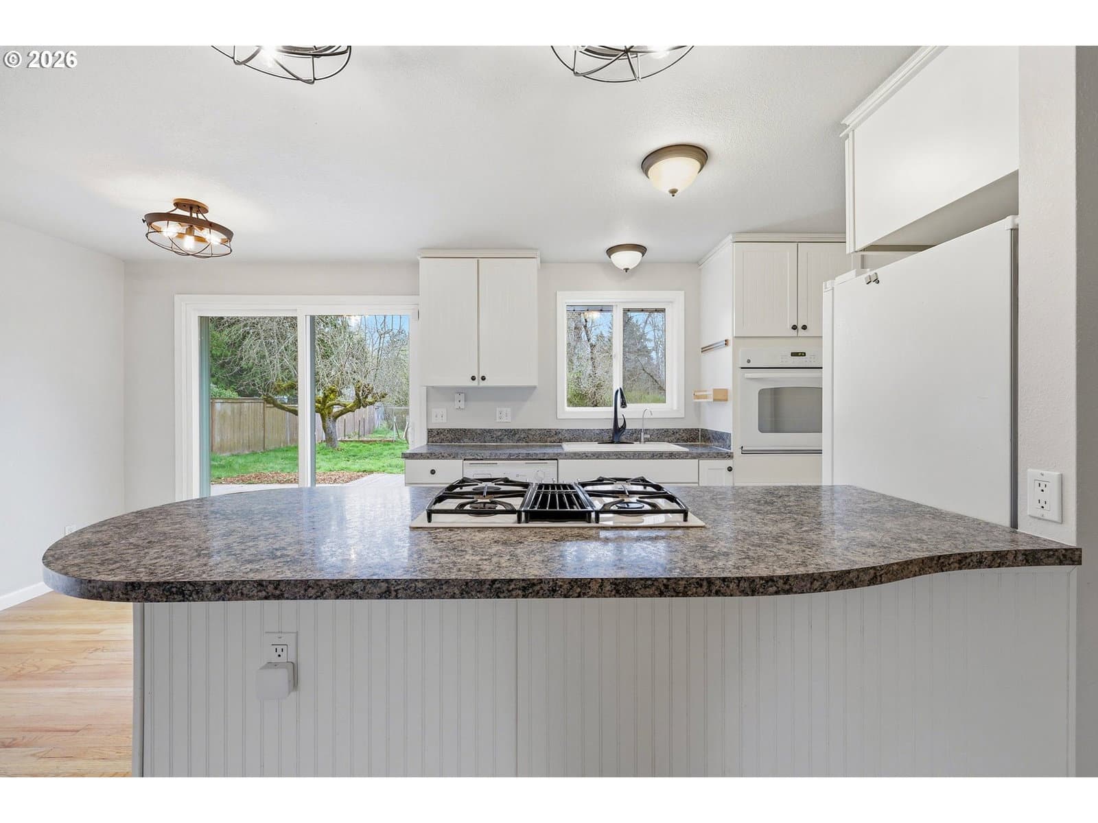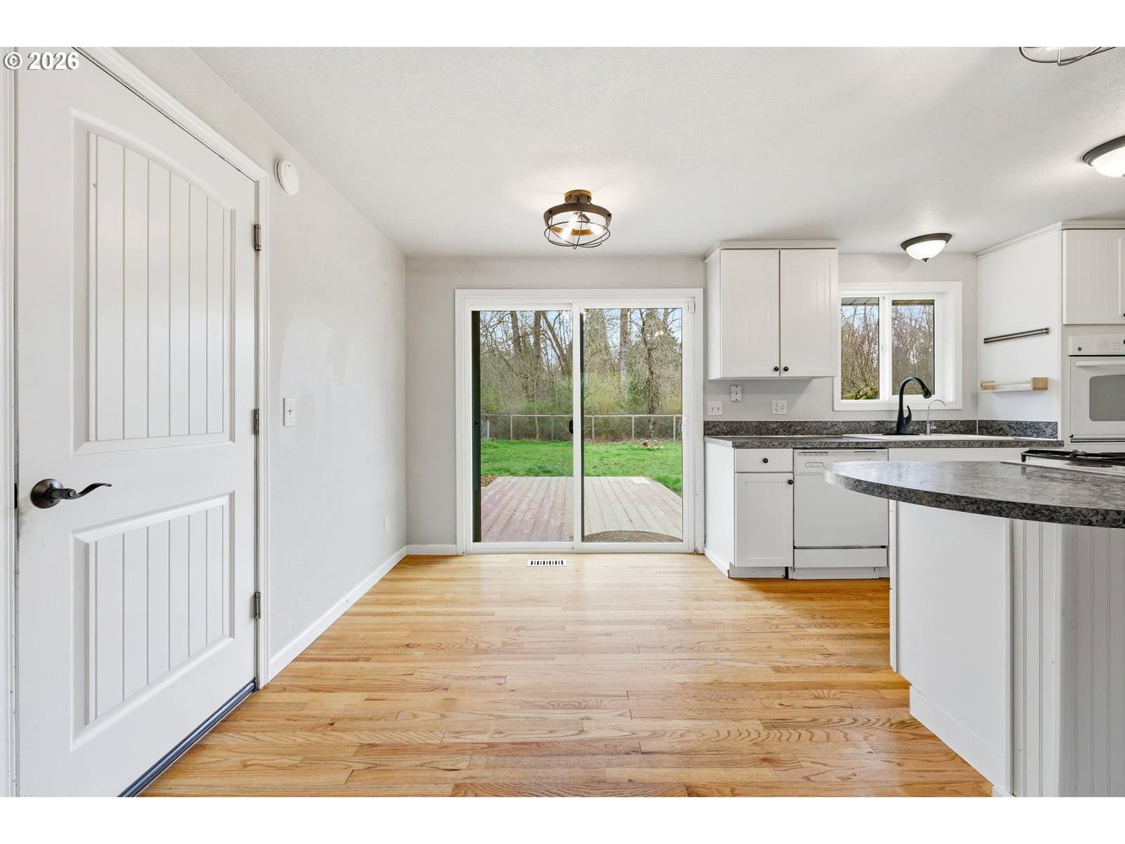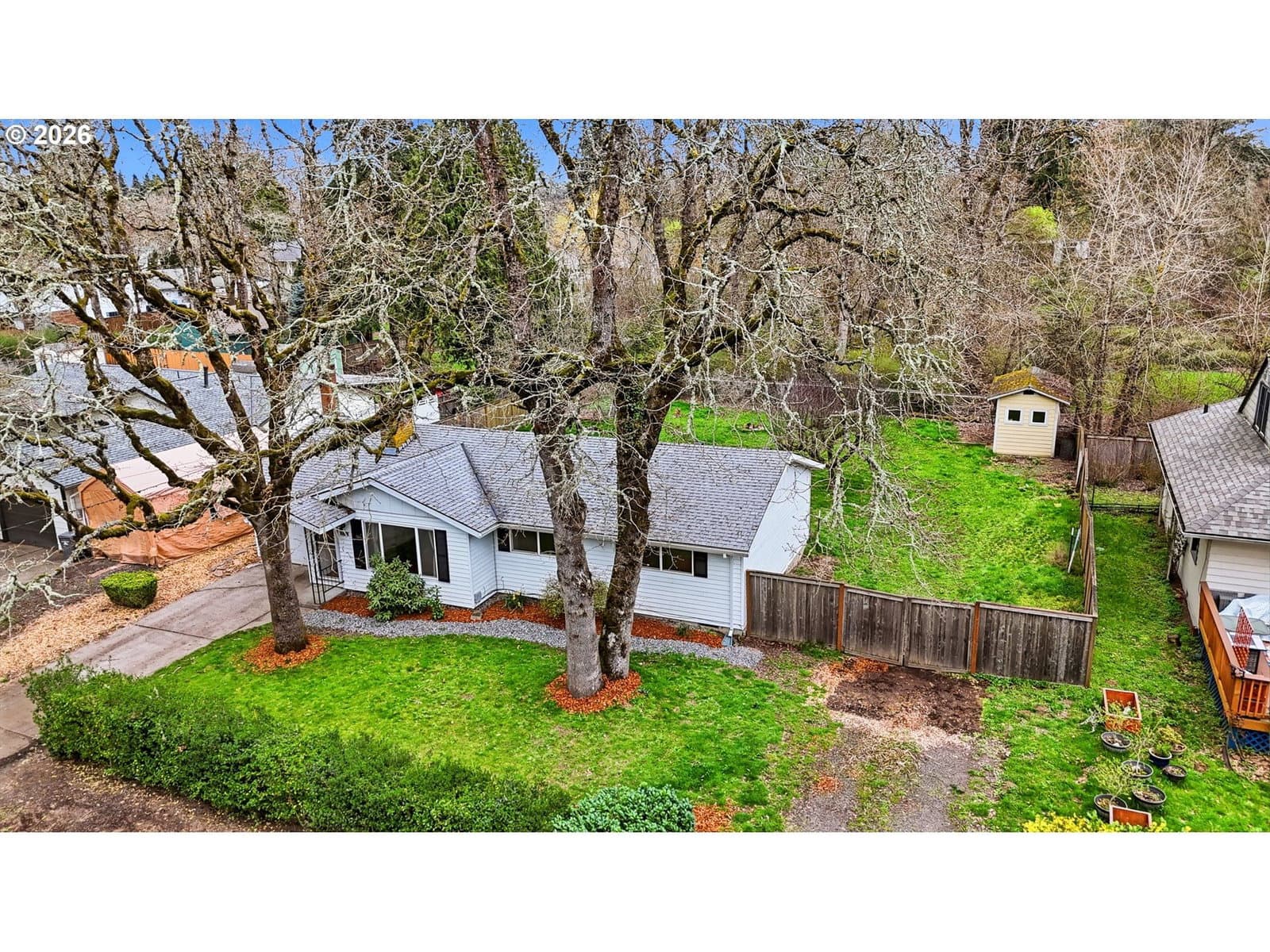 Here is the house that nature embraces! With the backyard abutting a protected green belt, the iconic oak trees of Oak Grove in the front yard, while all on a quiet street, the natural world comes alive. Bring your binoculars for the birds! This is single level living at it's finest, with an updated open concept kitchen to living room, two full bathrooms, three bedrooms, and ample garage space. Natural light fills the rooms in this 1964 ranch. With over a 1/4 acre you also have space for RV or boat parking. In the large backyard, you have an apple, fig and crabapple tree, and enough room for garden beds, or ADU possibilities. Some systems features like a newer water heater, and a well maintained furnace from 2016 gives you a peace of mind. Mere blocks away from the Willamette River, the Trolly trail, and close to downtown Milwaukie and the Max, the location can't be beat. Come see for your self! (Buyer to do their own due diligence regarding ADU accessibility).
