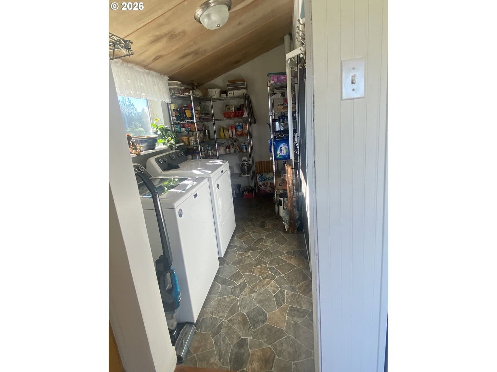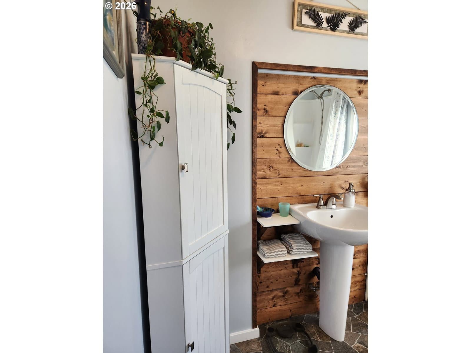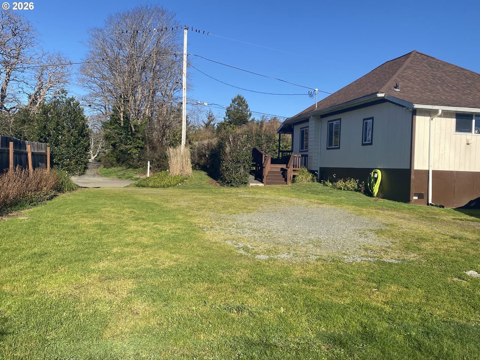 Cozy, solid older home that feels roomier than square footage indicates. House can be purchased fully furnished down to yard tools, cookware/dishes and even bed linens for the right offer! Lots of parking plus room for a camp trailer or RV, just minutes from downtown Coos Bay and ocean beaches. House has newer vinyl windows and sliding glass door, newly resurfaced original wood floors, and is bright and airy with 8 1/2 foot ceilings in most rooms. There is fresh paint throughout, a walk-in pantry/laundry area off the kitchen, and two built-in window seats (one lifts for storage). Heat pump is well maintained and works great. Electric panel and roof are both less than 10 years old. Large backyard is private and fenced with additionally fenced 70’ x 25‘ garden space. Yard has great sun exposure with view of mountains/trees on three sides and newly planted shrubs and perennials to add lots of color in the spring and summer. Property has newer large 12’ x 16‘ storage shed that is mostly insulated, a 4’ x 8’ storage shed and a smaller shed adjacent to the garden for lawnmower and yard tools. Range, refrigerator, washer and dryer and newer yard swing included.