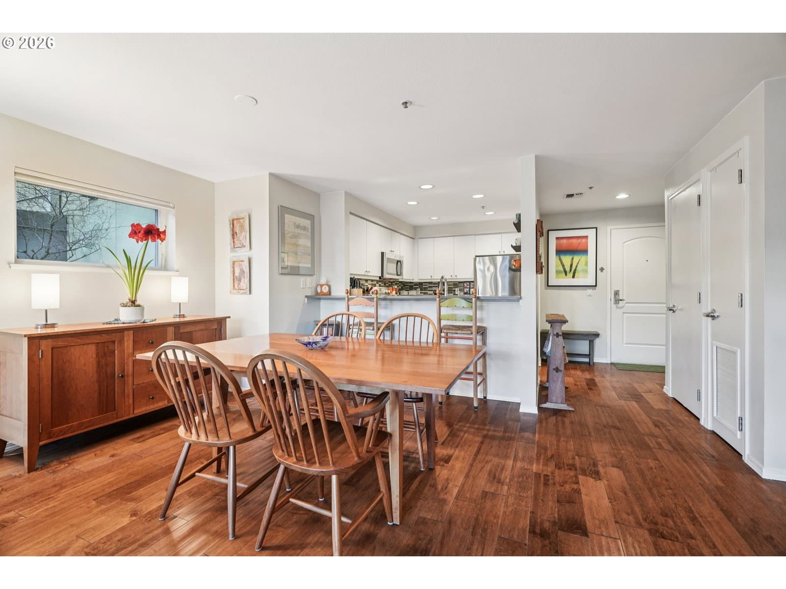 Welcome home! This one bedroom, move-in ready condo lives large in the sought-after Irvington neighborhood! Updated kitchen with quartz countertops, tiled backsplash, eat-in bar, and stainless steel appliances opens to the spacious living and dining area with large windows to bring in the light. French doors open to the large, oversized terrace that offers both covered and sunshine-filled spaces ideal for gardening, reading a good book, or enjoying your morning lattes. The generous-sized bedroom includes a walk-in closet and access to the terrace. Pass the stackable W/D closet on your way to the large, updated bathroom with tiled walk-in shower and dual vanities. Includes assigned parking in secured garage and a separate storage unit in a secured building in the heart of NE Portland. Steps to restaurants, shops, cafes, grocery stores, with transit access right outside your door. Don't miss this opportunity, schedule a showing today!