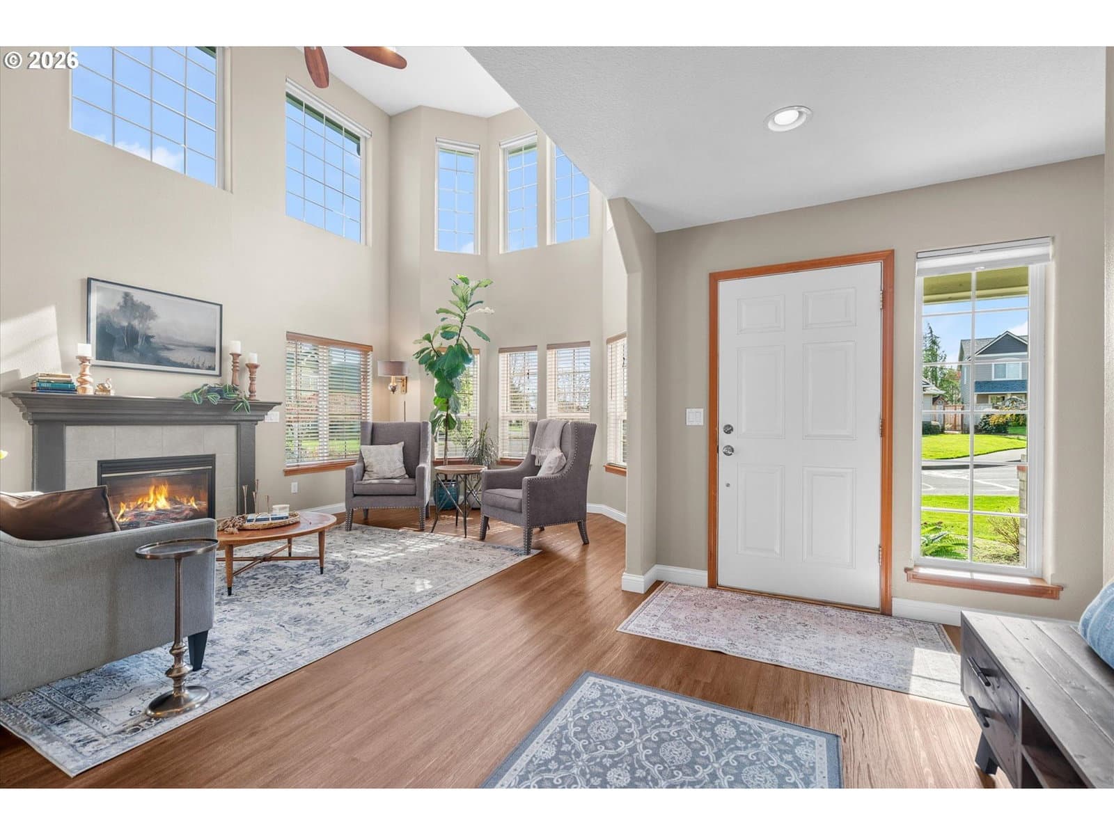 Beautiful, unique 3 bedroom, 2.5 bath home tucked back into La Center's fabulous Southview Heights neighborhood. Dramatic high ceilings and picture windows flood the living areas with light. The massive .27 acre yard, on a cul-de-sac, features raised garden beds, beautiful mature landscaping, and large shed! With new quartz countertops and ss appliances, new HVAC, and newer paint, this home is move in ready! Walk to Heritage Park and Breeze Creek trail. Minutes from I-5, Ilani, and excellent schools.