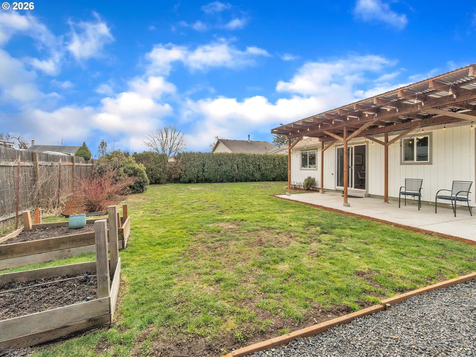 This fresh and inviting one-level home offers easy, comfortable living, with mornings spent on the new covered back patio, working in the raised garden beds, or gathering with friends in the spacious backyard, where there is room to relax, play, or expand. Fresh interior and exterior paint, painted white cabinets, updated lighting, and all-new appliances give the home a bright, move-in-ready feel. A large utility room provides great functionality with a full-sized pantry, plenty of storage, and an included washer/dryer. The oversized bathroom with a step-in shower also includes extra built-in storage. Perfectly located in McMinnville, a community known for its friendly feel and lively downtown, you can enjoy twinkle-lit evenings on 3rd Street, farm-to-table dining, local shops, and nearby parks. Located just blocks from two of McMinnville’s best parks and minutes from Linfield University, the surrounding area offers a great mix of convenience and comfort. A great opportunity for investors, first-time buyers, or anyone seeking easy, low-maintenance living. With strong rental potential and an affordable price of $399,500, this home is move-in ready.