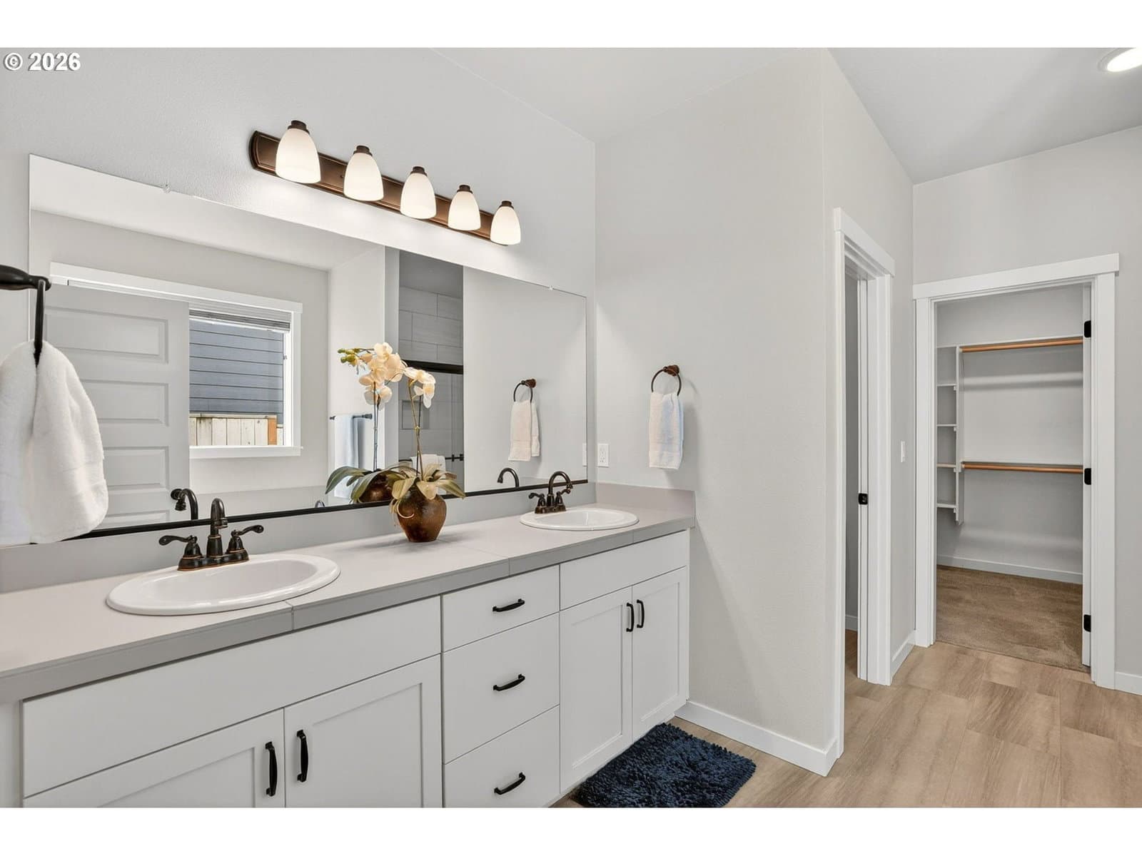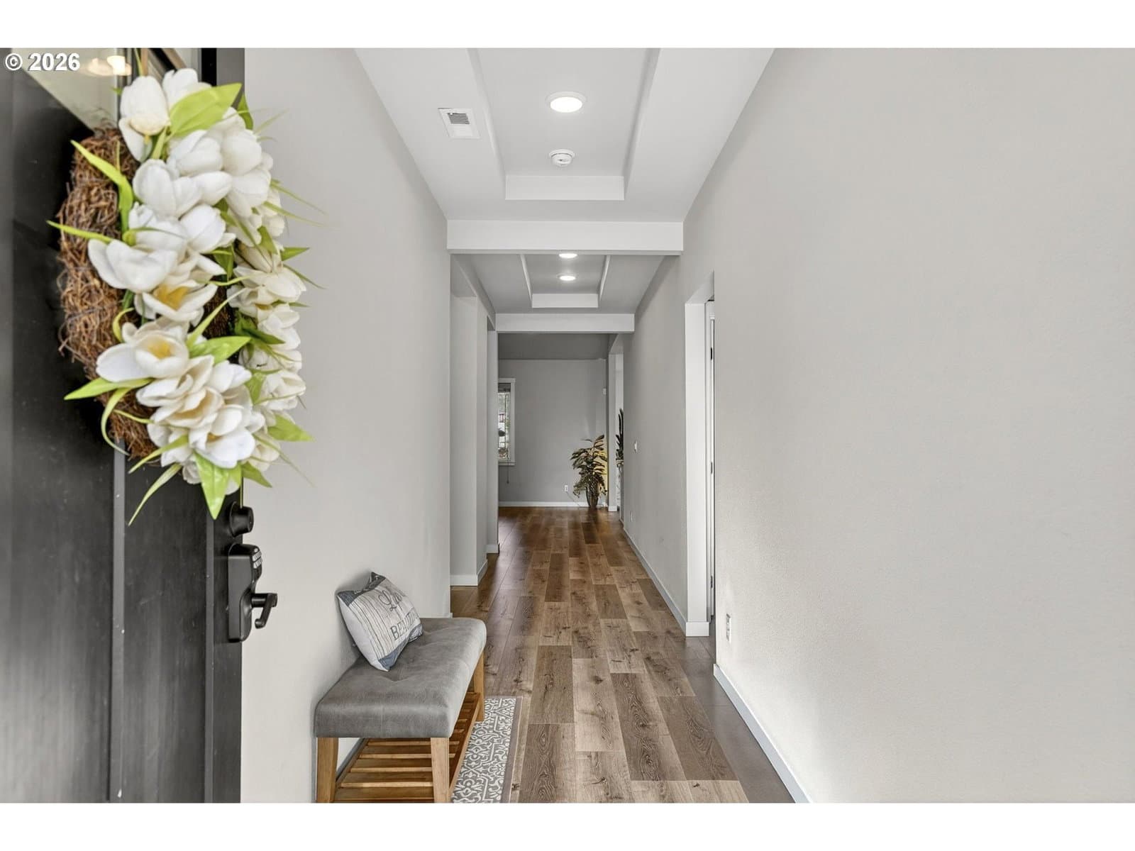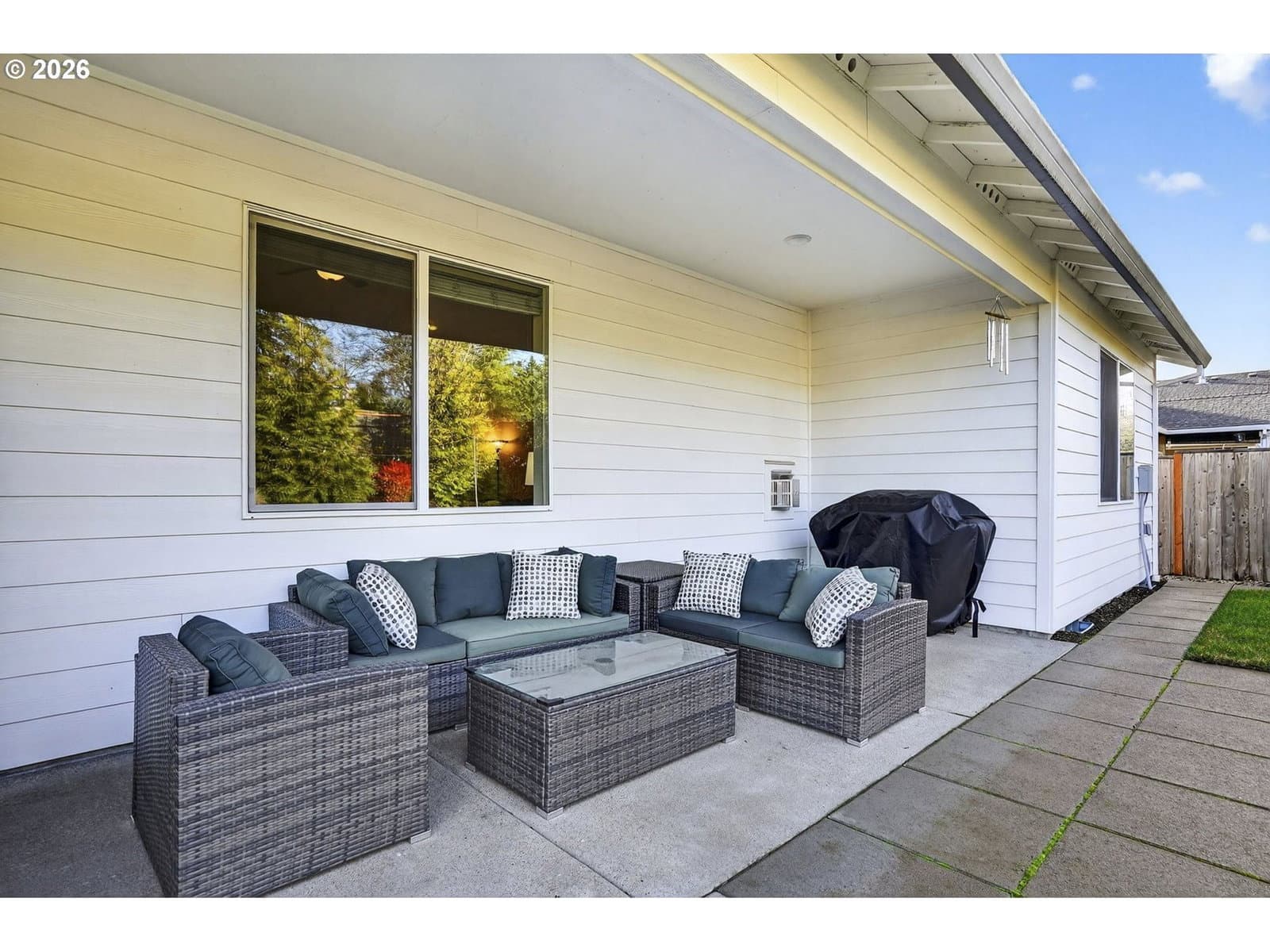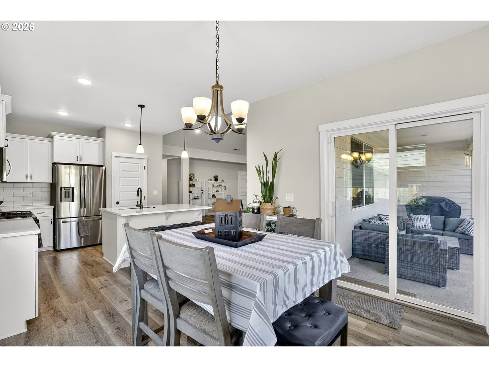 This beautiful home in East Newberg is better than new construction! It's been gently lived in and has a fabulous backyard that's private and backs to Oxburg Lake Estates. The large, welcoming entry features a stylish ceiling with recessed lighting that leads to a Great Room floor plan you'll love that includes the primary bedroom on the opposite side of the house from the other two bedrooms. All the rooms are spacious and the open living concept is perfect for entertaining or just relaxing. You'll find beautiful luxury vinyl plank flooring throughout the entry, Great Room, kitchen, dining area, baths, and laundry room. The Great Room features a vaulted ceiling, gas fireplace, and large windows looking out to the private back yard. The kitchen has the perfect setup with the sink in the island, quartz counters, stainless appliances, and a walk-in pantry. The large primary bedroom is also vaulted with a beautiful en-suite bath and a 6' X 15' walk-in closet. The icing on the cake is the fabulous, private, low-maintenance back yard that includes a beautiful retaining wall, expansive covered patio, separate covered hot tub (meticulously maintained!), a sandbox that could be a raised bed, and a very nice fire pit. There's also a bonus exercise common area across the street designed for adults that's part of the HOA! Welcome home!