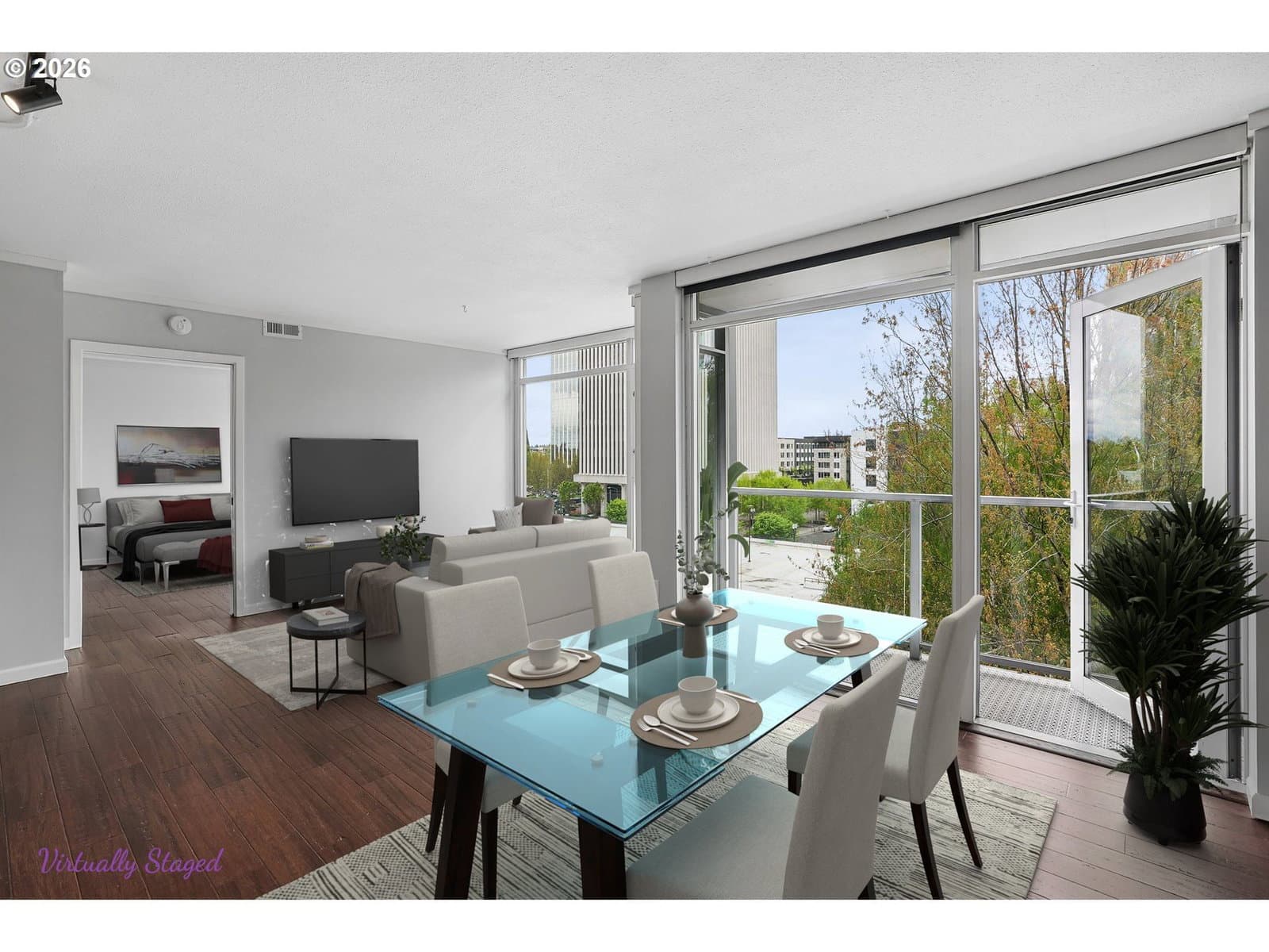 Light and bright 1-bedroom corner unit on 7th floor of Cascadian Court Condos in Portland's Lloyd Center. Unit 701 has floor-to-ceiling windows, new kitchen appliances, butcher block counter, tiled backsplash, newer HVAC, washer/dryer, bedroom closet built-ins. The condos at Cascadian Court are part of a modern mid-rise building with secure entry, and a shared courtyard. Located in the Lloyd District, the property offers excellent walkability and transit access, with restaurants, shopping, and entertainment all close by. Healthy HOA that covers water, sewer, trash, internet, cable tv, maintanance, management.