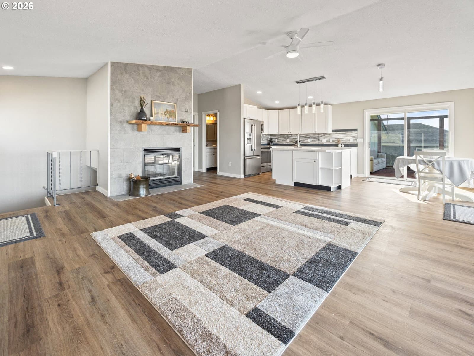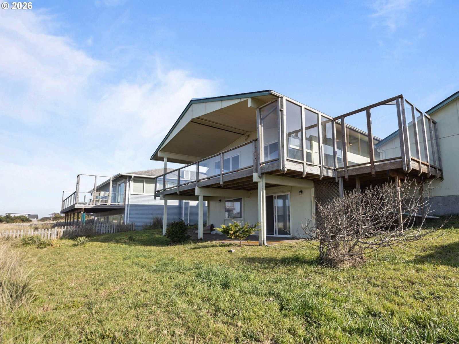 Welcome home to breathtaking ocean views and the best of coastal living. A wrap-around deck invites year-round enjoyment, perfectly framing this beautifully refreshed 3-bedroom, 2-bath home. The newly updated kitchen opens to the great room, where expansive windows capture sweeping ocean vistas and fill the home with natural light. Spend your evenings cozied up by the fireplace in the living room. Thoughtful upgrades throughout include a newly updated kitchen with stainless steel appliances, laminate flooring and plush carpet, showers in all bathrooms, fresh interior paint, lighting, and a custom-designed laundry room with built-in storage.The lower level features a private bedroom with walk-out patio access, a bathroom with a walk-in shower, a quiet office, and a living room anchored by a second fireplace. New roof installed on the home in 2026. Just one block from the beach, this home delivers sought-after ocean-view living with plenty of space.