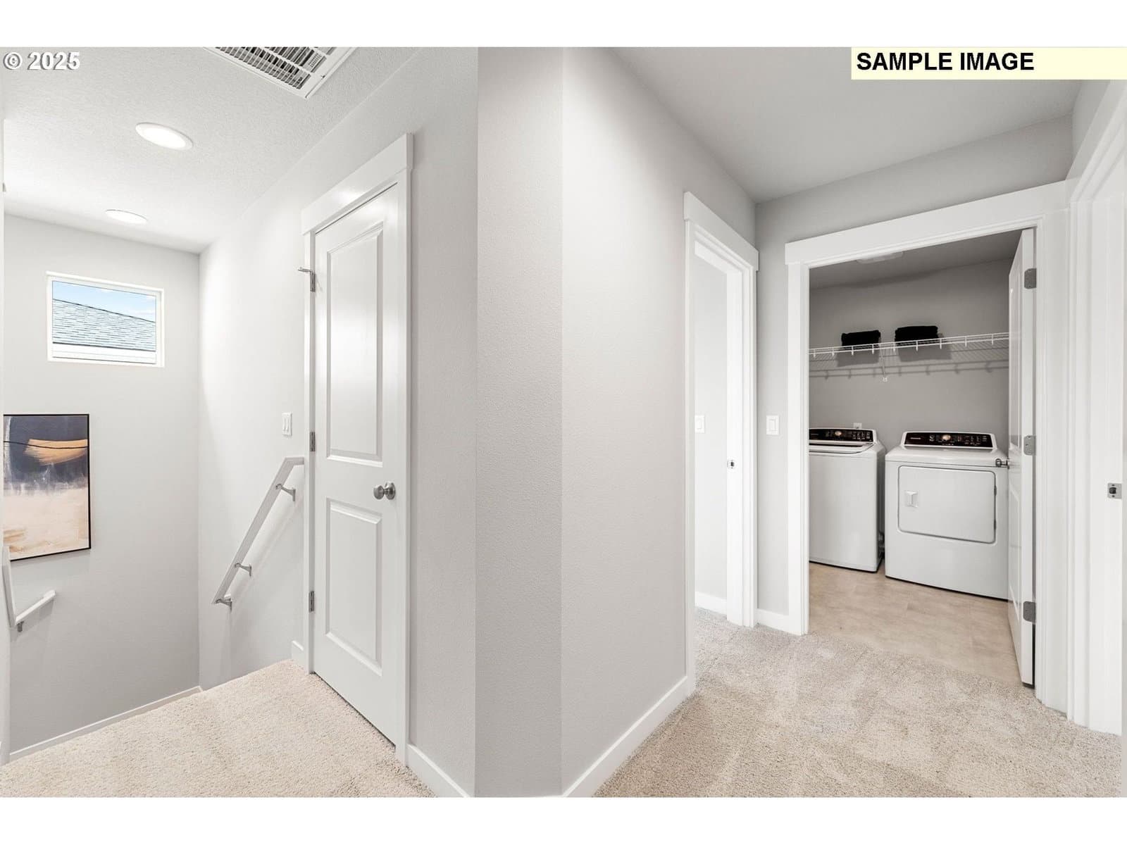 Welcome home to Ramble Creek, a new community in a pristine wooded setting with walking trails, parks, a playground, creek and tall trees, all within easy access to I-5 and I-205. This home features 3 bedrooms, 2.5 bathrooms, upstairs laundry room, and a 2-car garage. Standard features include A/C, forced air heating, triple paned windows, gas range cooking, dishwasher and microwave, pantry, beautiful trim work, 9 ft ceilings on main floor with 8 foot doors, walk in primary closet, landscaped front yard with irrigation, prewired for EV charger and solar, and a fully fenced backyard. Upgrades include quartz countertops in kitchen and bathrooms, full tile backsplash from counter to cabinets, windowsills, gas fireplace. Photos are examples from model homes. Call today for a tour! Set your GPS to Ramble Creek 4519 NE 183rd Street Vancouver, WA 98686