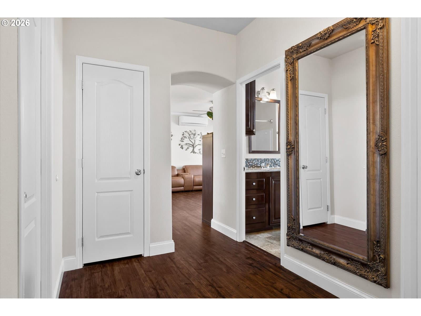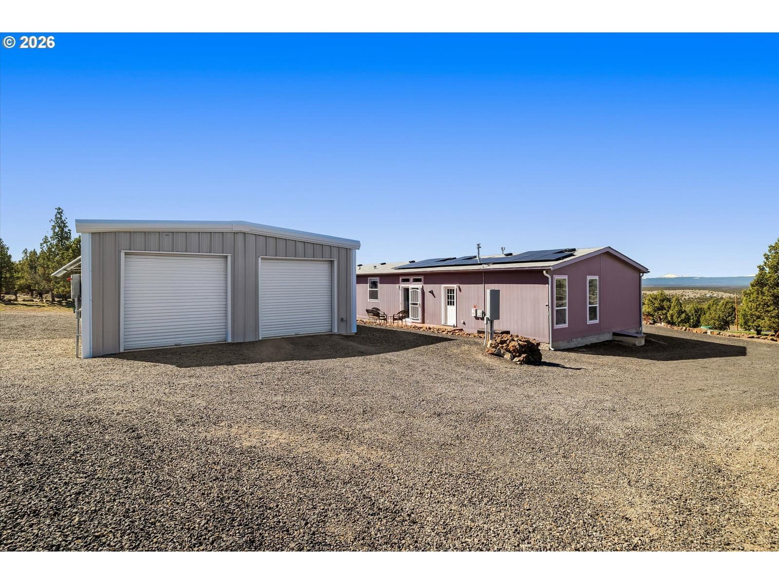 1.82 private acres with panoramic Cascade Mountain views! This 2,100 sqft home offers ON-OR-Off grid living! Excellent self sufficiency and homestead potential. Featuring 4 bedrooms and 2 bathrooms with double sinks and a spacious open layout. The primary suite includes a private porch, walk through closet, and ensuite bath with 6' jetted tub. The kitchen features granite countertops, farmhouse sink, island, gas cooktop, and built in wall oven with a propane fireplace. 3 porches provide relaxing outdoor spaces. Designed with sustainability in mind, the property includes a 13.175 kW solar system with 11kWh battery backup, 2 high efficiency mini splits, propane and an EV outlet. 24' x 41' insulated shop with electricity. Even a greenhouse, insulated shed with 220V, pump house with storage, and 3 fenced animal areas including a chicken coop, turkey habitat, and small barn with a run.