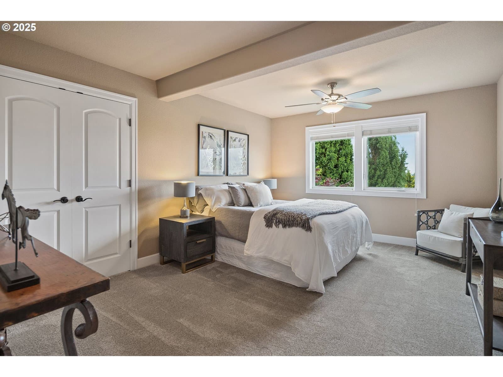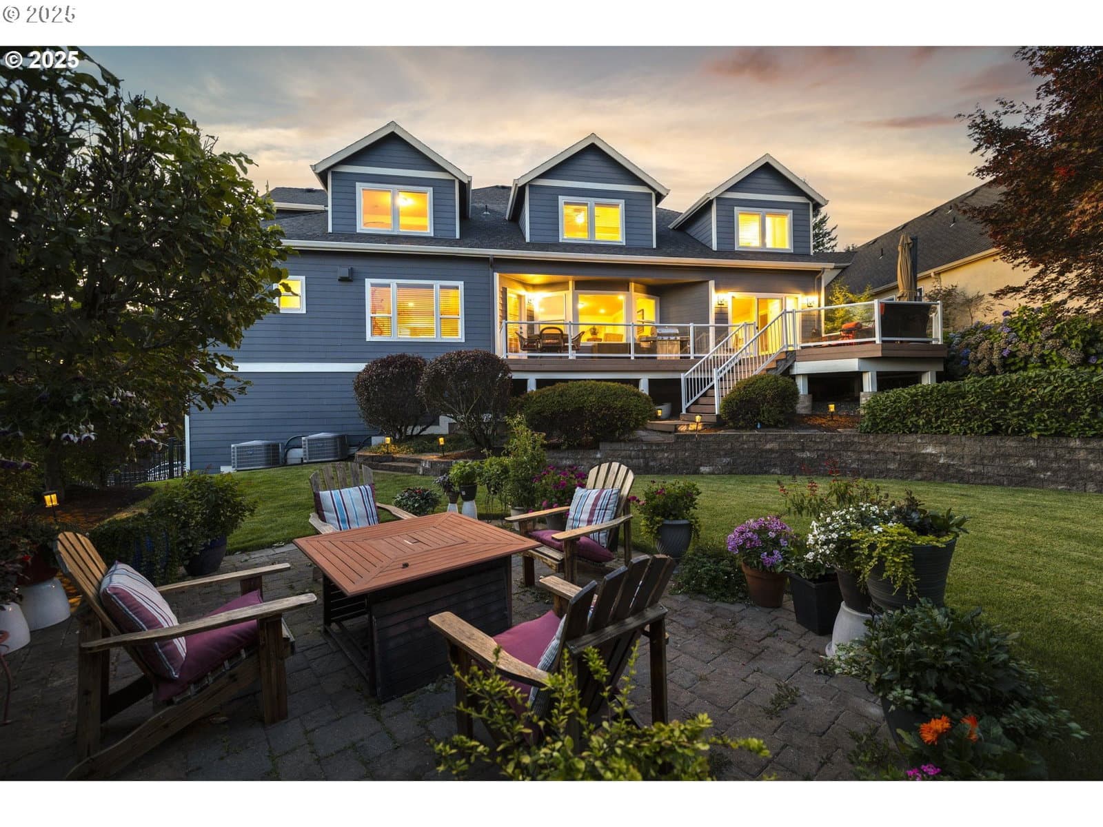 Set on a rare flat lot in prestigious Grand Ridge, this Cape Cod inspired custom home blends timeless craftsmanship with fresh updates, including a new roof, new carpet, new refinished hardwoods, and fresh paint. Rooms showcase 180° views of the Columbia River, surrounding landscapes, and Portland’s sparkling skyline—a daily backdrop of shifting skies by day and twinkling city lights by night. Inside, nearly 5,000 sq. ft. of elegant living includes Brazilian cherry floors, crown molding, and custom built-ins throughout. The gourmet kitchen features Sub-Zero, Dacor, and Bosch appliances, slab granite counters, and a large island with seating for eight. The main-level primary suite offers a spa-inspired retreat with a walk-in closet connected to laundry, while an additional upstairs suite provides flexibility for guests or multi-generational living. Work-from-home convenience shines with a main-level office, and the oversized three-car garage adds abundant storage and a workbench. Outside, the flat, fenced backyard is a rare find—landscaped, private, and perfect for entertaining, kids, and pets. Built in 2007 and refreshed for today, this home offers luxury, livability, and panoramic views in one of Camas’s most desirable neighborhoods, close to top-rated schools, Lacamas Lake, downtown Camas, and PDX Airport.