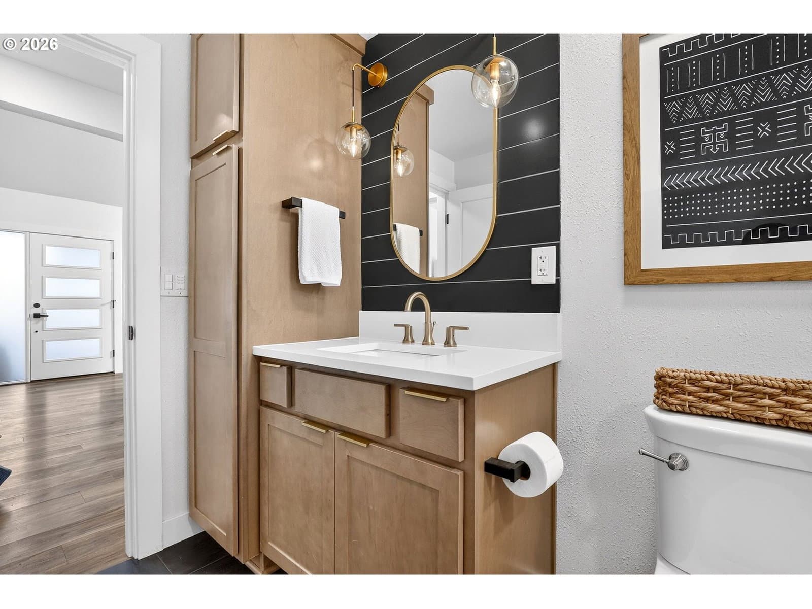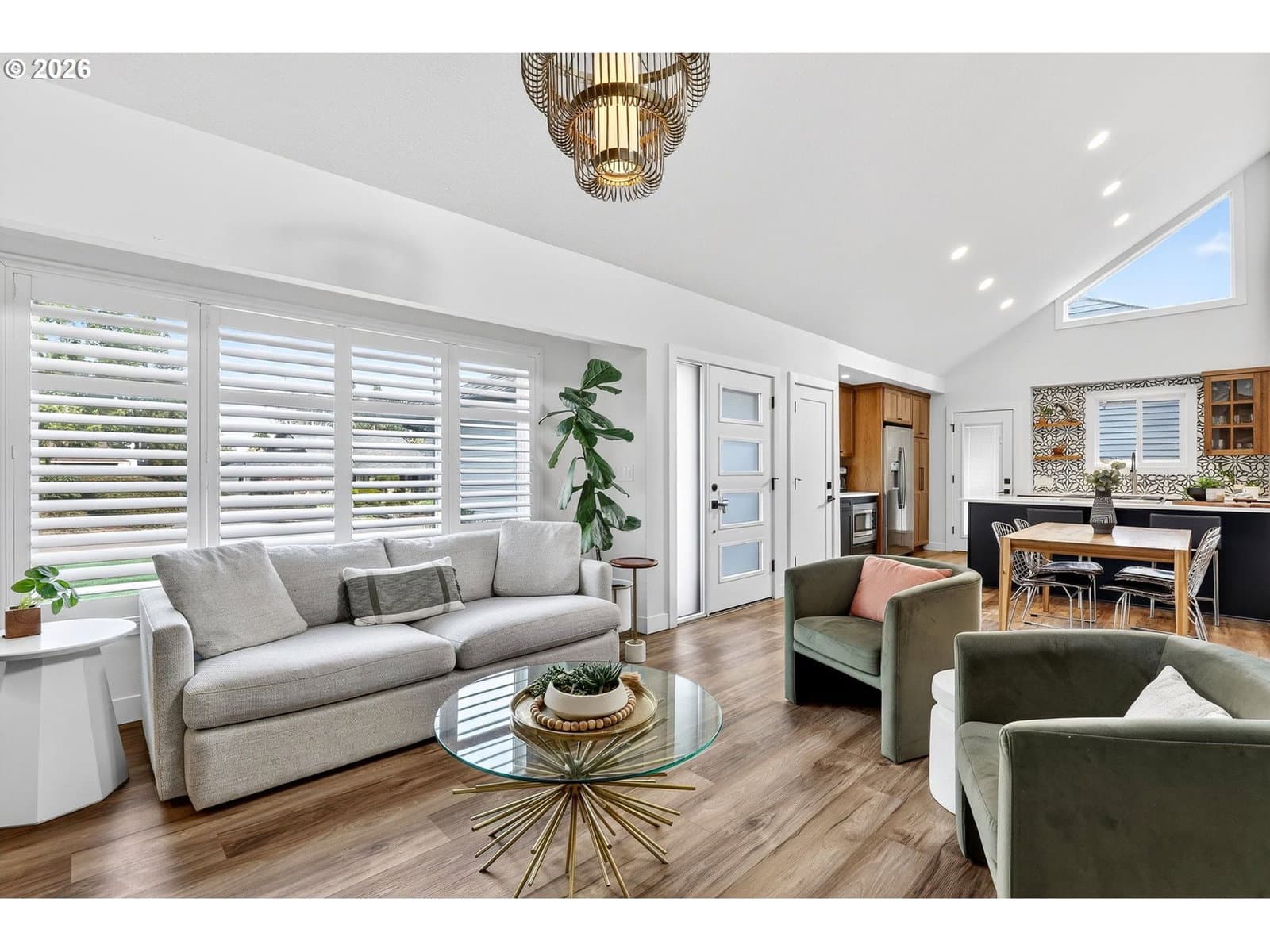 Tucked away on a quiet cul-de-sac in a highly desirable Tigard neighborhood and located within the sought-after Southridge High School district, this beautifully updated contemporary home offers the perfect blend of modern design, natural light, and everyday comfort—just walking distance to Summerlake Park.Step inside to a dramatic great room featuring soaring vaulted ceilings, expansive windows, and a stunning floor-to-ceiling fireplace that creates an inviting focal point for the living space. Black walnut luxury vinyl plank (LVP) flooring flows throughout the main living areas, offering both durability and a warm, modern aesthetic.The fully remodeled kitchen is a standout feature, showcasing quartz countertops, custom cabinetry, stainless steel appliances, and a striking designer tile backsplash. A large island with a built-in cooktop provides the perfect gathering space for entertaining, cooking, and everyday living.Upstairs, a bright and versatile loft space filled with natural light offers flexibility for a home office, media room, or creative studio. Skylights and architectural angles enhance the open, airy feel, while the modern stair railing adds to the home’s contemporary style. The home also includes an attic space that provides additional storage or flexible use potential.The spacious primary suite offers a relaxing retreat with updated finishes and a beautifully refreshed bathroom. Additional bedrooms provide comfortable space for guests, family, or work-from-home needs.Outside, enjoy a private backyard ideal for entertaining, gardening, or relaxing. The quiet cul-de-sac location offers privacy while still being conveniently close to parks, shopping, dining, and major commuter routes.With thoughtful upgrades, stylish modern finishes, black walnut LVP flooring, and a prime location near Summerlake Park, this move-in-ready home is a rare opportunity in one of Tigard’s most desirable communities.?
