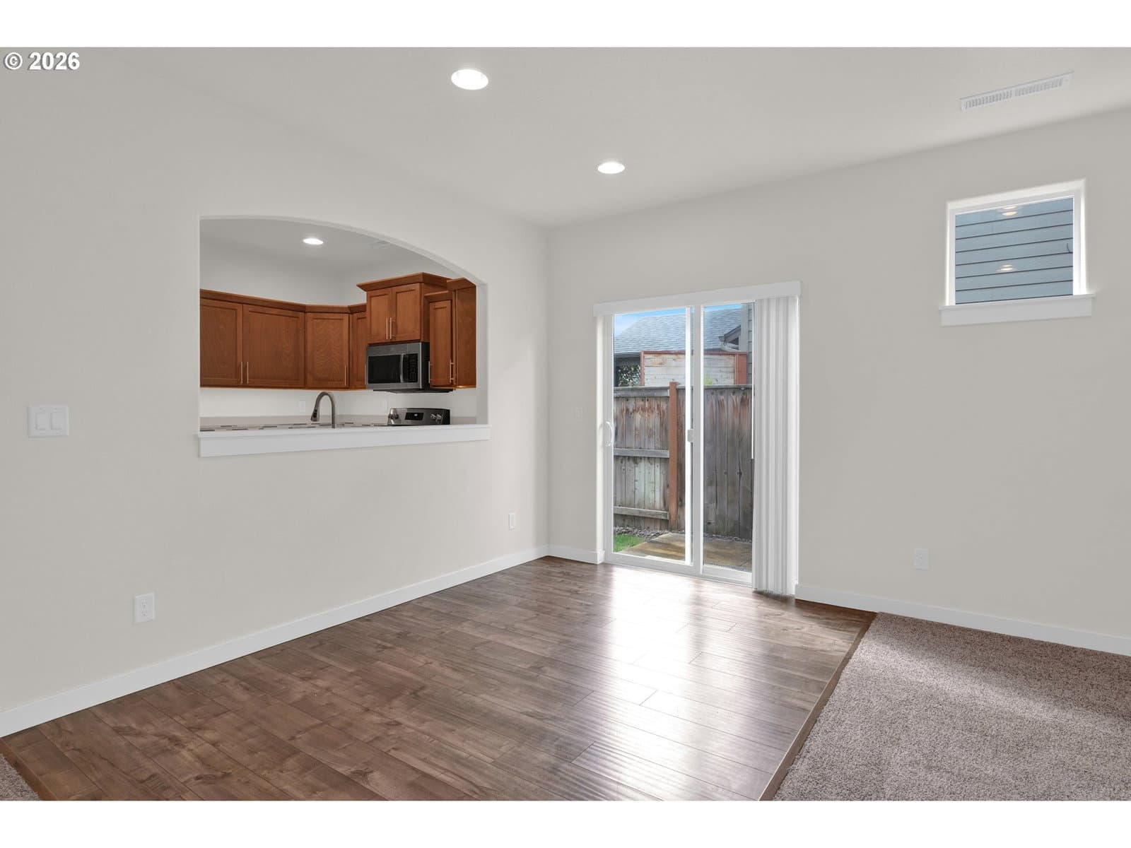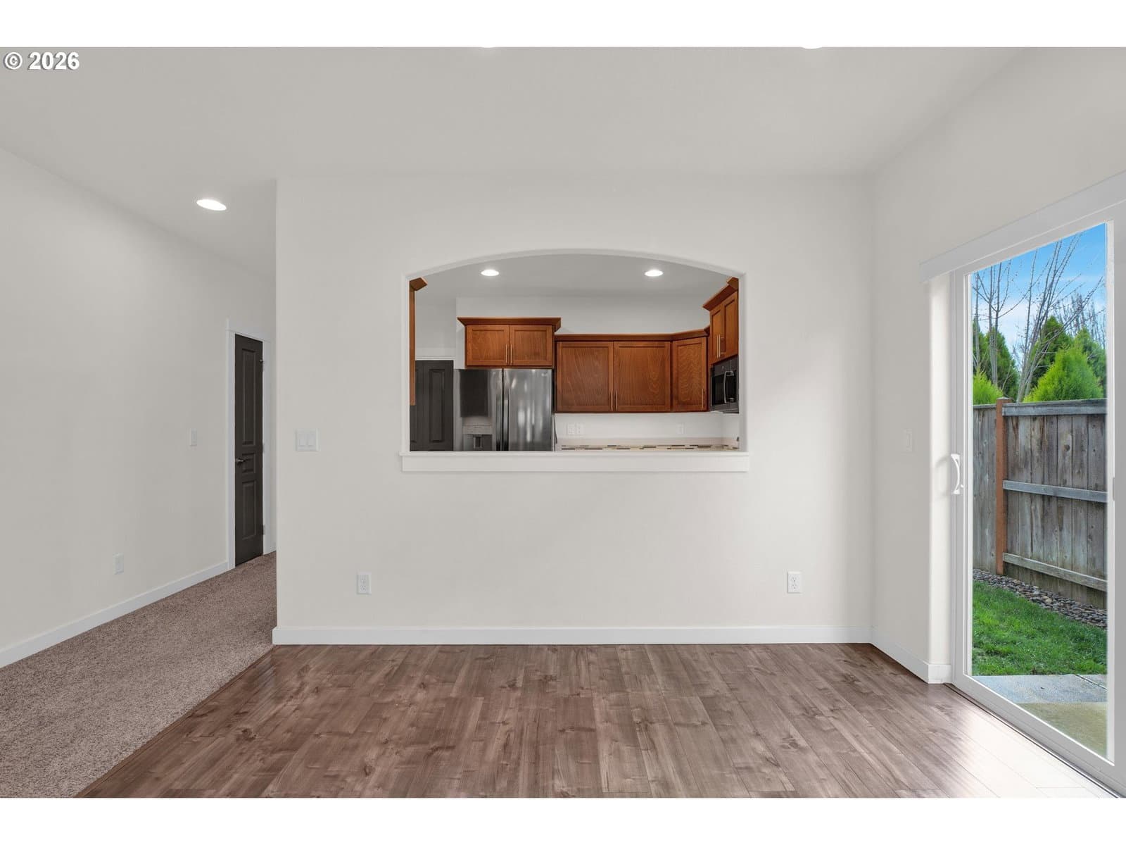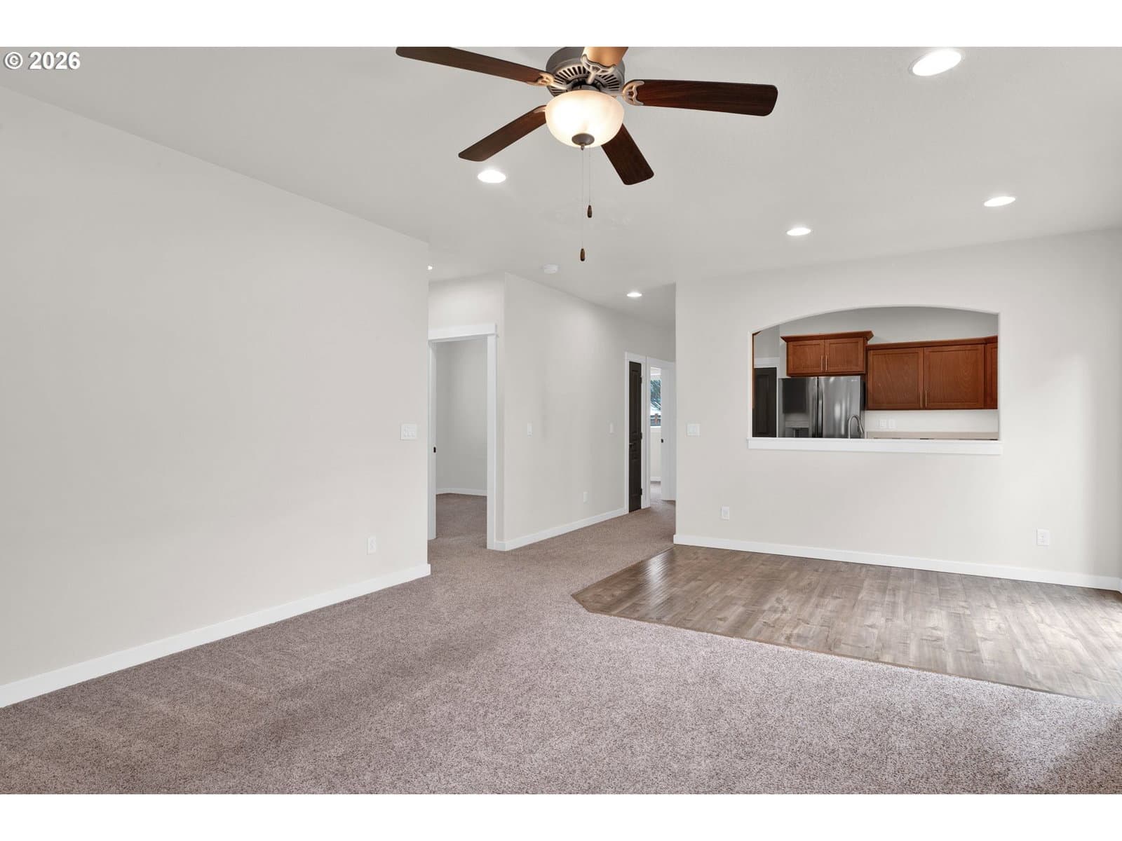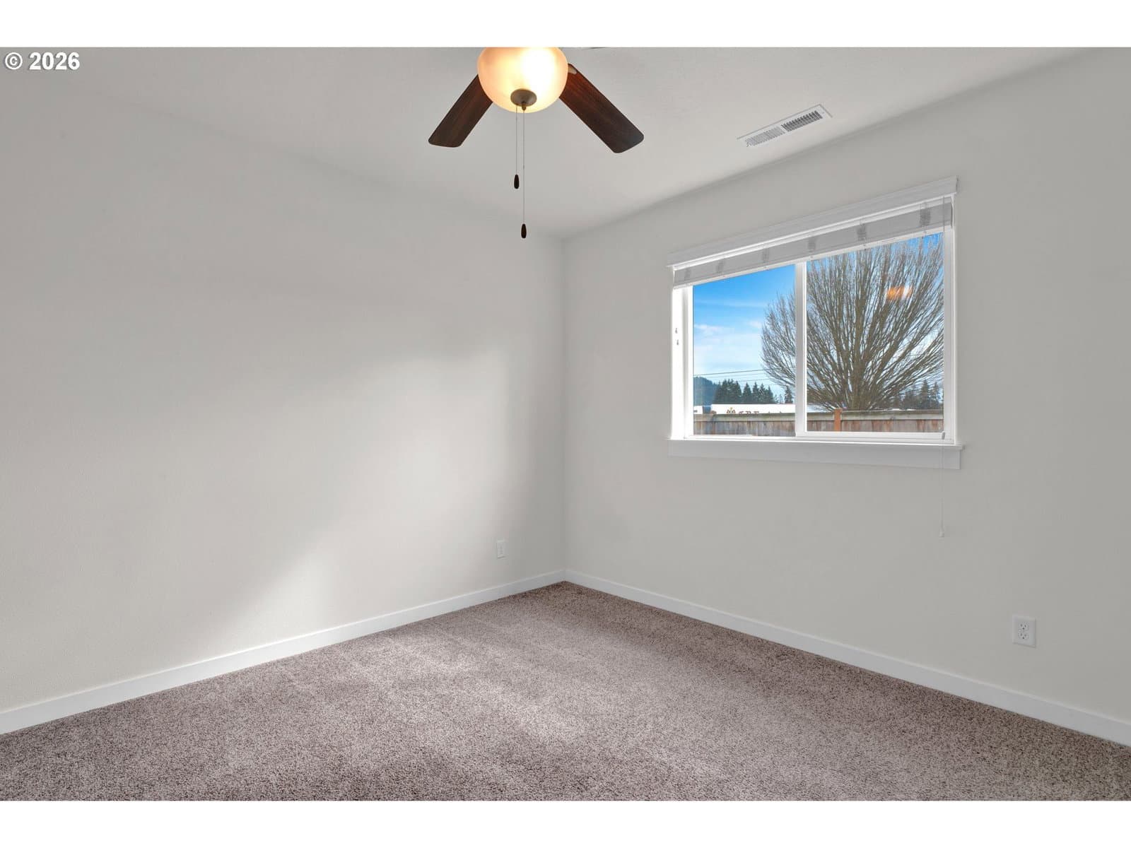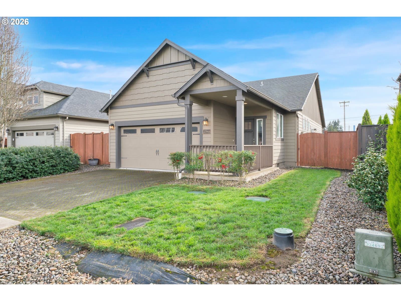 Nestled in the heart of the highly sought-after town of Coburg, this newer home offers the perfect blend of comfort and convenience. Just a few steps from a beautiful park, the charming covered front porch invites you into the tiled entryway. The spacious living room is upgraded with recessed lighting and a ceiling fan, creating a welcoming atmosphere. The dining room and kitchen feature low-maintenance laminate flooring, and custom blinds provide a polished look throughout. The kitchen has stunning quartz countertops, a stylish tile backsplash, stainless steel appliances, and a convenient pantry. The primary bedroom boasts a ceiling fan and a luxurious private bath with a double vanity and a large walk-in closet. Enjoy year-round comfort with forced air heating and air conditioning. The backyard is designed for easy living with low-maintenance landscaping, a patio perfect for entertaining, and a fully fenced perimeter with a side yard entrance to the garage. Sprinklers in both the front and backyard make upkeep a breeze.