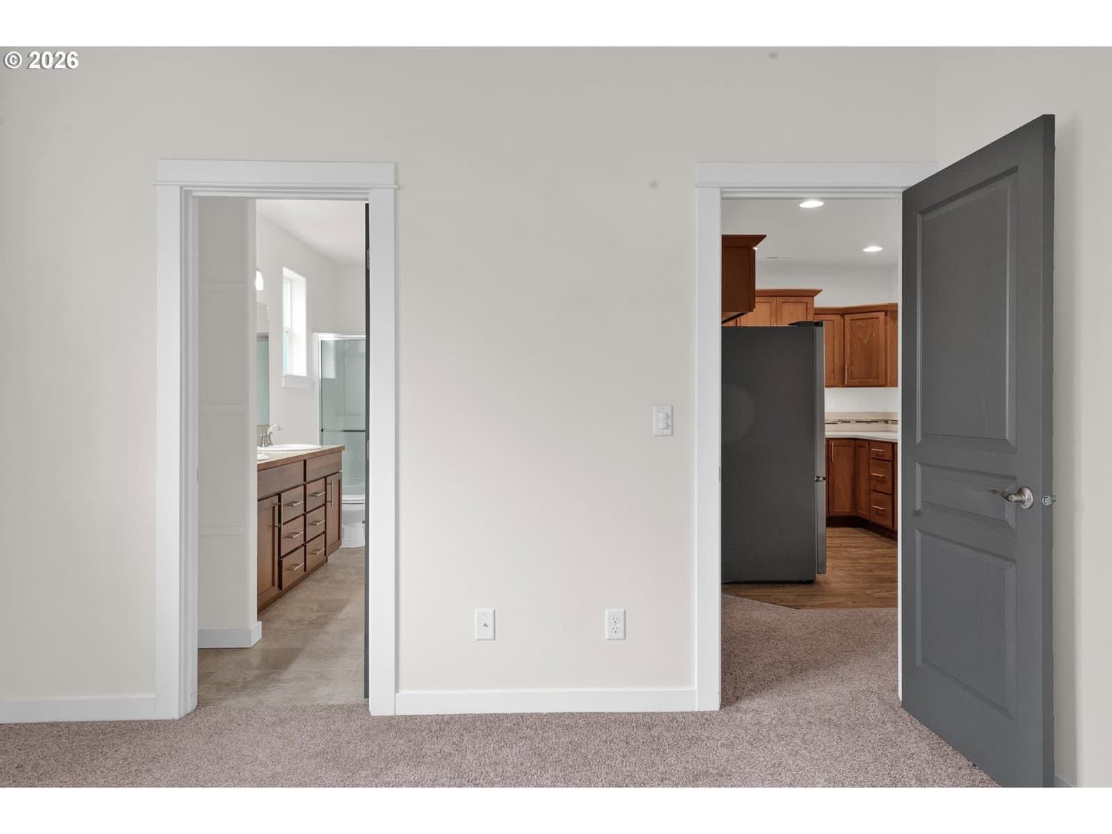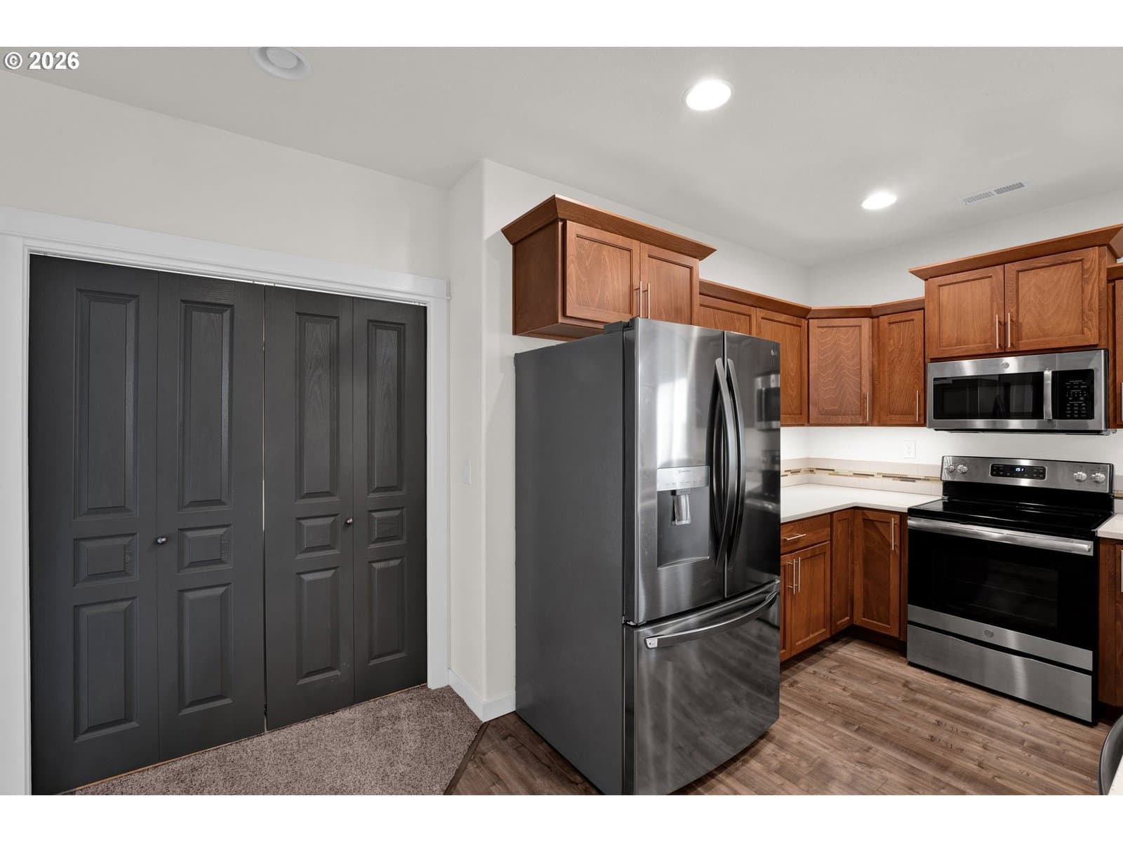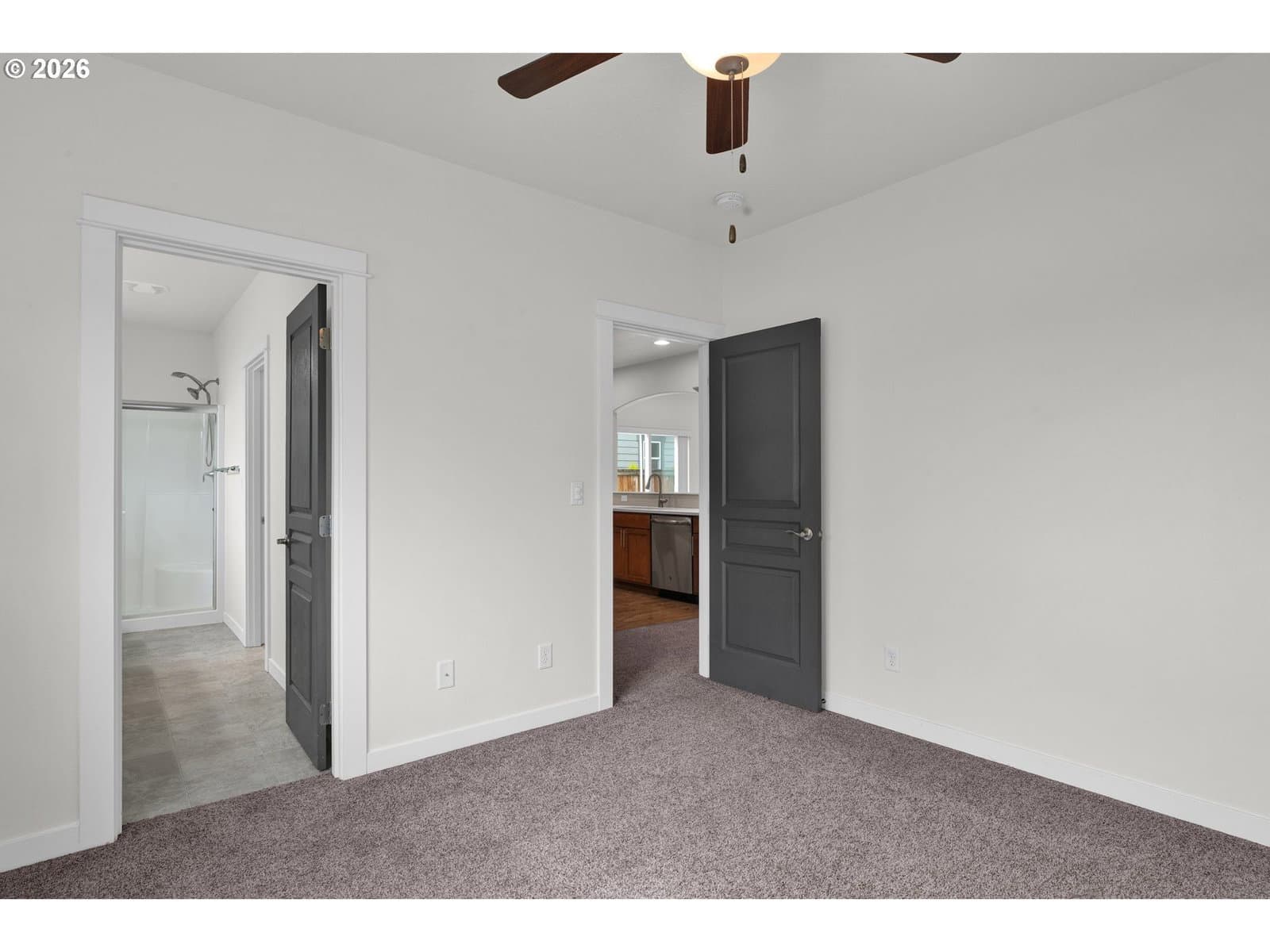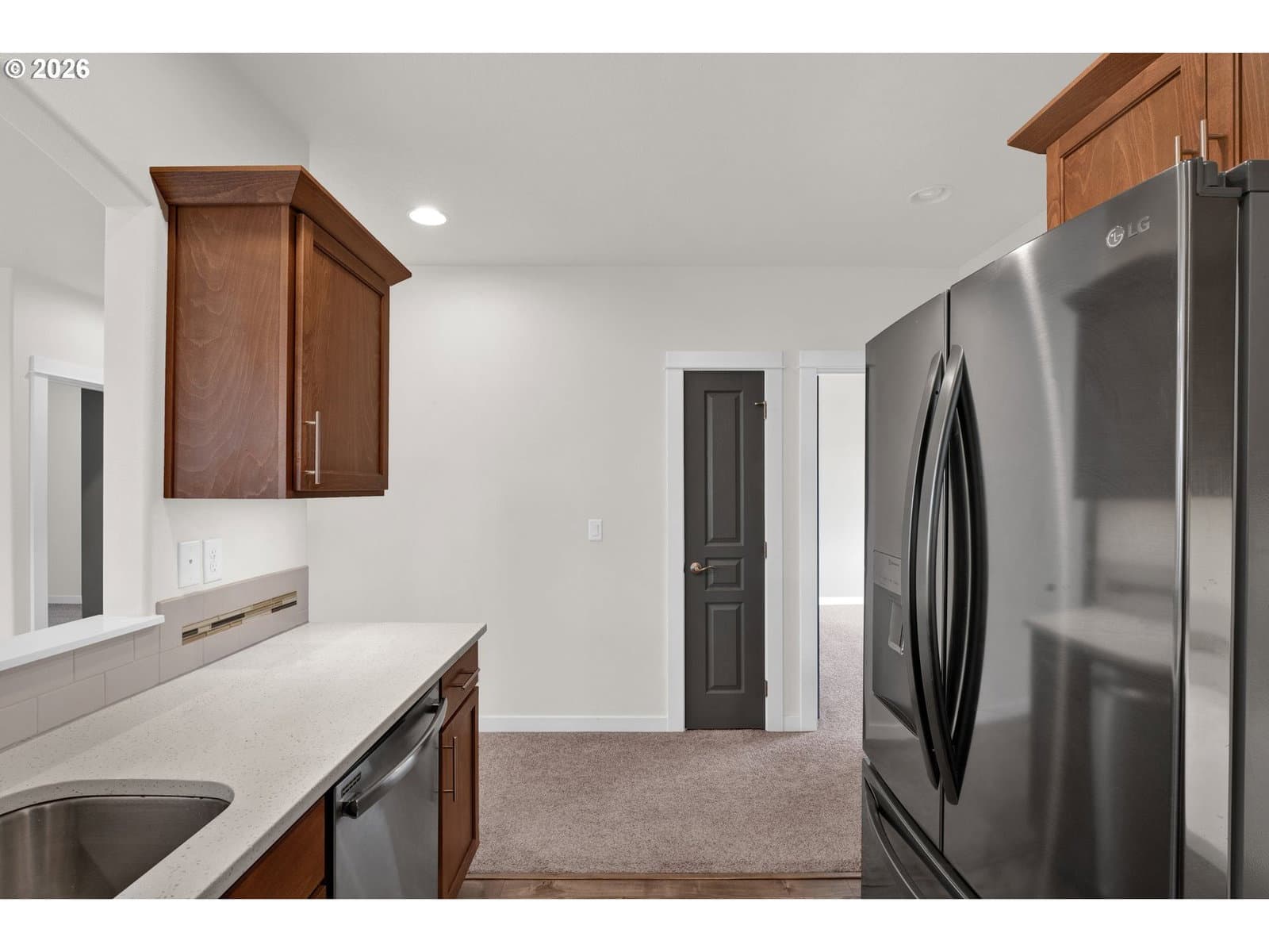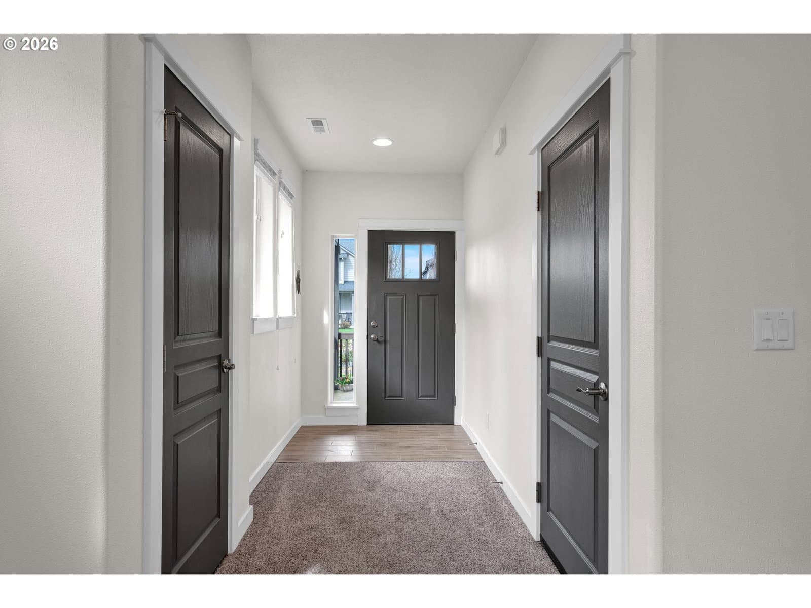 Nestled in the heart of the highly sought-after town of Coburg, this newer home offers the perfect blend of comfort and convenience. Just a few steps from a beautiful park, the charming covered front porch invites you into the tiled entryway. The spacious living room is upgraded with recessed lighting and a ceiling fan, creating a welcoming atmosphere. The dining room and kitchen feature low-maintenance laminate flooring, and custom blinds provide a polished look throughout. The kitchen has stunning quartz countertops, a stylish tile backsplash, stainless steel appliances, and a convenient pantry. The primary bedroom boasts a ceiling fan and a luxurious private bath with a double vanity and a large walk-in closet. Enjoy year-round comfort with forced air heating and air conditioning. The backyard is designed for easy living with low-maintenance landscaping, a patio perfect for entertaining, and a fully fenced perimeter with a side yard entrance to the garage. Sprinklers in both the front and backyard make upkeep a breeze.