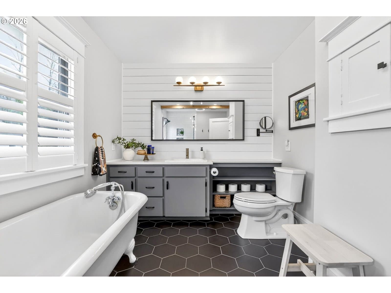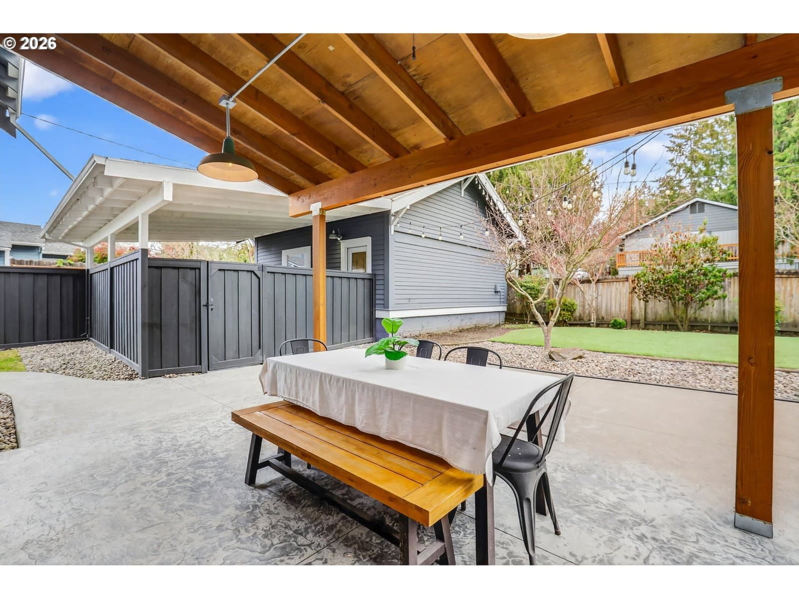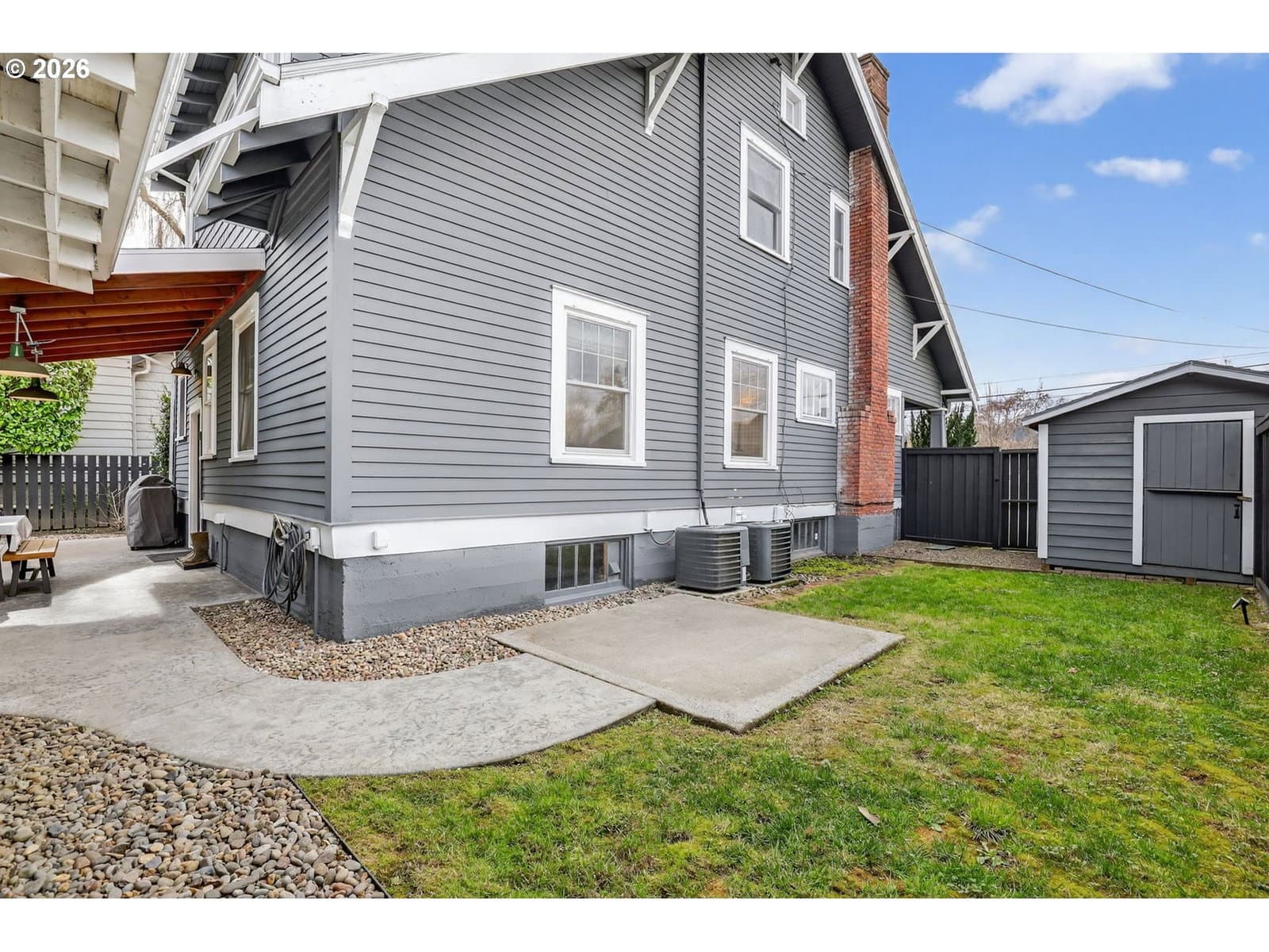 Step onto the welcoming front porch and immediately feel the timeless charm of this rare historic bungalow in Oregon City. Lovingly maintained over the years, this home reflects a true pride of ownership that is felt from the moment you arrive. Inside, natural light fills the living and dining rooms where a cozy woodstove creates a warm and inviting gathering space, perfect for relaxing at the end of the day or hosting friends and family. The beautifully updated kitchen has been thoughtfully designed with rich hickory cabinets, a farmhouse sink, and quality finishes throughout. It is a space that blends the character of the home’s era with modern function. Also included on the main level is a comfortable bedroom and an office that is ideal for working from home, hobbies, or a quiet retreat. Upstairs you will find three additional bedrooms with walk-in closets and an impressive bathroom featuring a walk-in shower, soaking tub, and heated floors. The dry basement provides excellent storage and flexibility. Outside, the property continues to impress with a detached garage and its own electric meter that is well suited for projects or a workshop. A carport and additional parking area offer plenty of space for guests. The fenced backyard and covered patio create a wonderful setting for summer evenings, outdoor dining, and relaxed entertaining. Located in the heart of the McLoughlin Historic District, this home is just a short stroll to the library, coffee shops, restaurants, and local shops in downtown Oregon City. A truly special home where history, comfort, and lifestyle come together. Come see it in person and fall in love.