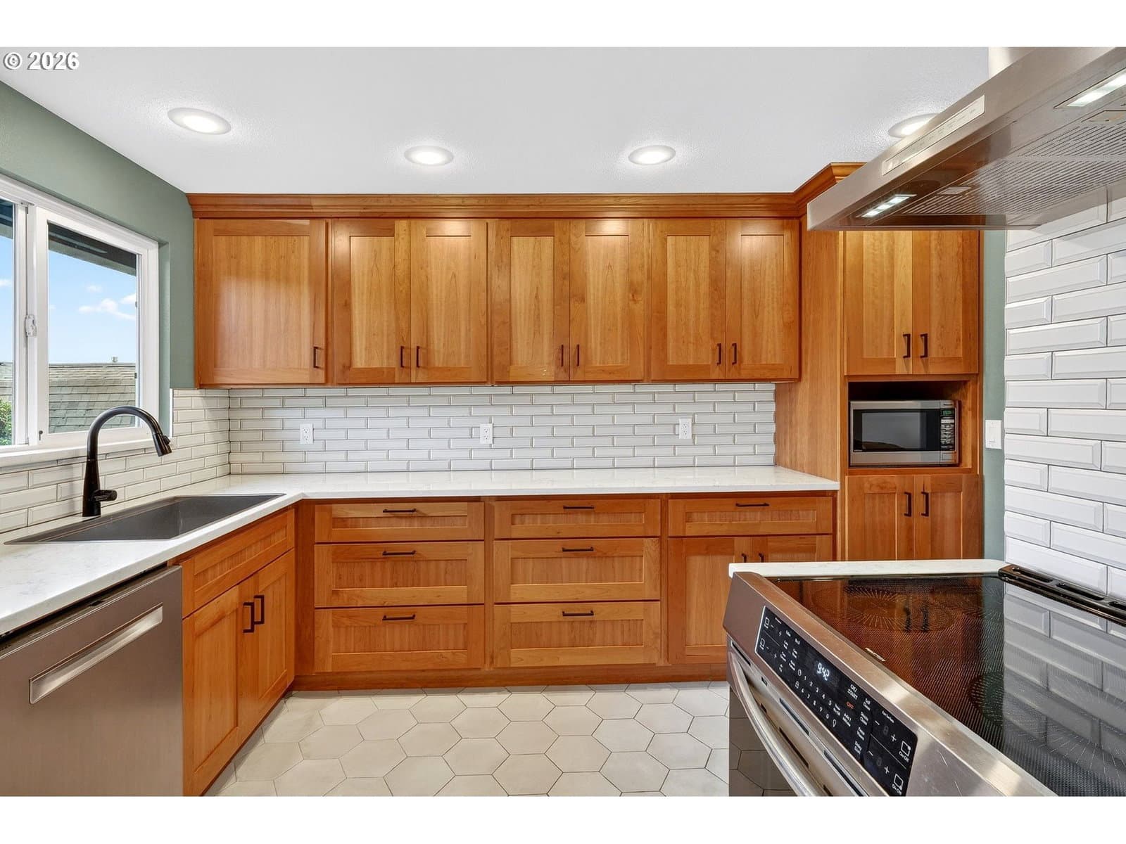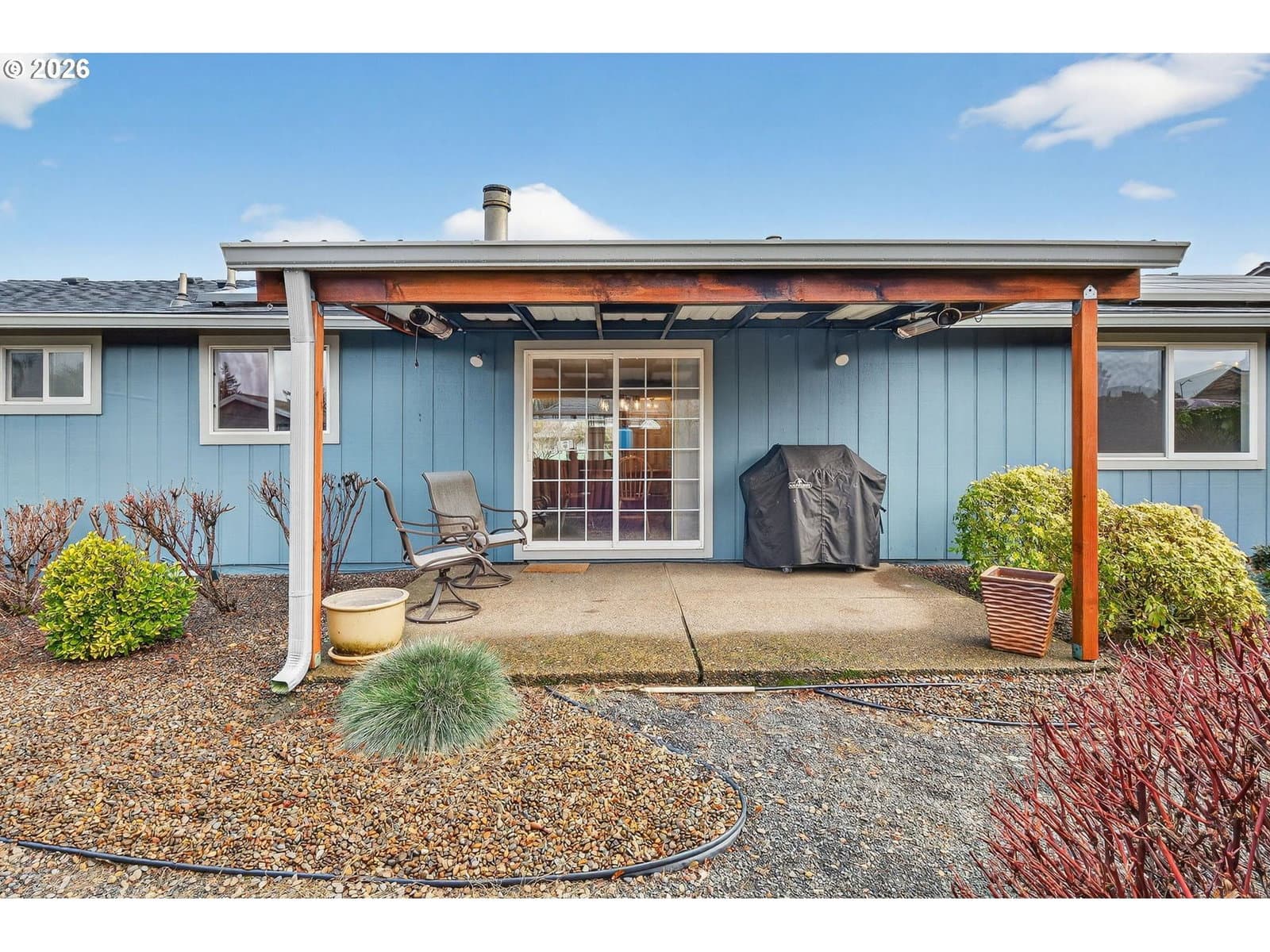 Pride of ownership abounds! Lovingly maintained! Beautifully remodeled! 1-level living at its finest! Inviting living room features a wrap-around woodburning fireplace for warm, cozy evenings while a huge bay window allows natural light to flood in during the day. Laminate flooring (pet proof, water proof, steam-cleanable, made in USA) throughout the living room, bedrooms and hallway. Tile floors anchor the kitchen, dining area and bathrooms. The remodeled kitchen is truly a standout - quartz counters, stainless steel appliances, electric range with induction cooktop, refrigerator with water and ice, tons of cabinets. A large sliding glass door blends indoor/outdoor living beautifully! The large family room has hickory hardwoods floors and provides the perfect flex space: relaxing retreat for weekend TV binges? romantic movie nights? work from home space? hobby room? endless possibilities! Outdoor living is just as impressive- fully fenced yard, a firepit with its own woodshed, a covered patio, spacious deck, bubbling rock fountain, small greenhouse with power and a storage shed. Major system updates over the past 3-5 years provide peace of mind - new gas water heater, new roof and gutters, new heat pump, new forced-air electric furnace, new driveway, and new exterior paint. Oversized 2-car garage (nearly a 3-car) includes a side door, an electric opener for one bay, freezer is included. The extra wide driveway provides extra parking for RV and weekend-warrior toys, or indulge your inner gardener and keep the raised beds. Solar panels keep monthly electric expenses affordable at an average of only $123(no additional monthly monetary expenses for the solar panels). This is a must see! A rare combination of thoughtful upgrades, efficiency, and usable space designed for comfortable and carefree living inside and out!