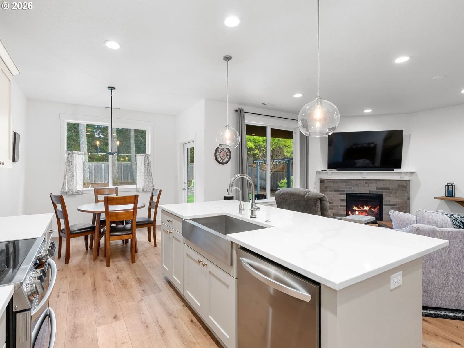 Highly sought-after Abernathy Landing single-level home! This 3-bedroom, 2-bathroom property offers an ideal layout and backs to serene green space for added privacy. Features include a spacious 3-car garage plus additional RV/toy parking. Recent updates include new flooring, fresh interior paint, and an updated kitchen with new countertops. Electrical is already in place for a hot tub. The yard has been professionally landscaped, and the property was previously approved by the HOA for a shop—offering incredible potential. All of this for under $700,000! Open Houses: Saturday 4/18 & Sunday 4/19 1-3pm.