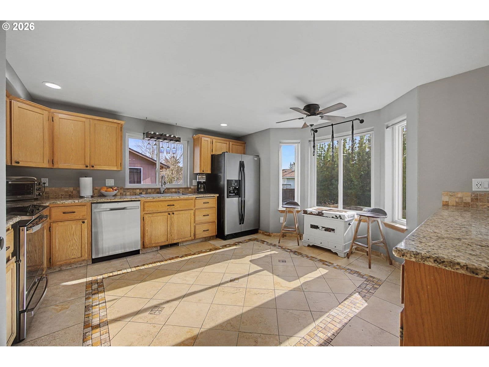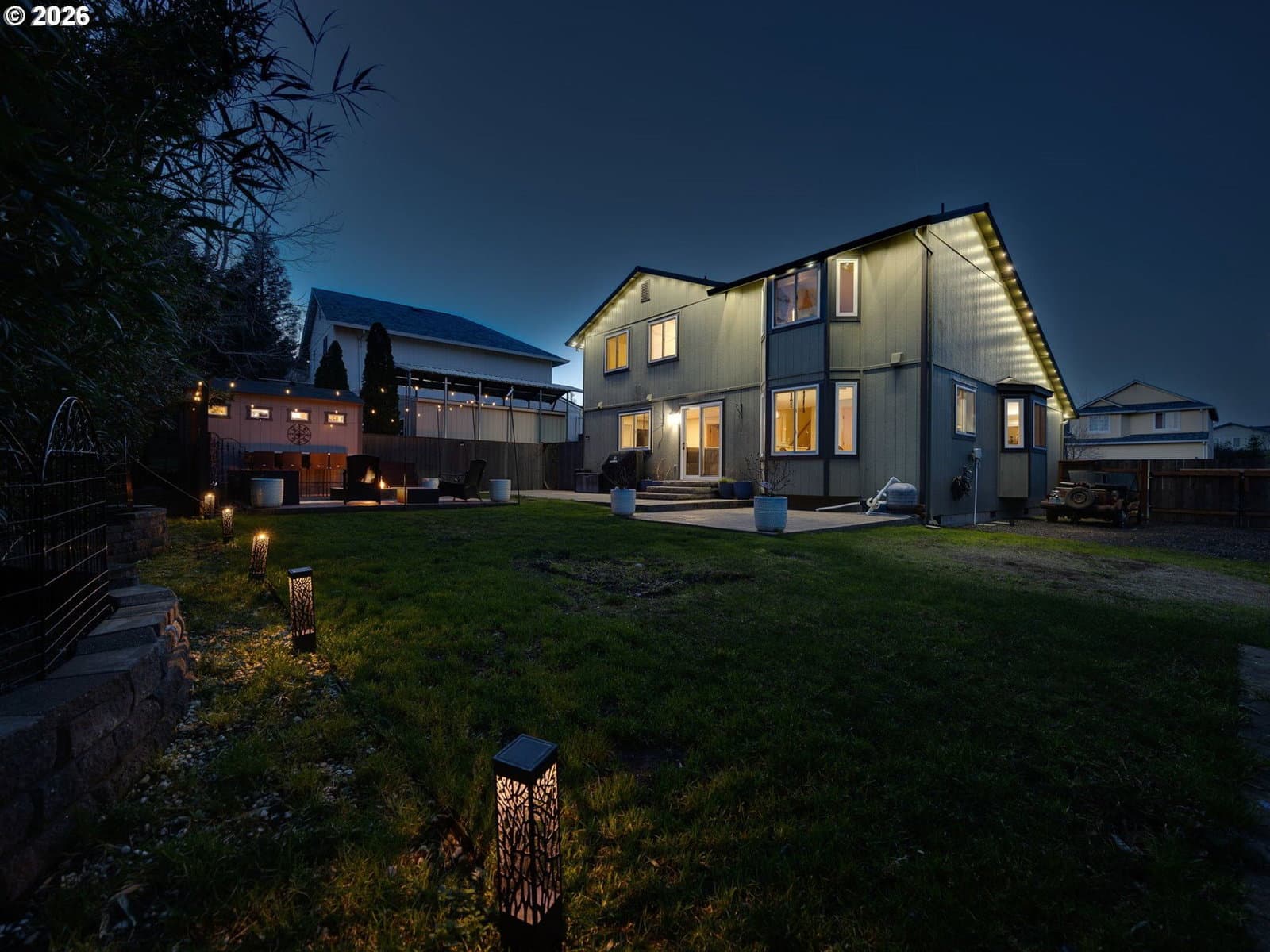 This impeccably maintained home shows nothing but pride in ownership. Recent updates include a new (2020) 50 year roof, energy-efficient windows, new heating and cooling systems, and a high-efficiency tankless water heater. The thoughtful owners have enhanced the interior with beautifully upgraded bathrooms and fresh neutral paint throughout. This home also includes new GE appliances, a new shed and a security system. The back yard is an extended living oasis that includes a year round gas fire pit and outdoor bar. Nestled in one of Troutdale's most peaceful settings, this home combines pride of ownership with contemporary upgrades and is conveniently located near the interstate as well as local dining and shopping.