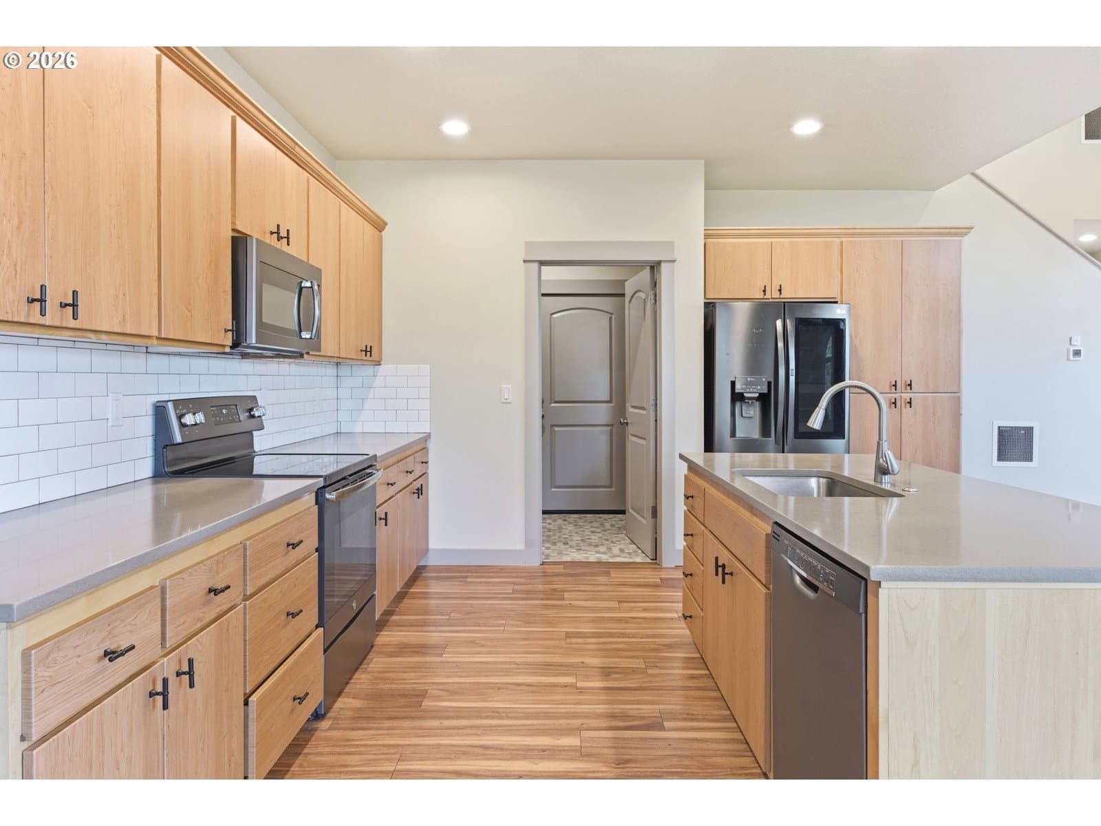 This beautiful and well-cared for home awaits you on a quiet, dead-end road near the edge of town. Step into the living room with high, vaulted ceilings, laminate flooring and large windows. The kitchen has a large island with quartz countertops, complimented by subway tile backsplash and easy close cabinets and drawers. Walk upstairs and find a spacious master bedroom with walk-in closet and shower. Upstairs you will also find two additional bedrooms, a bathroom and a loft area, perfect for a small office space. Outside is a beautiful flat yard, surrounded by terraced flower beds, ready for your imagination and gardening creations! RV or boat parking is located on the south side of the two car, finished garage. This home is in a quiet neighborhood near the edge of town, yet still close enough to life's necessities. Well-built, well-maintained, and ready for you to put down roots! Come see this amazing home today!