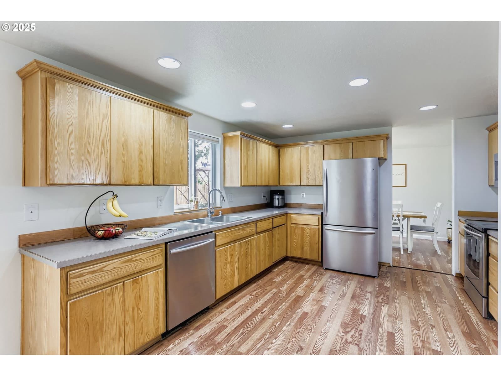 Welcome to this light-filled contemporary home in a quiet McMinnville neighborhood, an exceptional opportunity that's worth a look. Thoughtfully updated and truly move-in ready, this 3-bedroom, 2.5-bath residence offers 1,502 sq ft of inviting, functional living space. The main level flows effortlessly from a spacious living room with laminate flooring to a bright dining area framed by a picture window and a generous kitchen designed for gathering. Upstairs, the private primary suite with walk-in closet is joined by two additional bedrooms and a second full bath, creating the perfect layout for comfort and flexibility. Recent upgrades, including fresh interior and exterior paint, new double-pane windows, and a newer roof—provide peace of mind for years to come. Outside, the fully fenced yard with a large brick patio, raised garden beds, Chicken coop, and a tool shed expands your living space for entertaining, play, or gardening. With a 2-car attached garage and quick access to schools, shops, and parks, this is the rare home that checks every box.