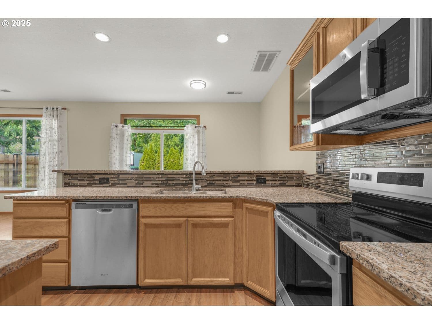 NEW ROOF, FURNACE, A/C & PAINT in 2025! NO HOA. Welcome to Hidden Meadows! This stunning 3-bedroom, 2.5-bath home offers an open-concept layout with beautiful laminate flooring throughout. The light-filled living room features a large picture window overlooking a serene, tree-lined backyard for ultimate privacy. An adjacent dining area opens to the patio through sliding glass doors, perfect for indoor-outdoor living. The modern kitchen has granite countertops, oak cabinetry, stainless steel appliances, and a spacious walk-in pantry. Convenient main-level half bath includes a laundry area. Upstairs, the primary suite impresses with a vaulted ceiling, walk-in closet, and private bath. Two additional bedrooms, both with walk-in closets, share a full guest bath with a tub/shower combo. Enjoy a low-maintenance fenced backyard complete with a patio and shade trees along the back. Located just minutes from restaurants, shopping, schools, and neighborhood parks, this home combines comfort, style, and convenience in one perfect package!