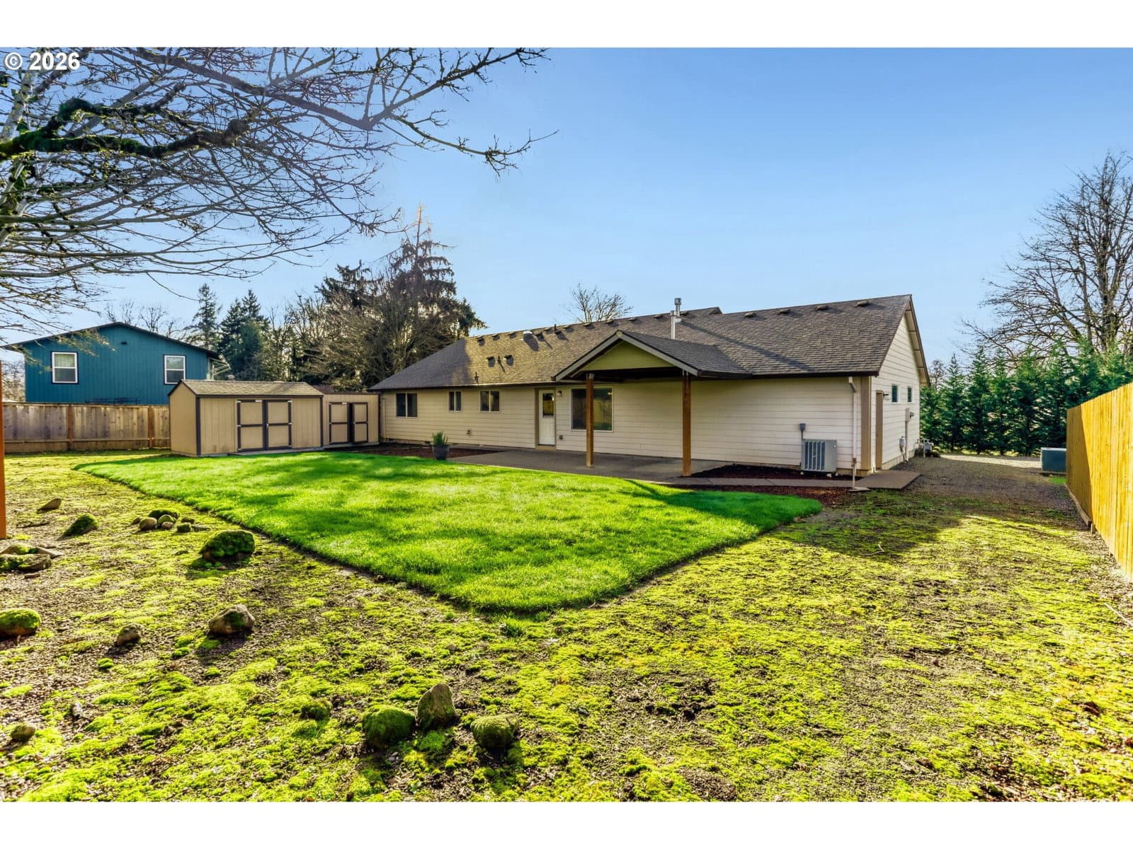 Immaculate Single-Level Home on a 1/4 Acre in Oregon City~Built in 2013, this beautifully maintained 3-bedroom, 2-bath home sits on a ¼-acre lot and offers the perfect blend of modern construction, functional space, and pride of ownership. Designed with 2×6 construction, the home features an open floor plan, vaulted ceilings, and abundant natural light throughout.~The kitchen and living areas flow seamlessly—ideal for everyday living and entertaining—while the private primary suite provides comfort and separation from the secondary bedrooms. The home has never had pets, reflecting its exceptional condition.~Outdoor living shines with a covered patio and expansive yard, plus RV parking, two storage sheds, and a spacious 22' × 29' garage—perfect for vehicles, hobbies, workshop or additional storage.Additional highlights include: Heat Pump, central A/C, 1,704 sq ft of living space, Quiet rural feel with convenient access to Oregon City amenities, Ample space for toys, tools, and future possibilities. This beautifully landscaped, move-in-ready property offers space, quality construction, and versatility.
