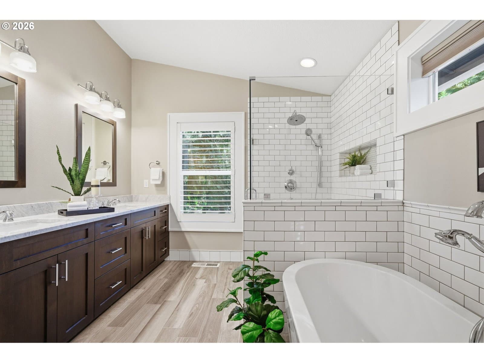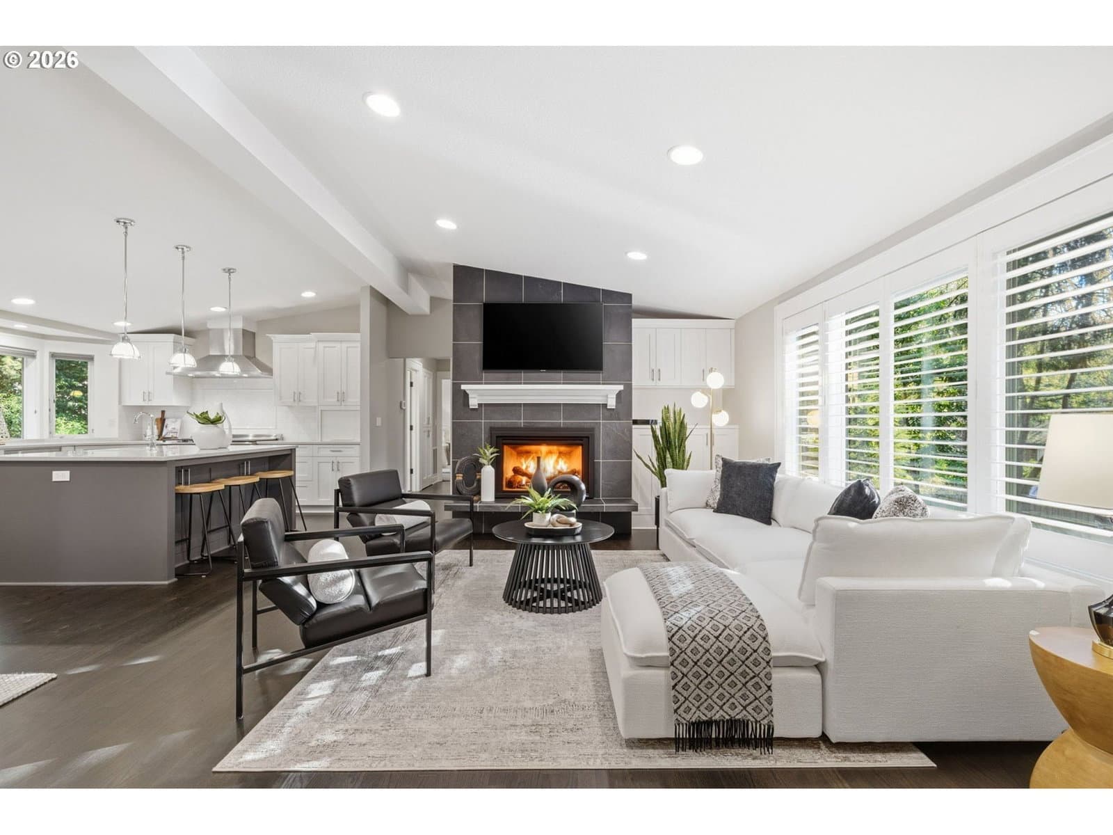 Enjoy indoor-outdoor living throughout every season in this completely remodeled lake house. Covered outdoor living features vaulted ceilings, skylights and gas fireplace. Dine alfresco under your oversized louvered patio cover with rain-sensing technology. Just steps away from two private boat easements on Oswego Lake. Four fireplaces, spa-like primary suite, vaulted ceilings throughout the main floor, additional guest suite with dedicated bathroom, oversized bedrooms, four full bathrooms and resort-like backyard with in-ground pool create an exceptional lifestyle. Recent HVAC & roof-gutter replacement, low-maintenance composite decking and hardwired natural gas generator with automatic transfer switch for power outages. Covered RV parking for your boat or adventure van. Conveniently located on a quiet low traffic street with easy 8 minute stroll to the Swim Park on Lakeview Blvd, Lake Oswego Junior High School, restaurants and shopping in the heart of Lake Grove.