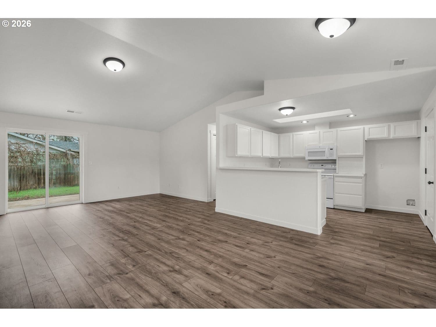 Welcome home to this beautifully renovated, move-in ready 3-bedroom, 2-bath ranch on a spacious corner lot! Inside, you’ll love the gorgeous flooring throughout, the airy vaulted ceilings, and the open floorplan designed for effortless entertaining. Natural light pours in, especially in the dining area with sliders leading out to the patio that's perfect for indoor/outdoor living. The sunny kitchen features a skylight and plenty of prep space for cooking and gathering. The private primary suite is thoughtfully separated for added privacy and includes a walk-in closet and its own bath. Two additional bedrooms, a full guest bath, and laundry round out the home. Enjoy the partially fenced backyard with patio and room for gardening, play, or pets. Home has a new roof for added peace of mind. Conveniently located close to shopping, dining, schools, and neighborhood parks!