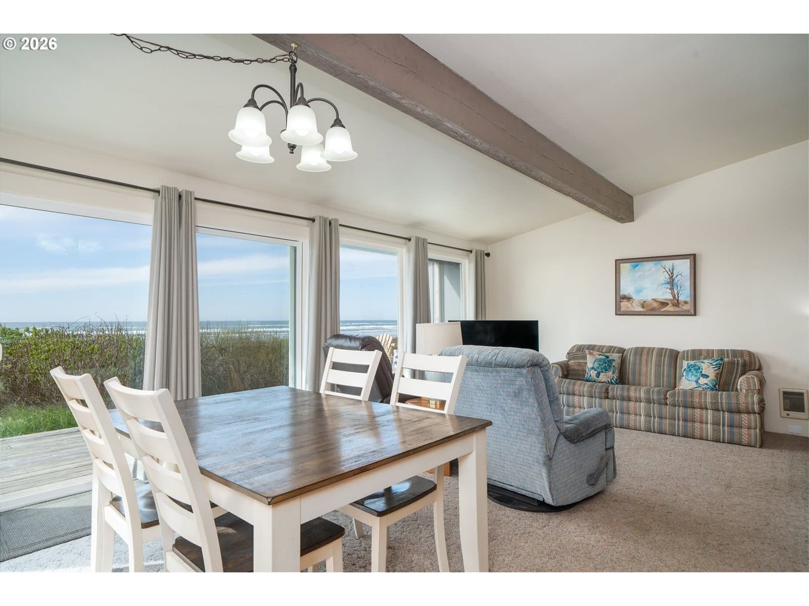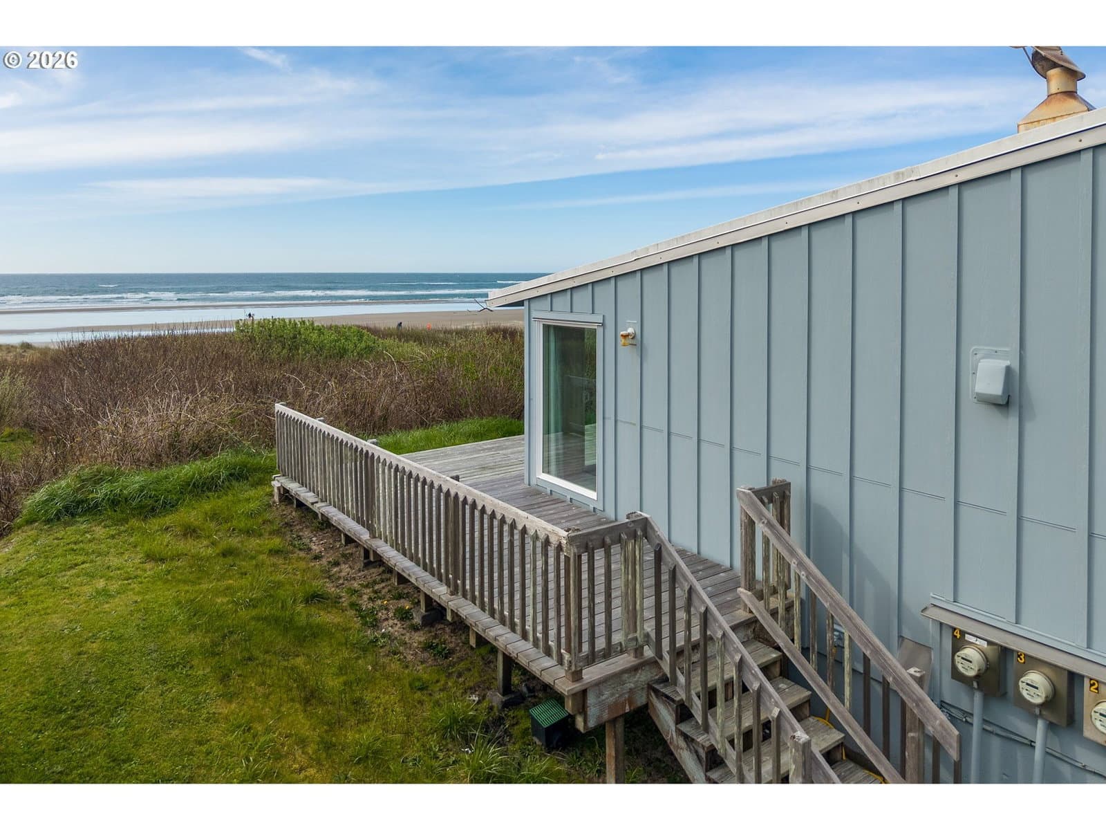 Enjoy breathtaking sunsets and seasonal whale watching from this stunning oceanfront condominium nestled in the highly sought-after Sandpiper neighborhood. Cherished by its original family owners, this beautifully maintained end unit offers 3 bedrooms and 2 full baths across 1,264 square feet. Picture sitting outside on the expansive wrap-around deck, perfectly positioned to capture unobstructed ocean views. Inside, a cozy wood-burning fireplace creates the perfect gathering space after a day on the beach, complemented by a spacious layout. Recent upgrades include new siding and new windows, enhancing both comfort and efficiency. A private trail provides easy access down to the beach, while outside storage adds convenience for all your coastal gear. This is a rare opportunity to own a true oceanfront retreat with, warmth and timeless appeal.