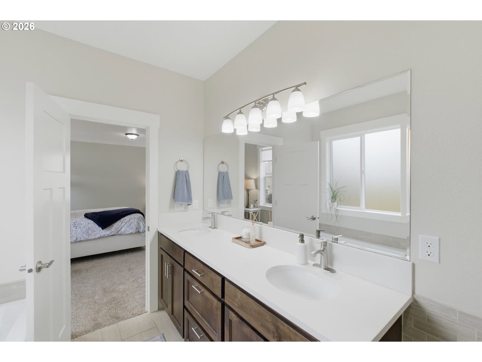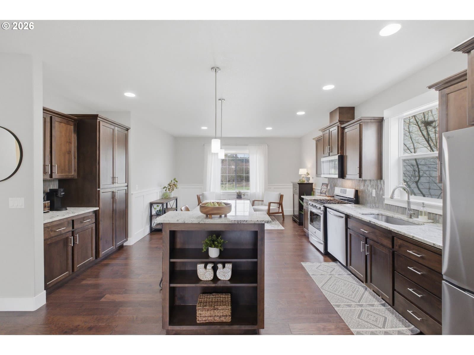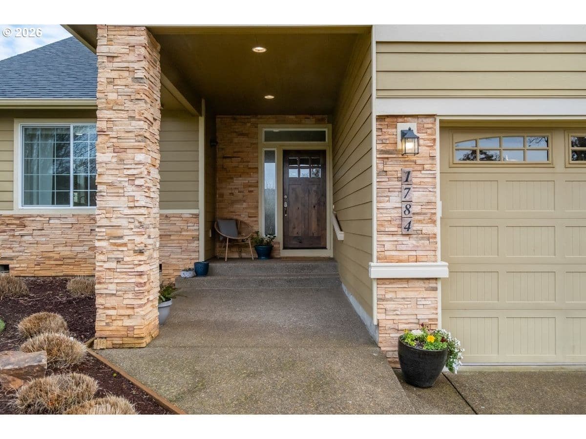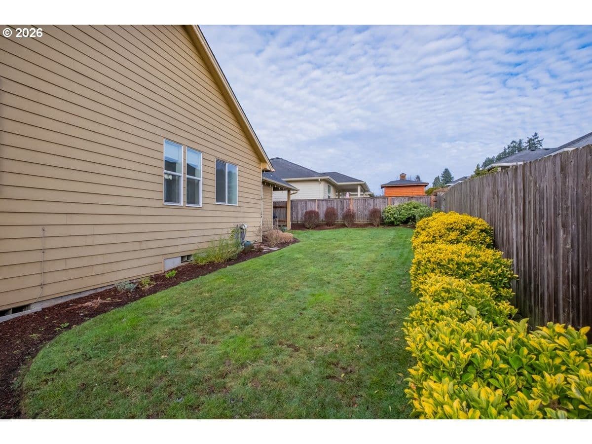 Single-level living with an upstairs bonus room in a highly sought-after neighborhood. This home offers 10-foot ceilings, large windows, and a bright living room with a gas fireplace. The dining area features engineered hardwood floors and a sliding door to the backyard, making it functional for everyday living.The kitchen includes granite countertops, wood cabinetry, stainless steel appliances, a gas range, island seating, pantry, coffee bar, and breakfast nook. A versatile playroom or library with built-in cabinets provides flexible space for work or hobbies.The primary suite features crown molding, a walk-in closet, and an ensuite bath with dual vanities, soaking tub and a walk-in shower. The upstairs bonus room could function as a 4th bedroom or office and includes access to a private covered deck. A fully fenced landscaped backyard, three-car garage with large driveway makes this the perfect move in ready home.
