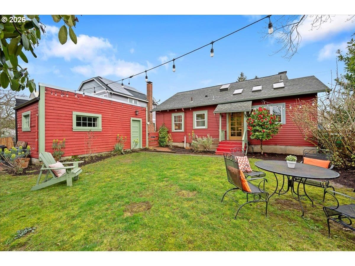 The charm of this 1922 Bungalow begins at the curb with a big covered front porch complete with built-in benches. The front door opens to a spacious living room featuring oak floors, a woodburning fireplace and a built-in bookcase. On the other side of the room, gleaming fir floors frame a formal dining room with a large picture window. At the heart of the home is a spacious kitchen. Vaulted ceiling with skylights, honed granite countertops, and ample cabinets set the stage for the centerpiece - a wonderful stainless-steel island. The primary bedroom and a fully updated bathroom are on the main floor. Upstairs are 2 bedrooms with fir floors. A large basement with a laundry area offers expansion opportunities - perhaps a family room, office, workshop, or 2nd bathroom. Outside, a large, private, fully-fenced, west-facing backyard invites entertaining, relaxing, and gardening. A detached 1-Car garage rounds out this move-in ready property. All of this just blocks from coveted Mt Tabor Park as well as the popular shops, culinary hotspots, and theaters on Hawthorne and Division. It is also just a block from the Lincoln St bike path. A truly incredible location! [Home Energy Score = 4. HES Report at https://rpt.greenbuildingregistry.com/hes/OR10054000]