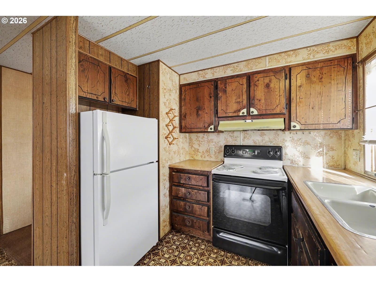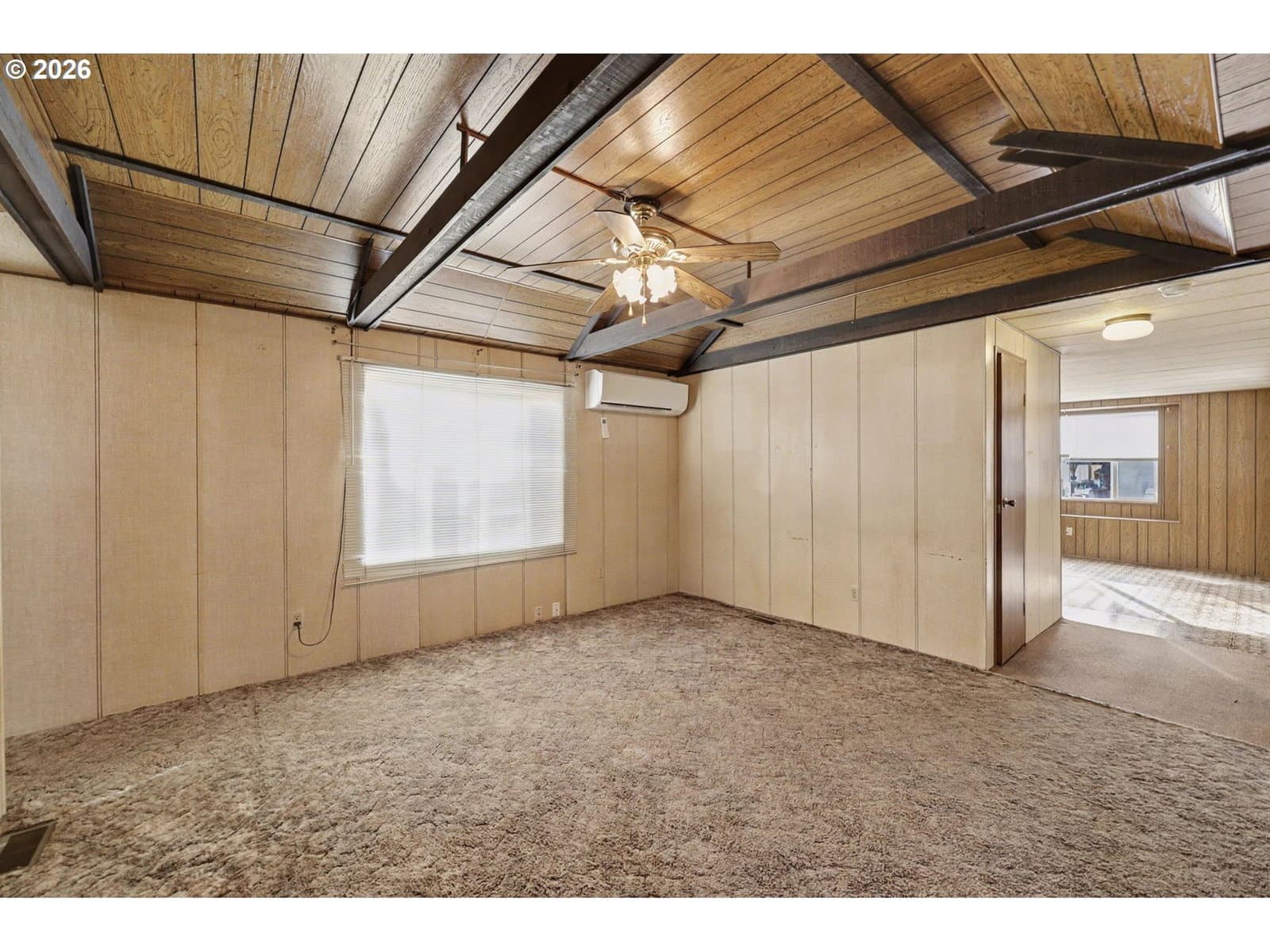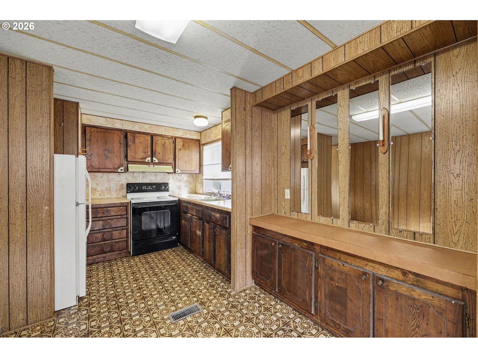 Charming two bedroom, one bath manufactured home located in a desirable 55+ community. Home features a large dining room with ample storage, along with raised open beam ceiling in the living room. The home is situated adjacent to a park-like green space, offering a peaceful and scenic setting. The community is quiet, well-maintained, and welcoming, with a friendly atmosphere and exceptionally low space rent. This home sold "as is", Seller to do no repairs.