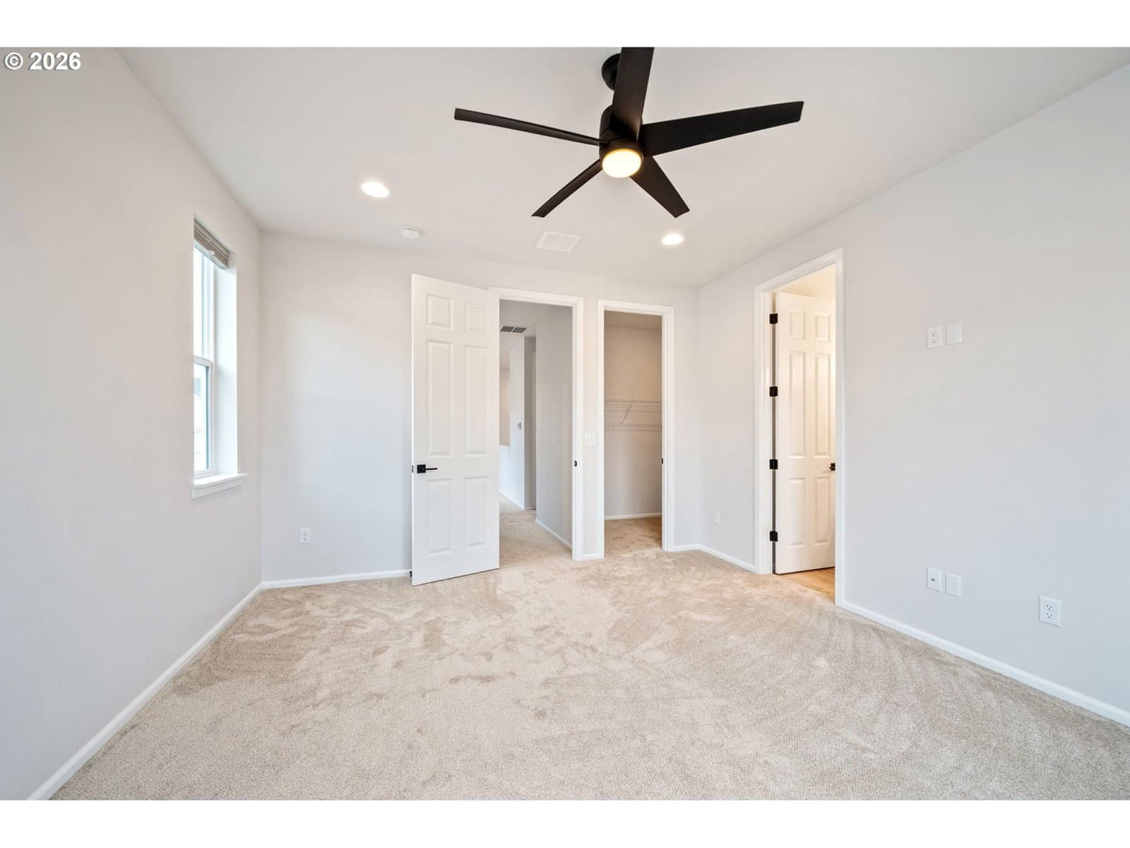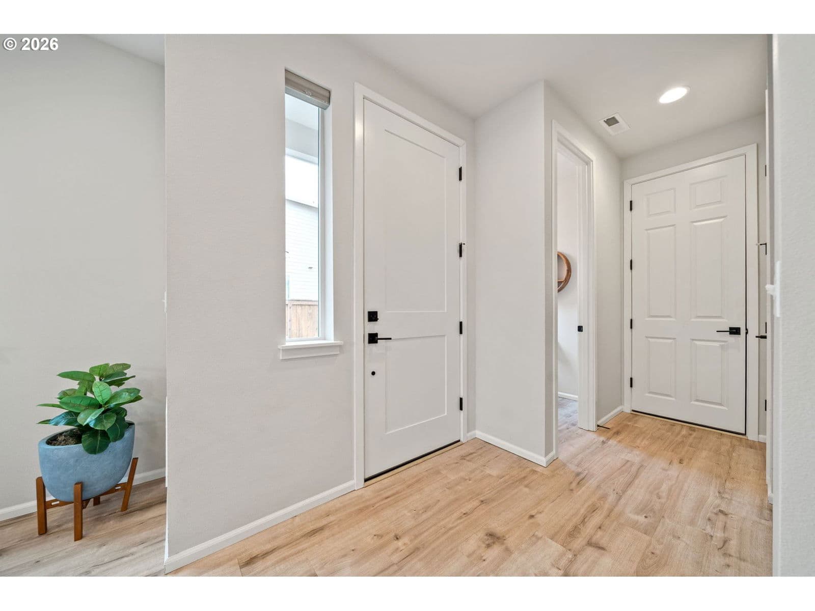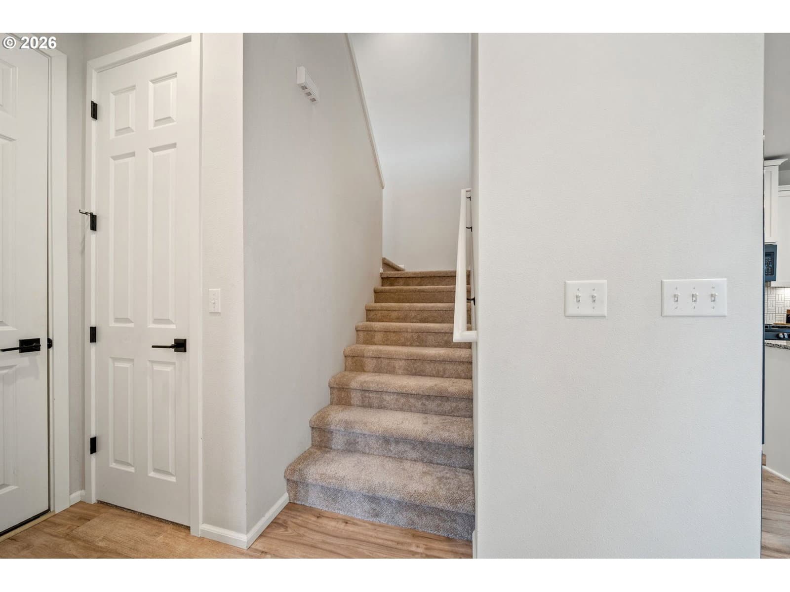 Located in Ridgefield’s desirable Kemper Grove neighborhood, this upgraded townhome offers a rare combination of privacy, modern finishes, and low-maintenance living with HOA dues of just $78 per month including front landscaping. Backing to greenspace with sweeping territorial views and set on a larger lot, the property features a fenced backyard with a covered patio plumbed for natural gas, three storage sheds, and direct access to peaceful outdoor surroundings just blocks from neighborhood parks, walking trails, and a future dog park. The modern elevation welcomes you into an open-concept floor plan featuring a spacious great room anchored by a tile-surround gas fireplace, creating a warm focal point for everyday living and entertaining. Upgraded can lighting enhances the light and bright feel throughout, complemented by durable LVP flooring on the main level, new carpet installed in 2026 upstairs, and fresh interior paint for a clean, move-in-ready finish. The kitchen showcases white cabinetry, granite countertops, and an upgraded stainless steel appliance package including refrigerator, built-in microwave, and dishwasher, along with a pantry and eat-in island designed for functionality and casual dining. A sliding glass door connects the dining area to the backyard, offering seamless indoor-outdoor flow. All bedrooms are wired for ceiling fans and all closets feature electrical outlets for added flexibility. Additional highlights: 8' Doors on main, extra insulation between homes for enhanced comfort and sound reduction, whole-house blinds, a high-efficiency tankless water heater, efficient furnace and air conditioning, and a two-car garage. Well-maintained and ideally located with convenient access to shopping, dining, services, and major commuter routes, this home delivers comfort, efficiency, and scenic living in one of Ridgefield’s most sought-after communities.