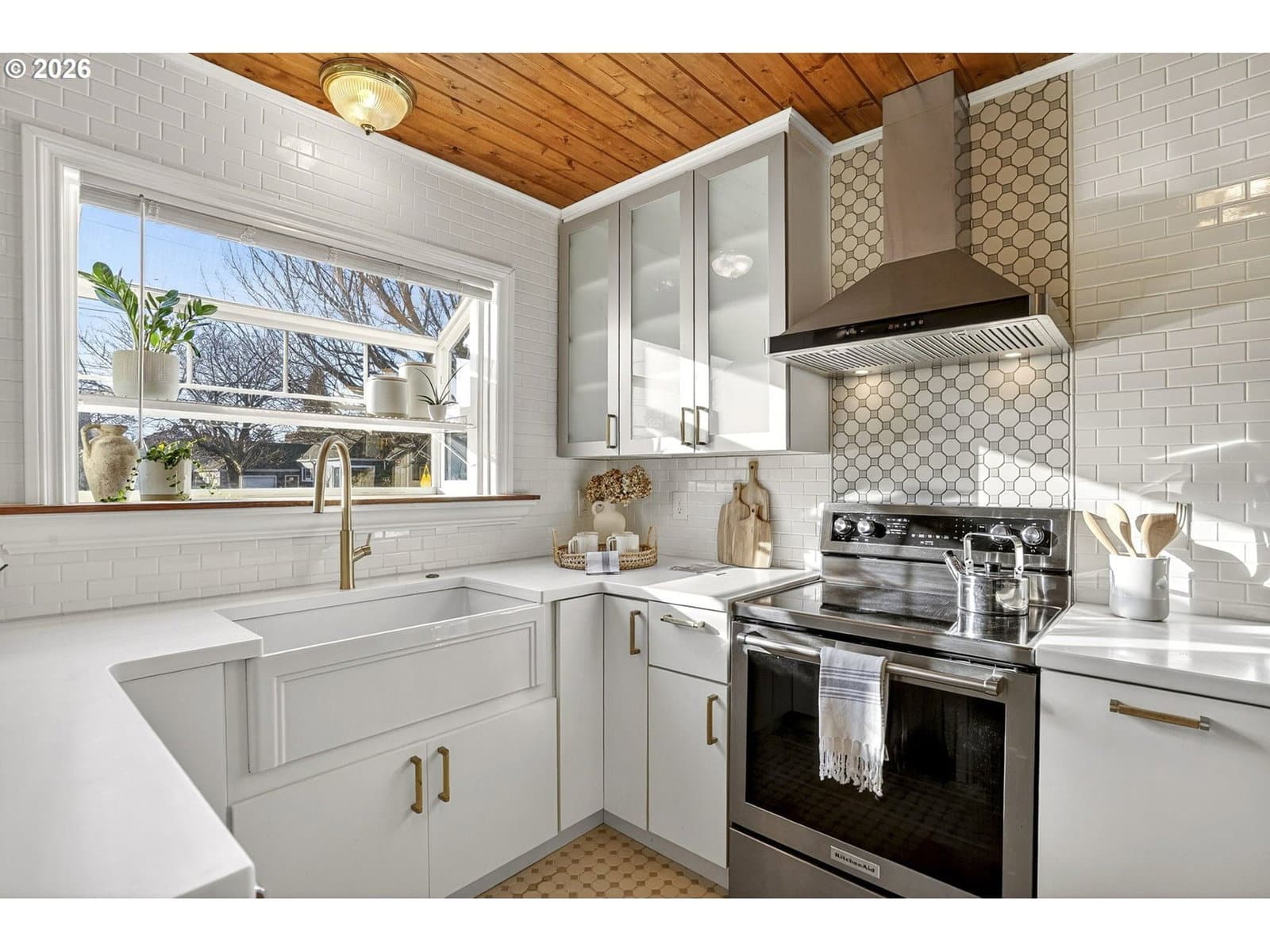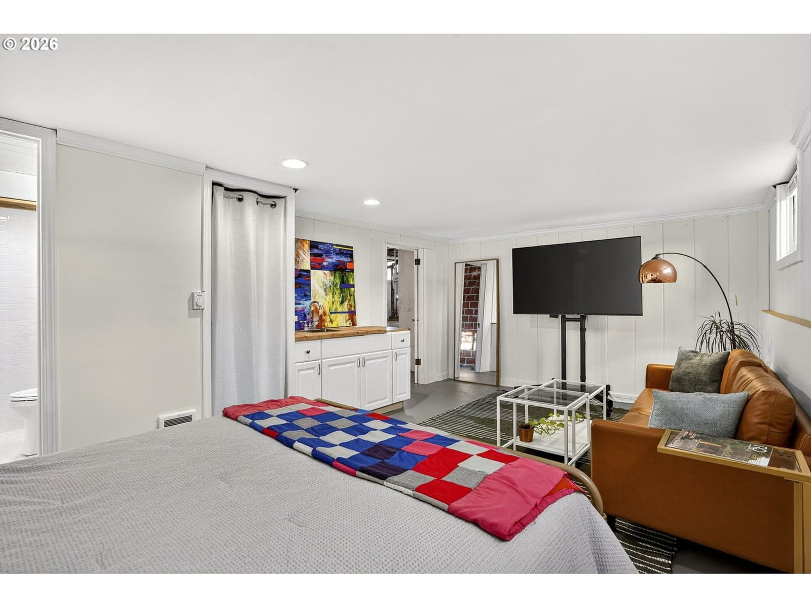 Open House Sunday 1/18 1-3pm. The best of North Portland in this hip, sunny, south-facing ranch that has been fully updated while preserving the charm of its original 1940s design. White walls and original wood floors reflect natural light throughout the home. Beautiful high end updates include floor to ceiling tile and wood ceilings in the kitchen and bathrooms that create a modern clean aesthetic, while added insulation and a ductless heat pump provide efficient, year-round comfort.A dreamy work-from-home office on the upper and a basement that features a separate entrance is perfect for a guest suite or as an ADU or rental opportunity for extra income.Year round outdoor use with a cozy covered patio, and a backyard ready for home gardening. The inviting front yard features shrubs and Japanese maples with the home set back from the street. An attached garage and off street parking add convenience.Located in one of North Portland’s most convenient neighborhoods, just steps from shops, grocery stores, and popular restaurants. All appliances are included, including the washer and dryer.