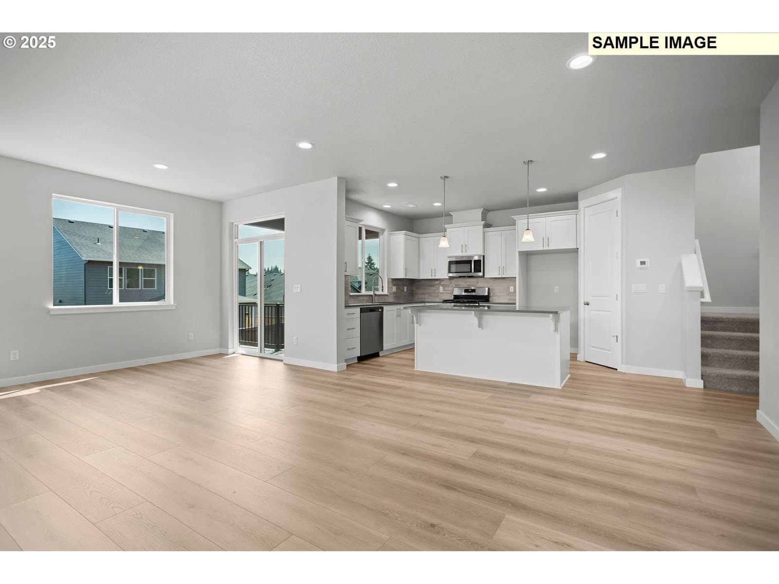 Move-in ready new construction in Faraday Hills, Estacada. This 2,038 sq. ft. Craftsman-style home features 4 bedrooms, 2.5 bathrooms, and a 2-car garage. The open great room includes an electric fireplace, 9-foot ceilings, and laminate flooring, flowing into the kitchen with quartz countertops, a large island, and stainless steel appliances.The primary suite offers a walk-in closet and double sinks. Additional features include a fully fenced lot, front yard irrigation, and an energy-efficient heat pump with air conditioning.Interior Photos are sample images; finishes, features, and colors may vary. Sales office located at 3675 NE Claire Rd. Open daily from 10:00 AM to 5:00 PM.