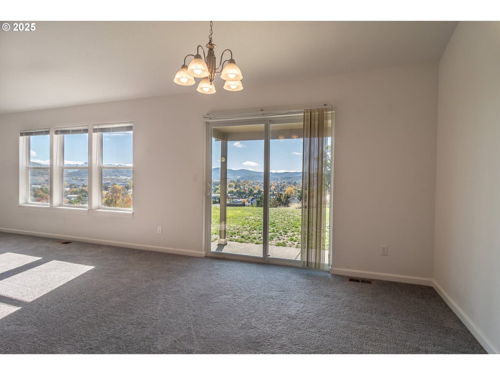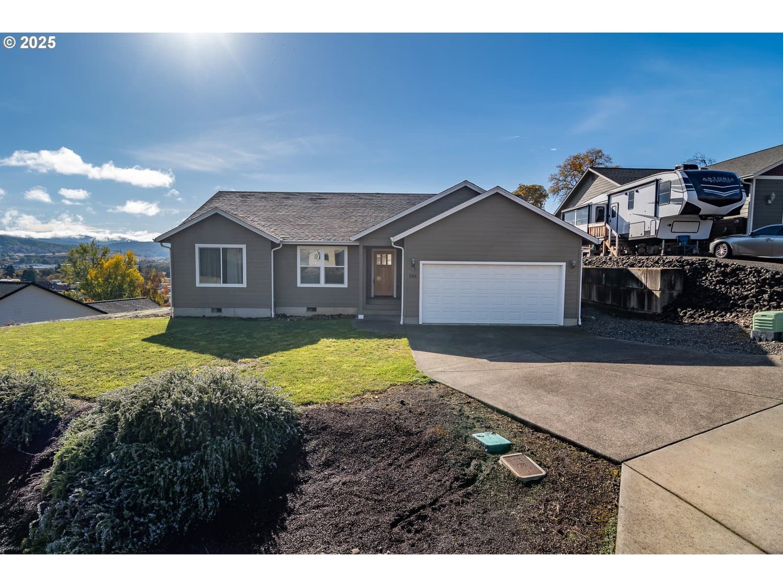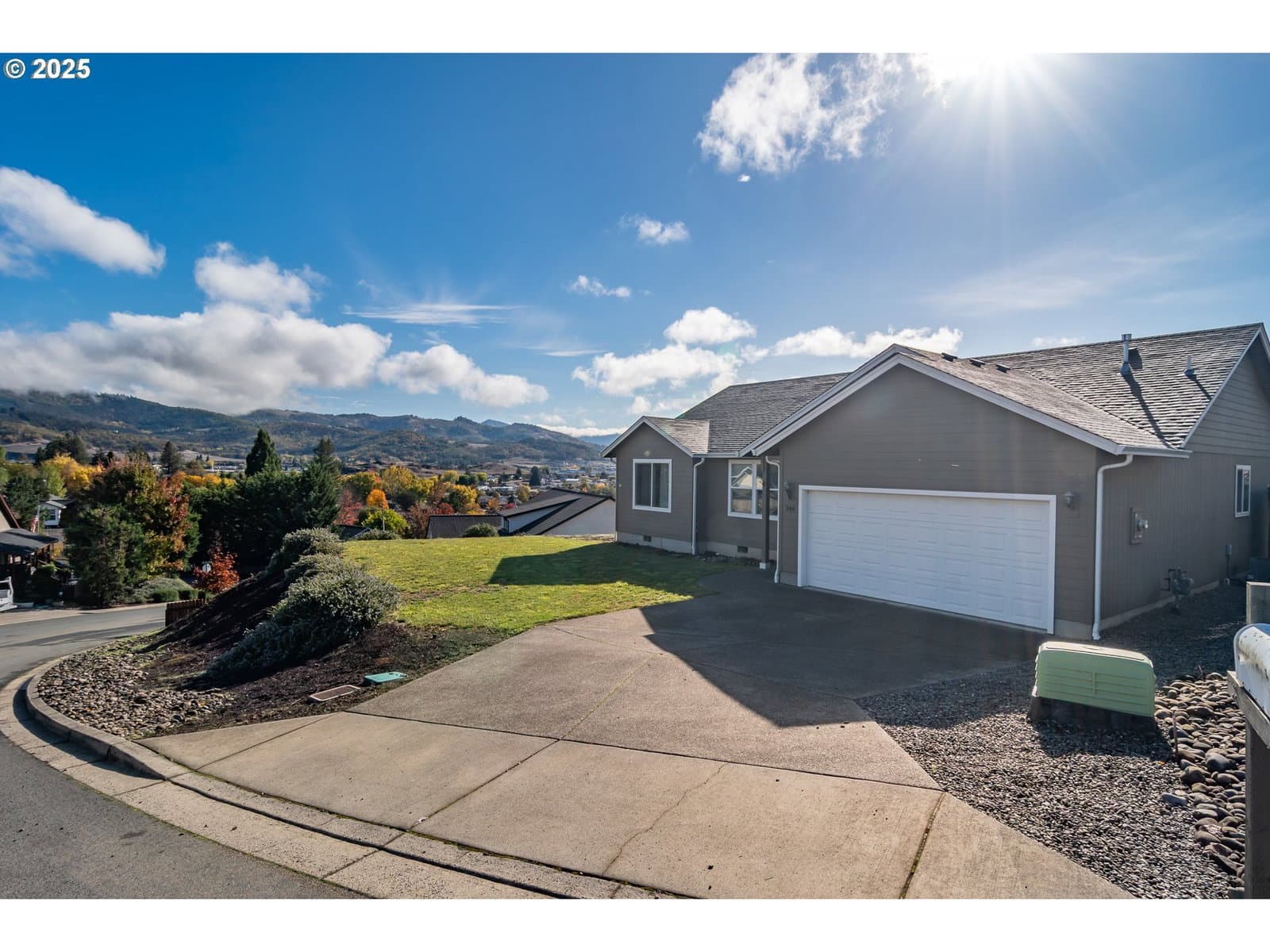 Discover this inviting 3-bedroom, 2-bath single-level Roseburg home offering serene valley views from the spacious backyard. The well-appointed kitchen showcases rich wood cabinetry, warm earth-toned countertops, and a versatile eat-bar, ideal for casual dining or gatherings. The soaring vaulted living room is soaked in natural light and flows effortlessly to a covered patio, perfect for entertaining or enjoying serene sunsets. The primary bedroom features a generous walk-in closet and private bath, while additional bedrooms are bright and comfortable. Enjoy the convenience of both gas and electric utilities, enhancing comfort and efficiency. Situated in a friendly, established neighborhood, this home blends style, functionality, and scenic charm—a perfect haven for everyday living and entertaining. Perfectly situated near the happy valley area in the Green District and just a short drive to I-5.
