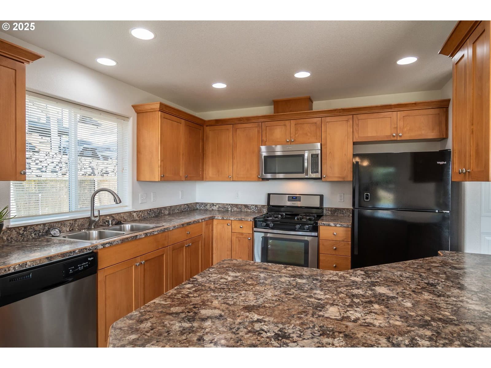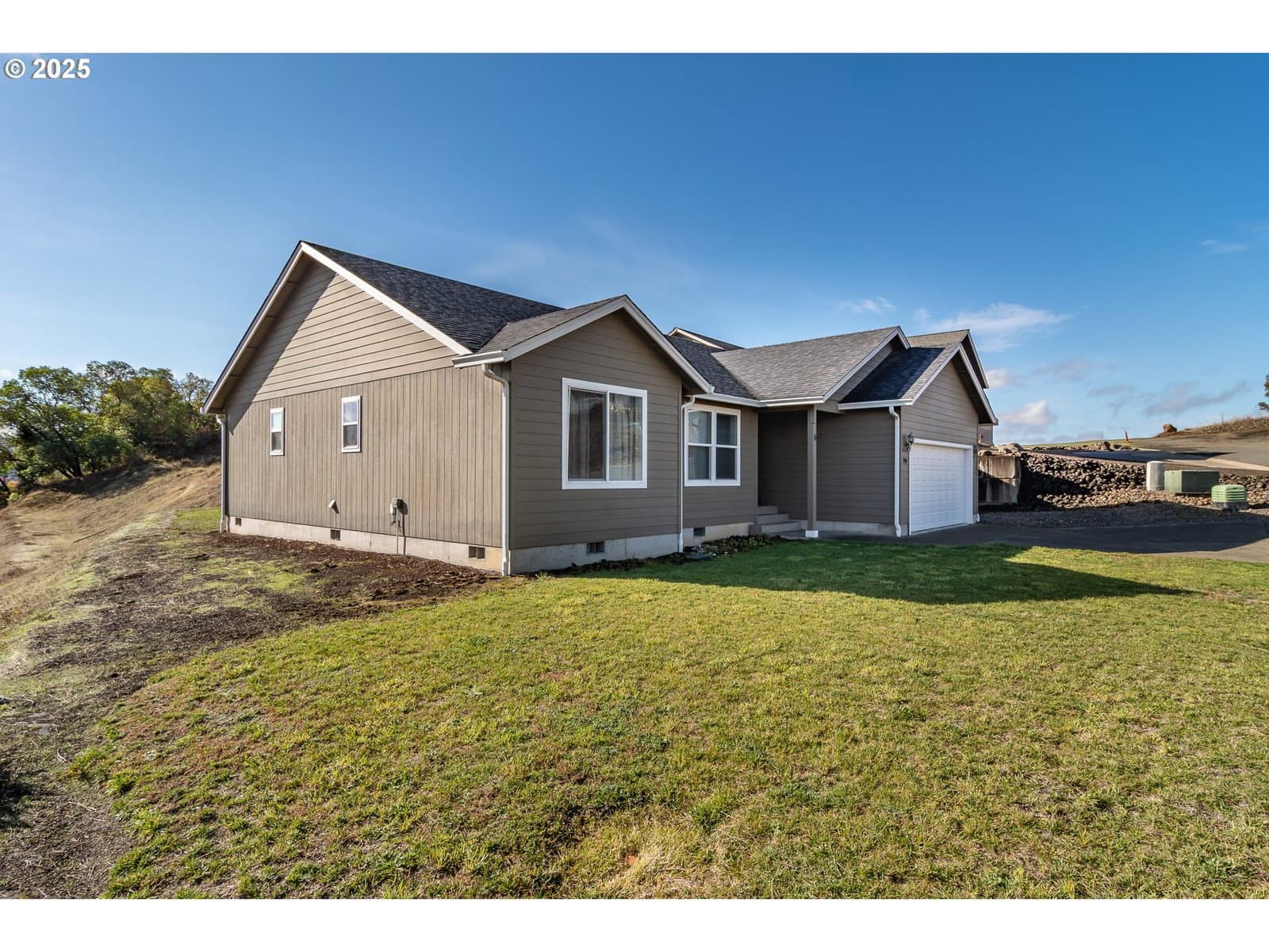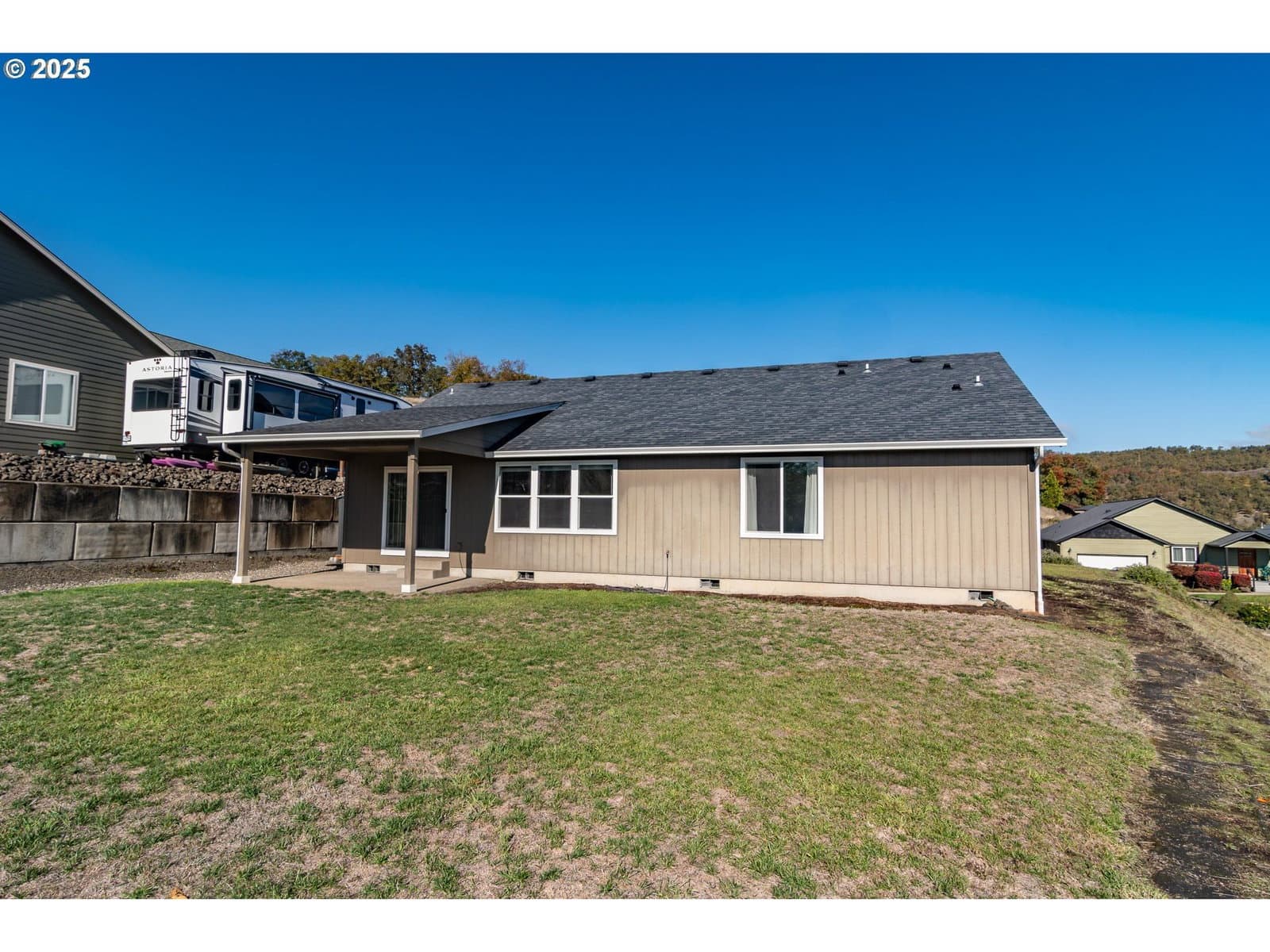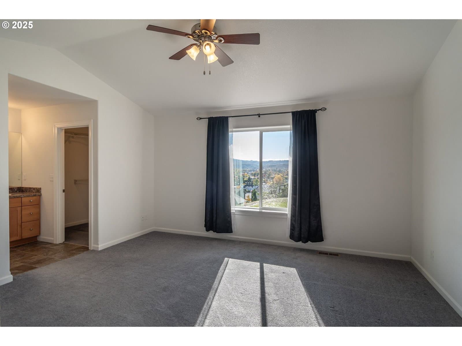 Discover this inviting 3-bedroom, 2-bath single-level Roseburg home offering serene valley views from the spacious backyard. The well-appointed kitchen showcases rich wood cabinetry, warm earth-toned countertops, and a versatile eat-bar, ideal for casual dining or gatherings. The soaring vaulted living room is soaked in natural light and flows effortlessly to a covered patio, perfect for entertaining or enjoying serene sunsets. The primary bedroom features a generous walk-in closet and private bath, while additional bedrooms are bright and comfortable. Enjoy the convenience of both gas and electric utilities, enhancing comfort and efficiency. Situated in a friendly, established neighborhood, this home blends style, functionality, and scenic charm—a perfect haven for everyday living and entertaining. Perfectly situated near the happy valley area in the Green District and just a short drive to I-5.